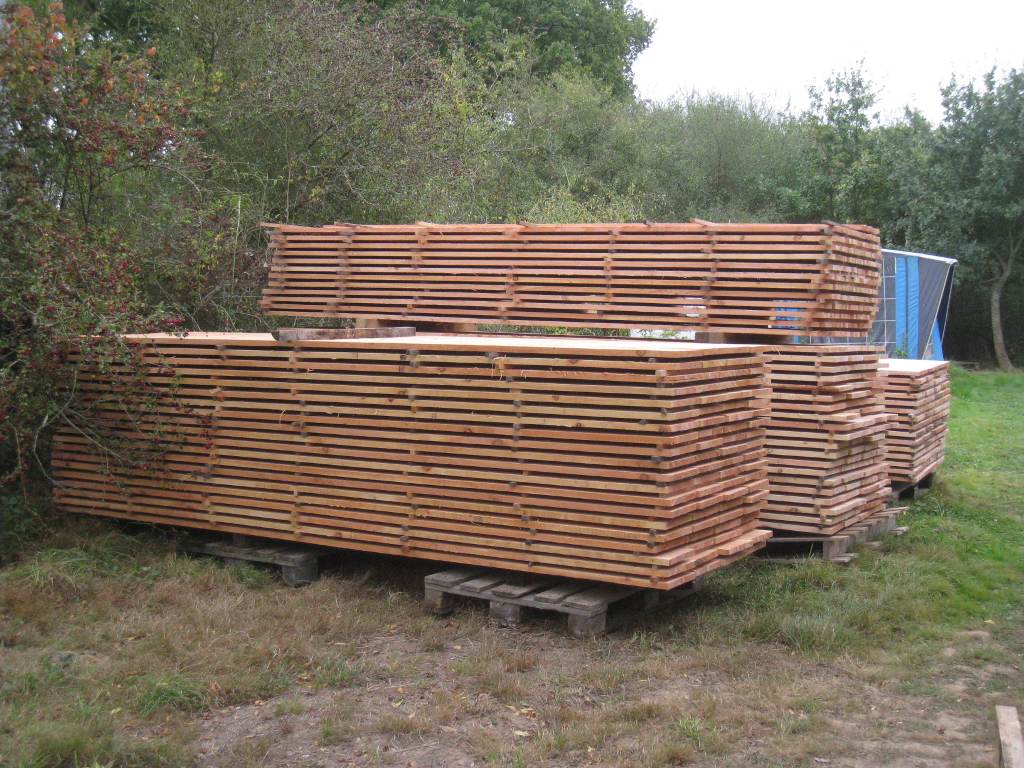 2011/10/10 : Bardage (1) - livraisonMis à jour : 23 février 2016 | Imprimer | Affichages : 2345Bien que je ne sois pas prêt à le poser, je reçois la première partie du bardage, c'est à dire les planches brutes destinées à la façade Sud : > > Lire la suite...