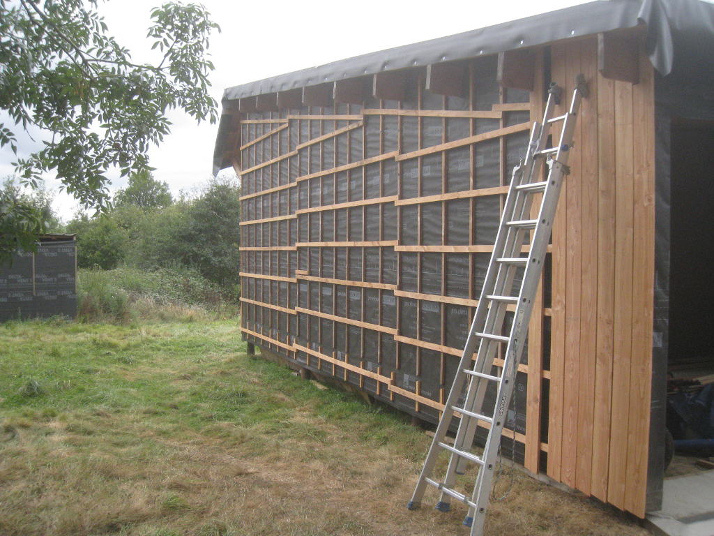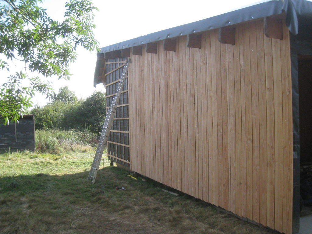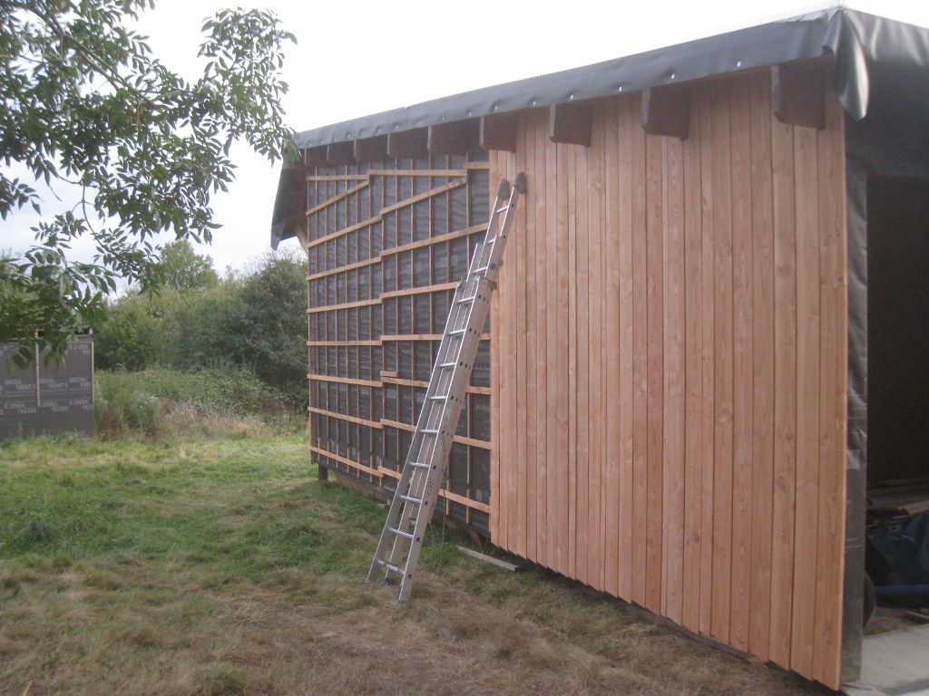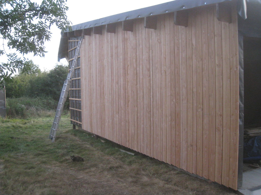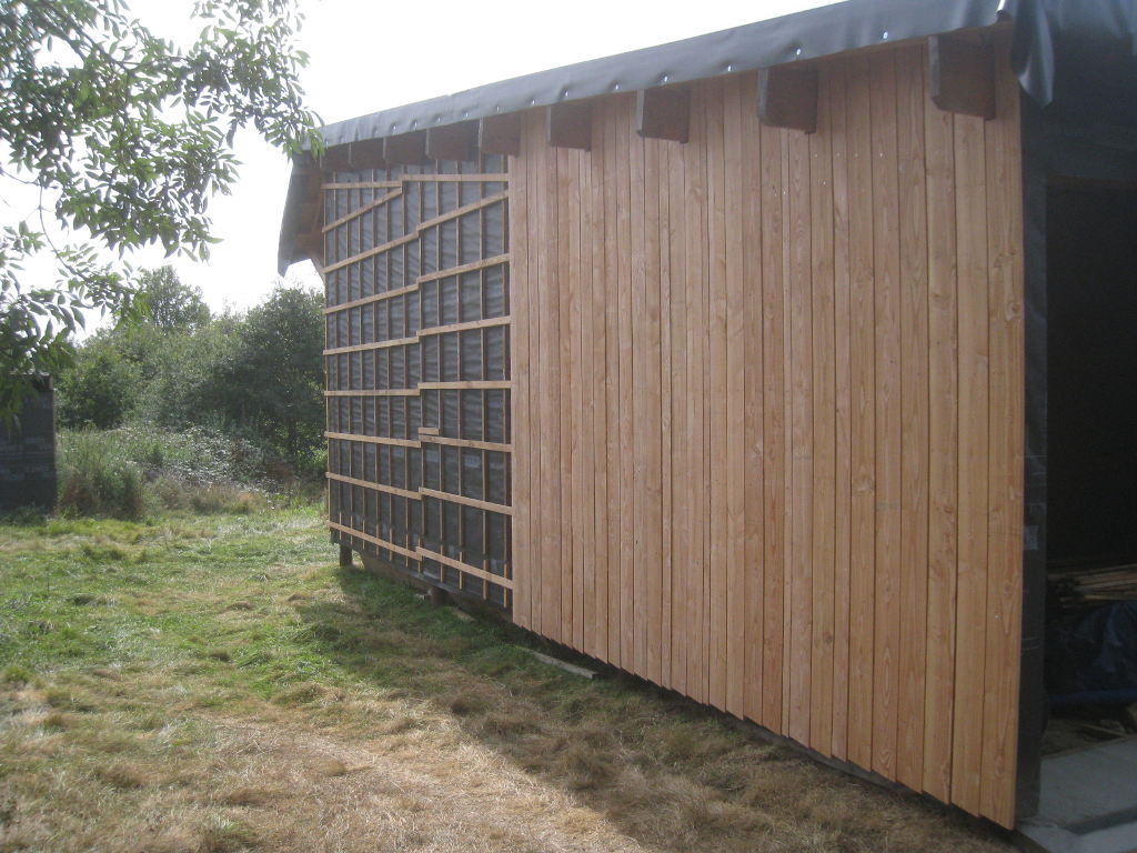 2012/09/22 : Bardage (5) - EstMis à jour : 23 février 2016 | Imprimer | Affichages : 2425Bardage du côté Est de la maison : L'évolution du travail : Un autre point de vue : Ici aussi, il reste à poser les couvre-joints ... Précédent Suivant