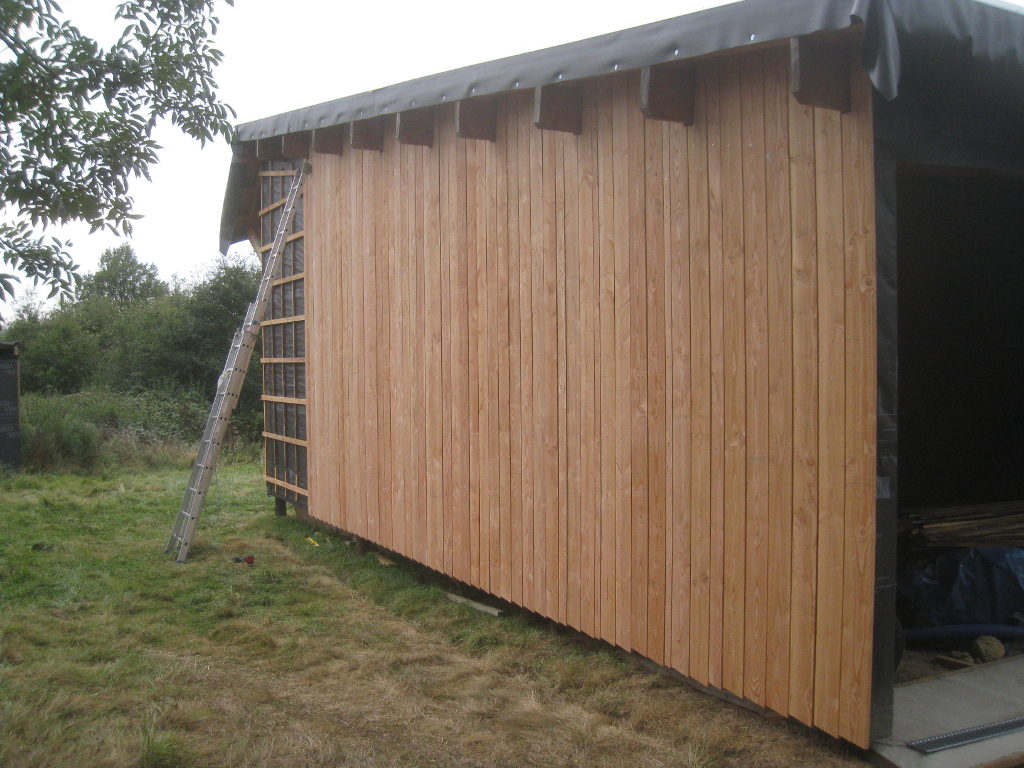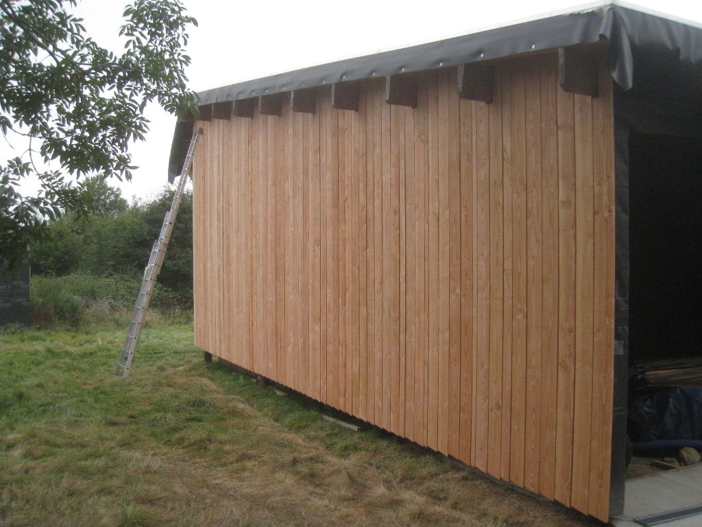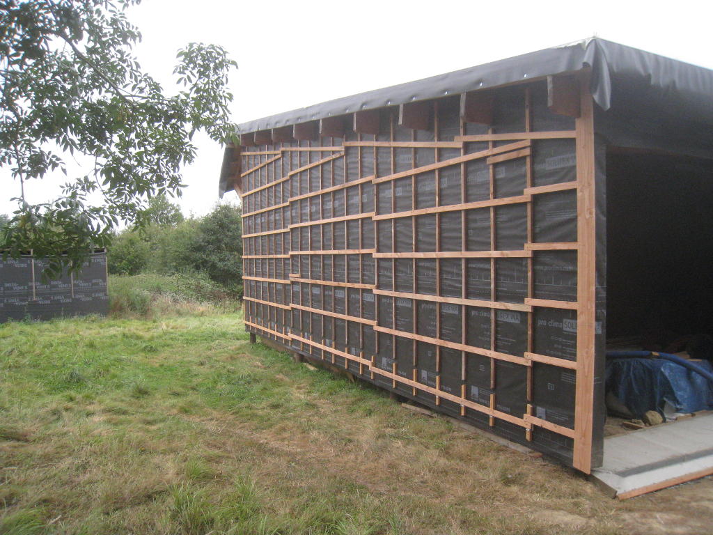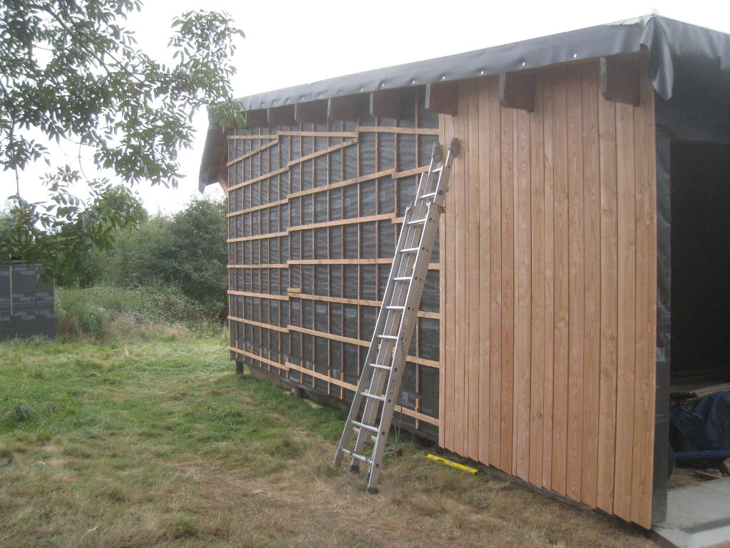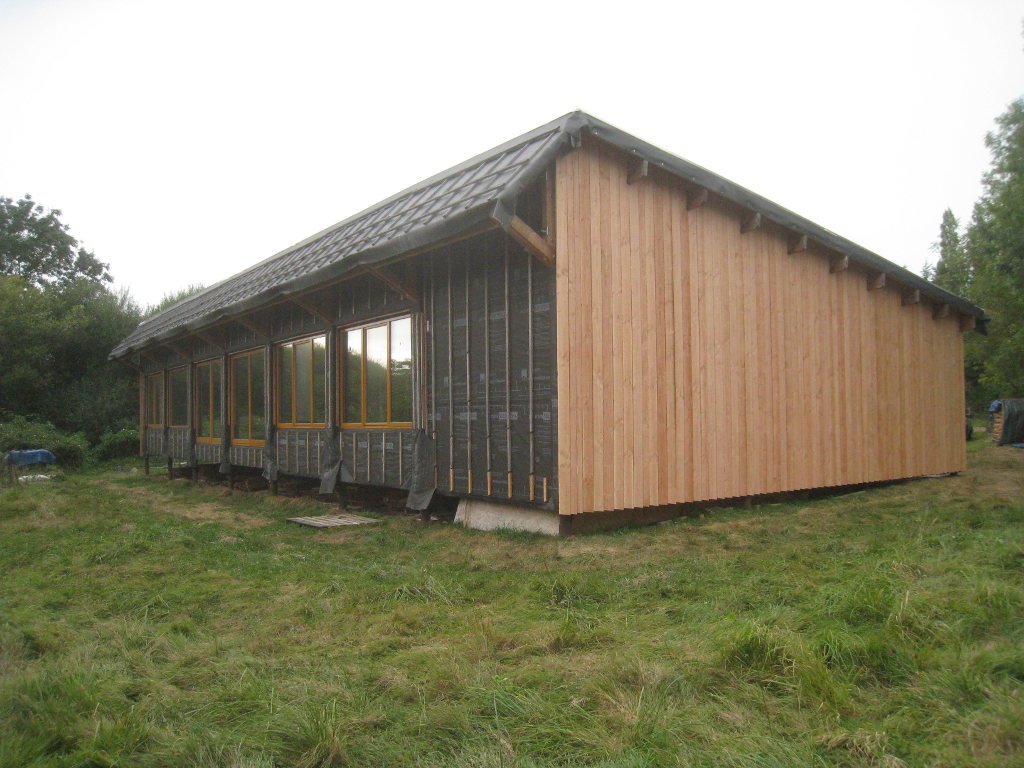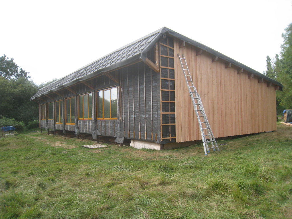 2012/09/22 : Bardage (5) - EstMis à jour : 23 février 2016 | Imprimer | Affichages : 2425Bardage du côté Est de la maison : L'évolution du travail : Un autre point de vue : Ici aussi, il reste à poser les couvre-joints ... Précédent Suivant