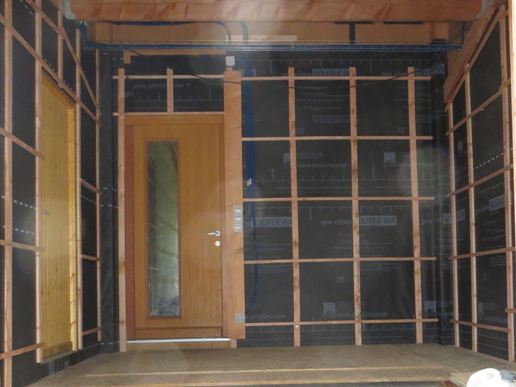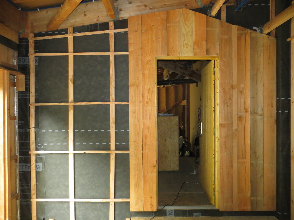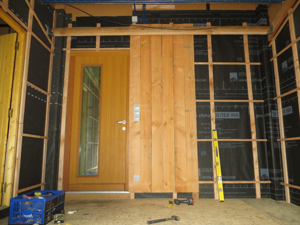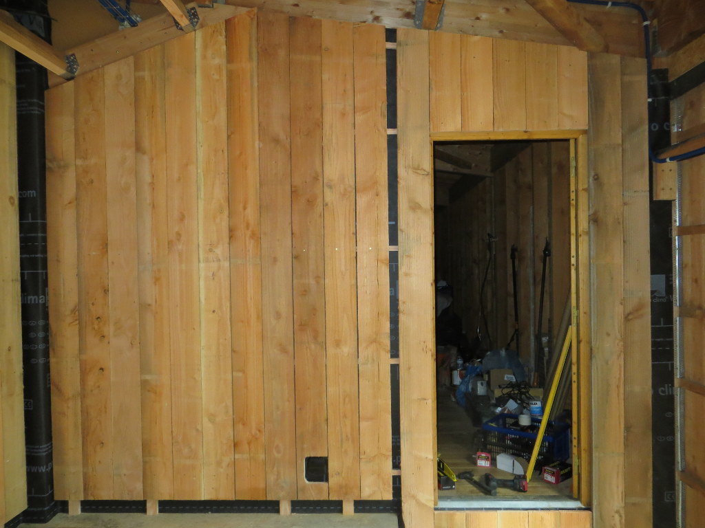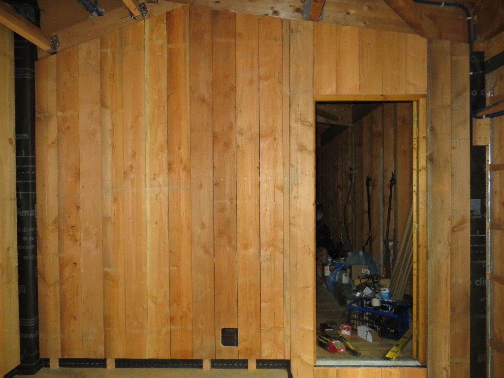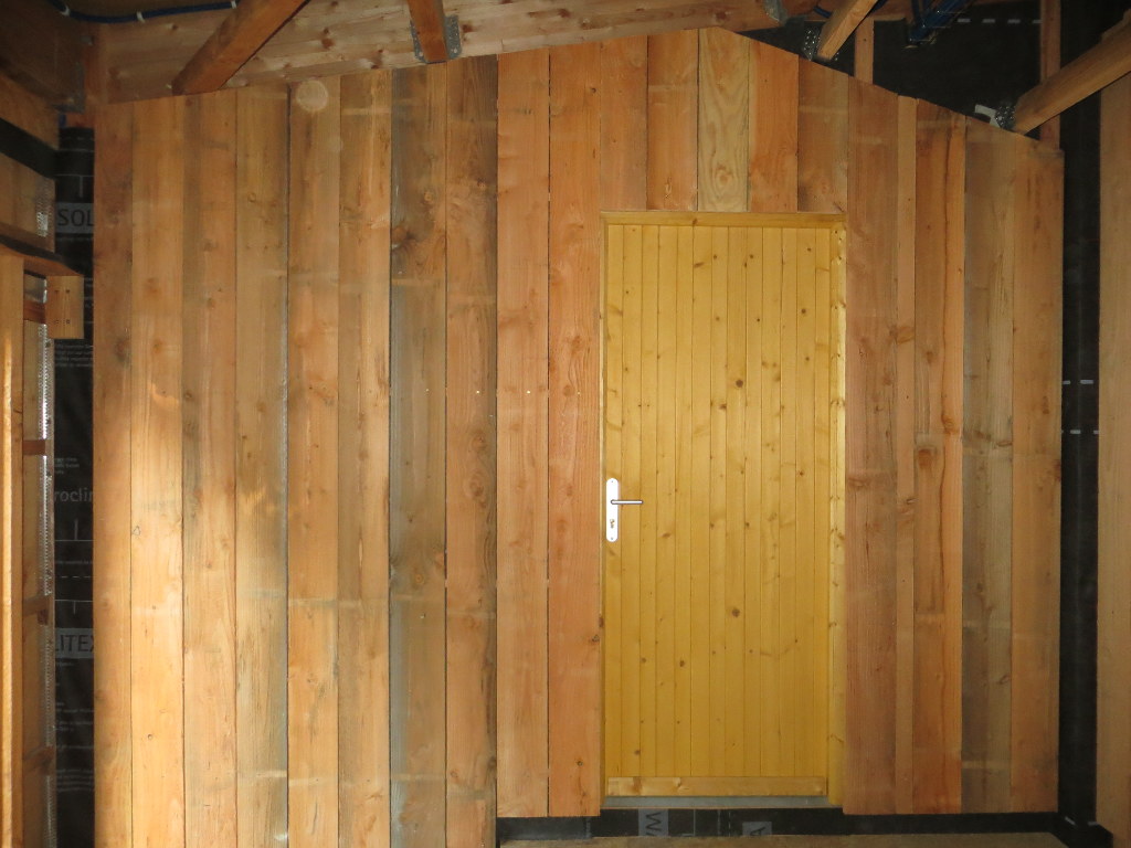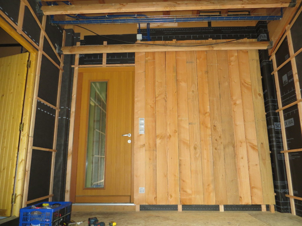2015/07/22 : Bardage (16) - EntréeMis à jour : 4 novembre 2015 | Imprimer | Affichages : 1914 Pose du bardage dans le porche d'entrée ... Vue d'ensemble : Avancée du travail (côté Sud / maison) : Avancée du travail (côté Est / buanderie) : Avancée du travail (côté Ouest / atelier) : Il ne reste que deux angles à traiter ... Précédent Suivant