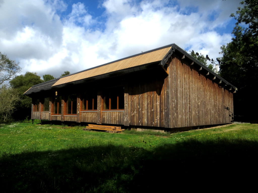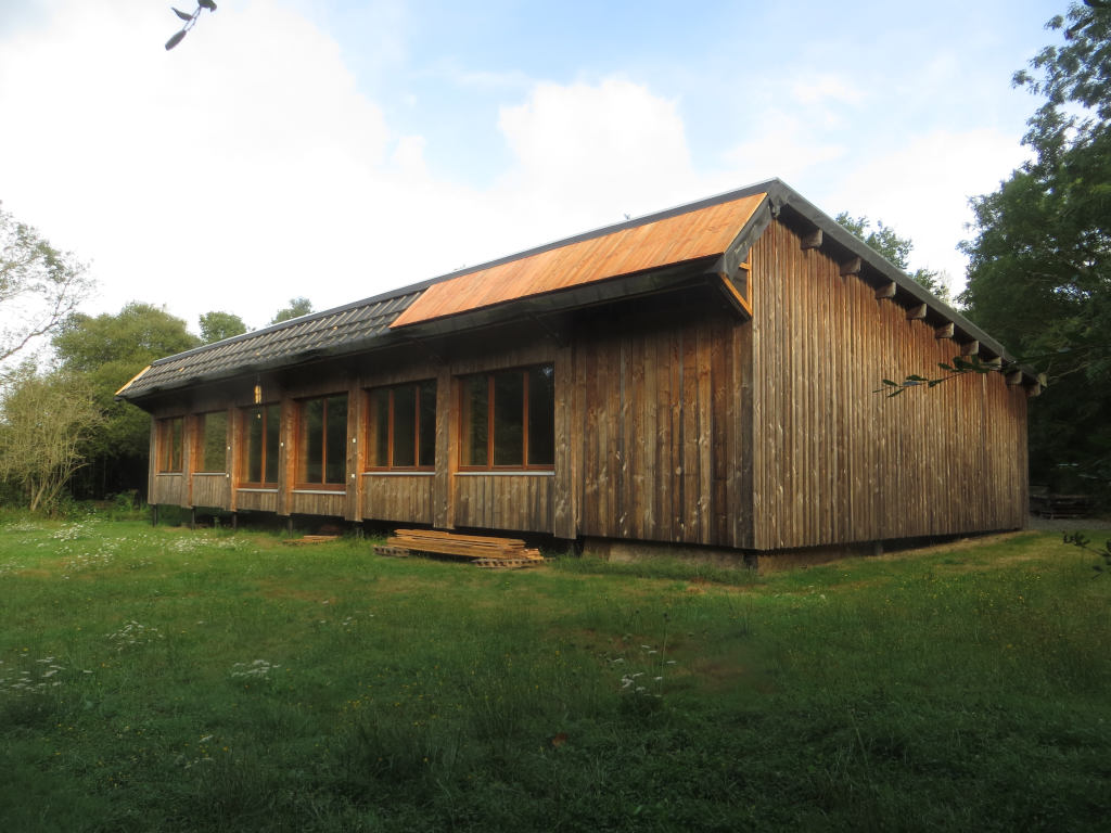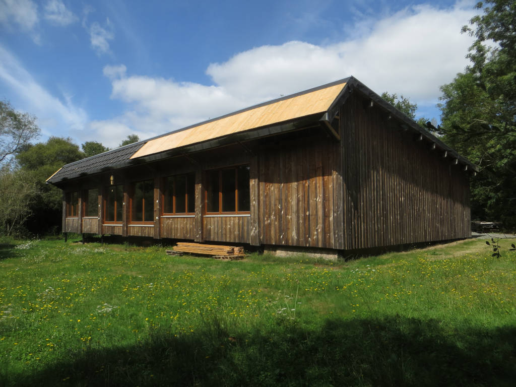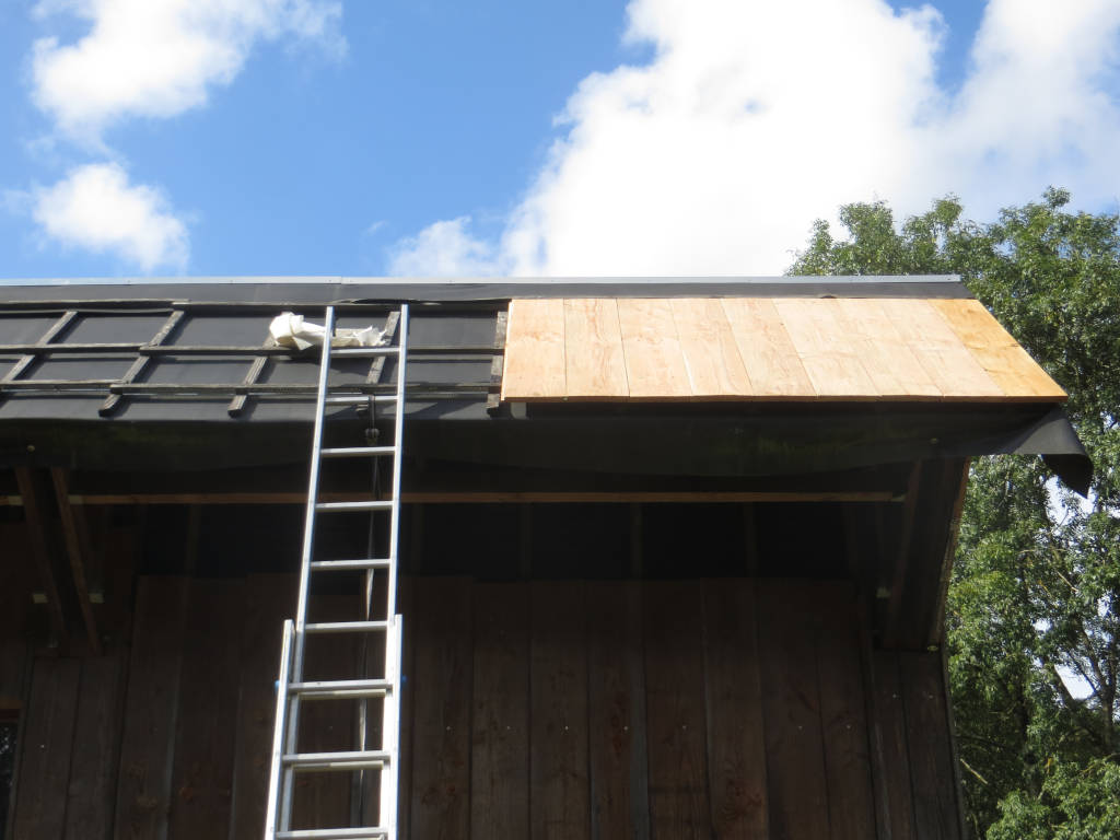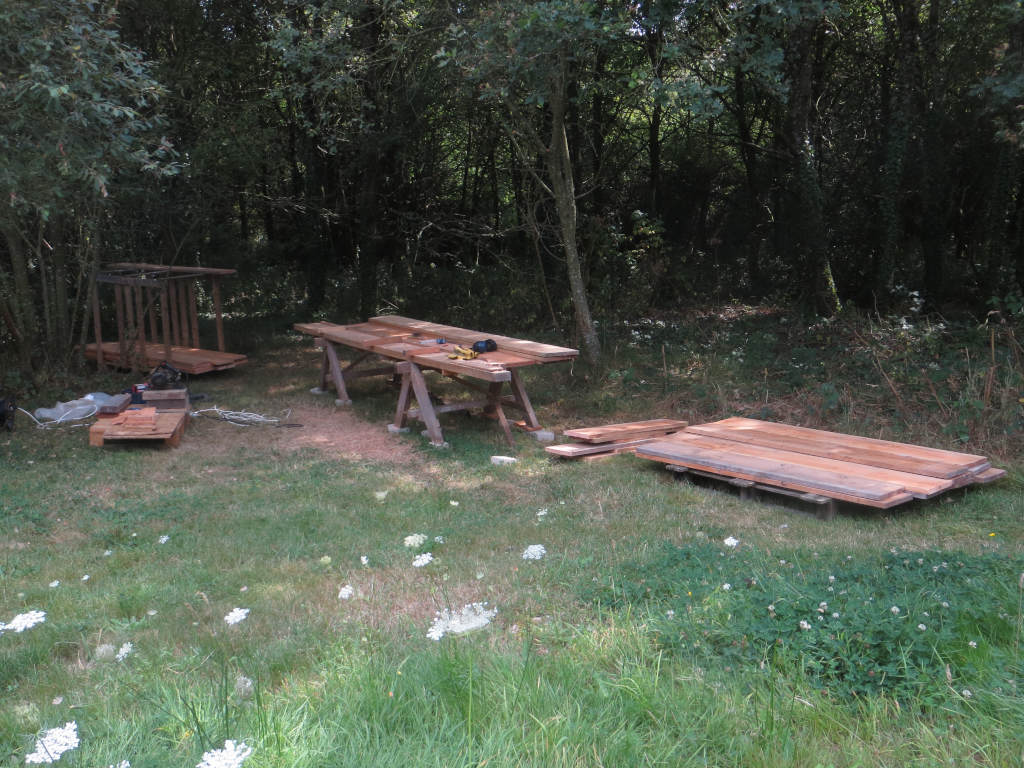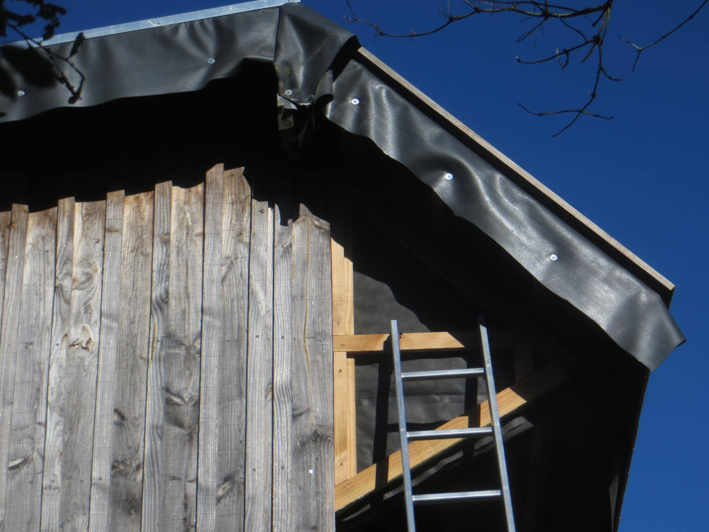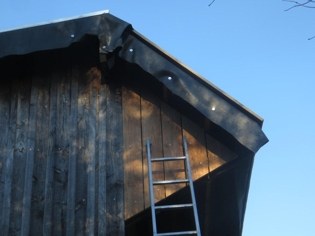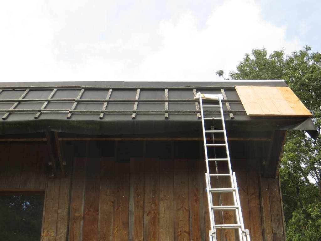2020/09/05 : Bardage (18) - Brise-soleil Mis à jour : 30 novembre 2021 | Imprimer | Affichages : 1306 Pose du bardage sur le brise soleil (au dessus et sur les pignons)... L'avancée du travail : Le détail d'une travée (la n°7) : Le détail d'un pignon (Ouest) : Le stock de planches : Le poste de travail, à l'ombre sous les arbres : Précédent Suivant