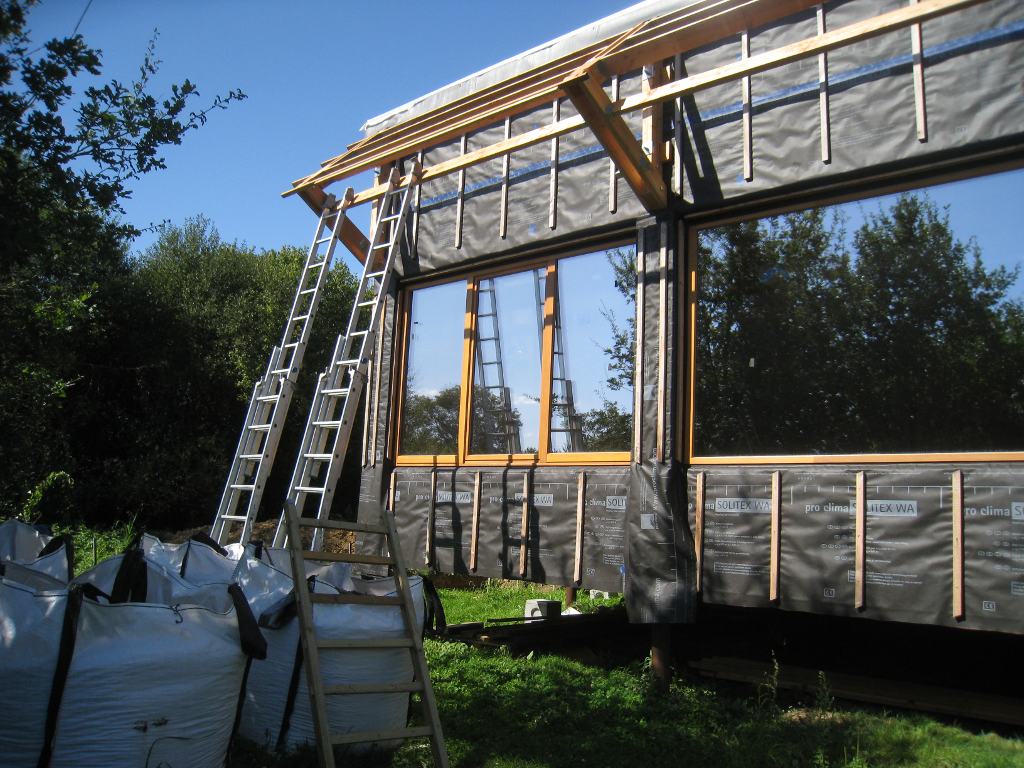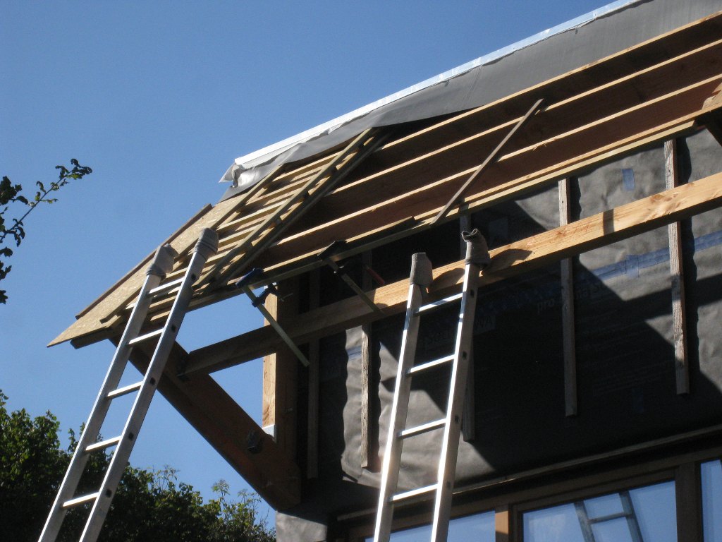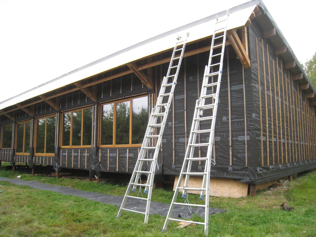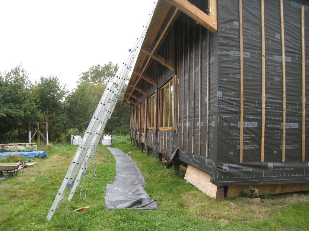 J'avais prévu d'assurer l'étanchéïté du brise-soleil par un pare-pluie, mais pour plus de sécurité et de durabilité, j'opte finalement pour une bâche EPDM (comme pour le fond de la toiture végétale).