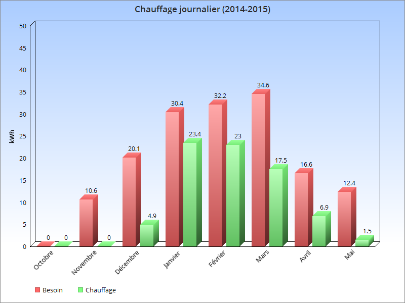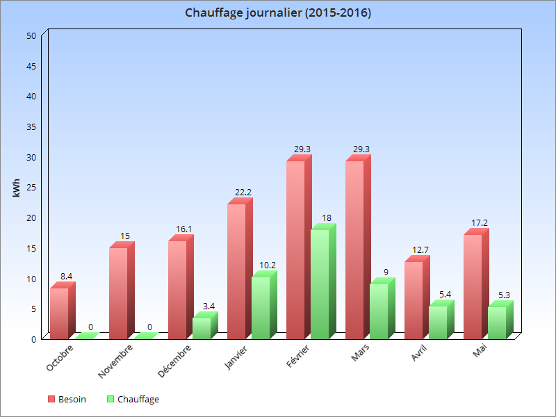 Le graphique suivant représente mon besoin de chauffage journalier moyen, pour les deux saisons de chauffe précédentes :