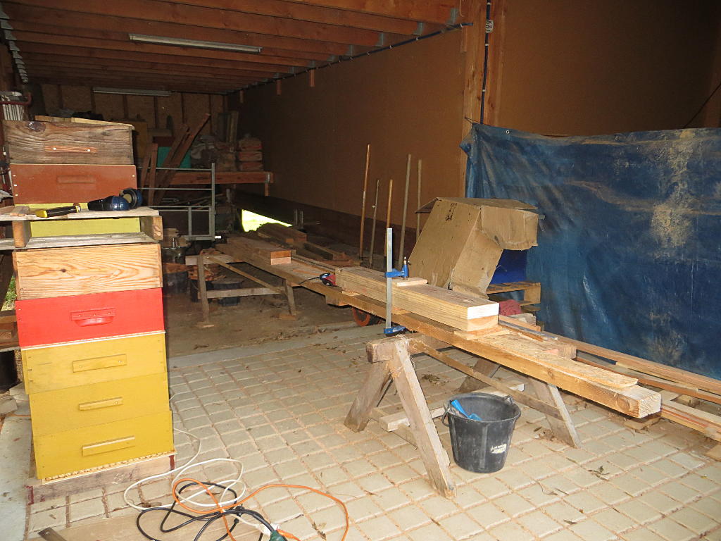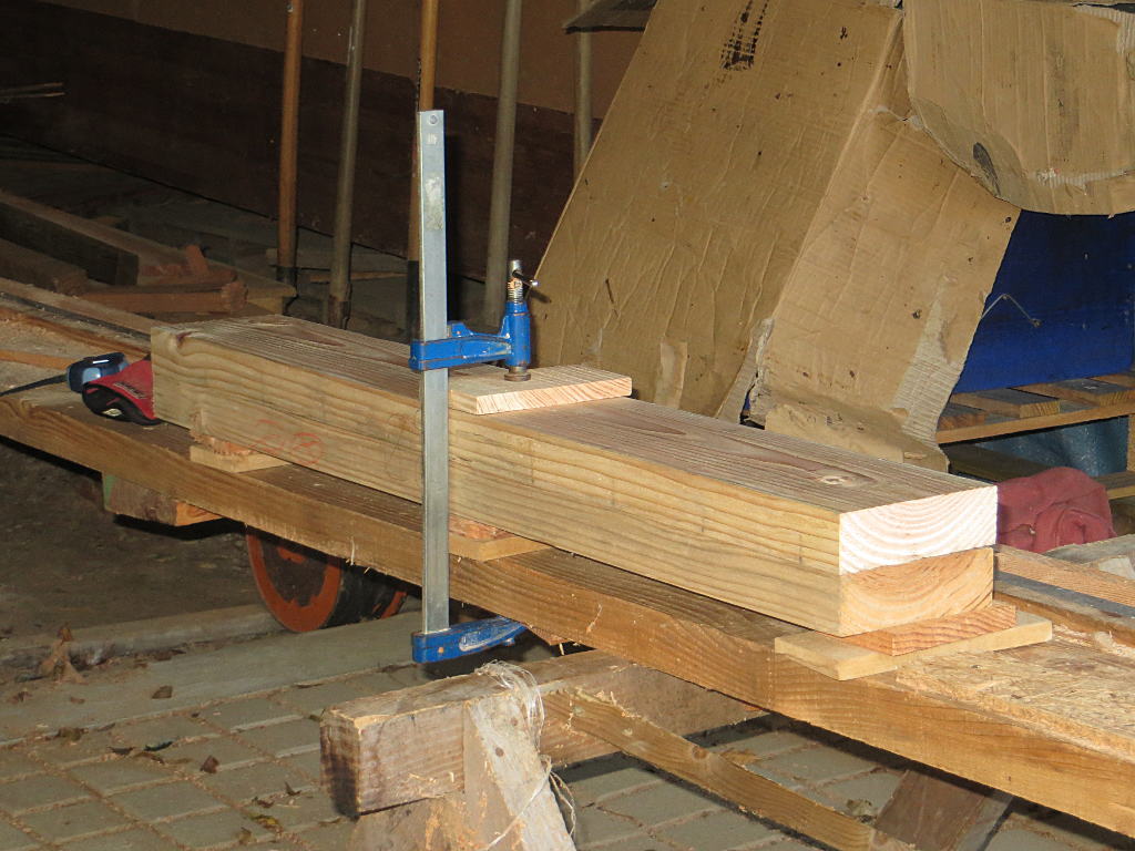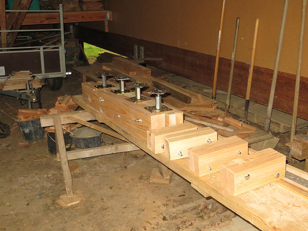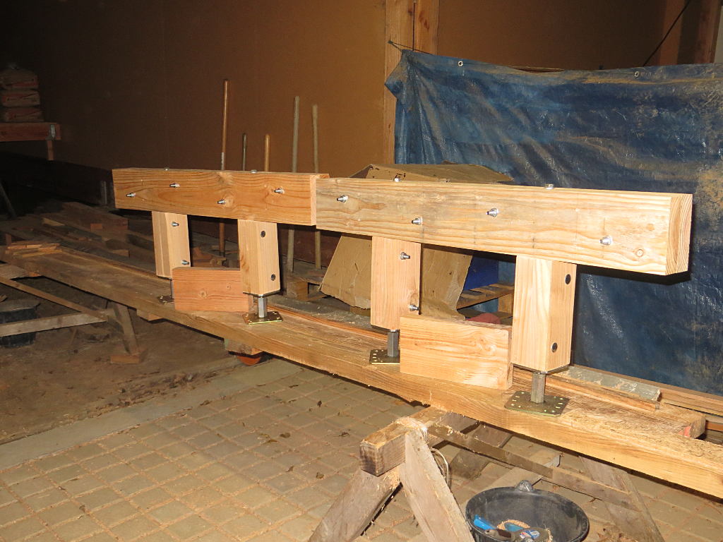 2016/11/11 : Chauffage (9) : Support pour renforcer la dalleMis à jour : 22 novembre 2016 | Imprimer | Affichages : 1856 Mise en place d'un support pour renforcer la dalle en bois sous l'emplacement du futur-poêle ... En plus grand : Construction du support : Le support soutient trois solives. Précédent Suivant