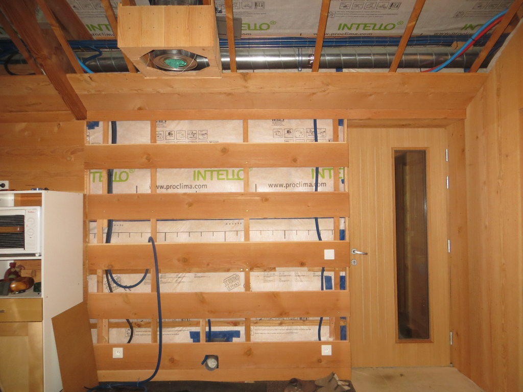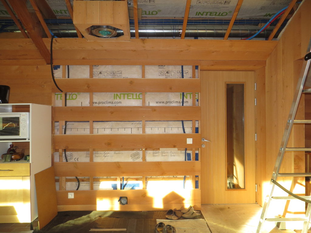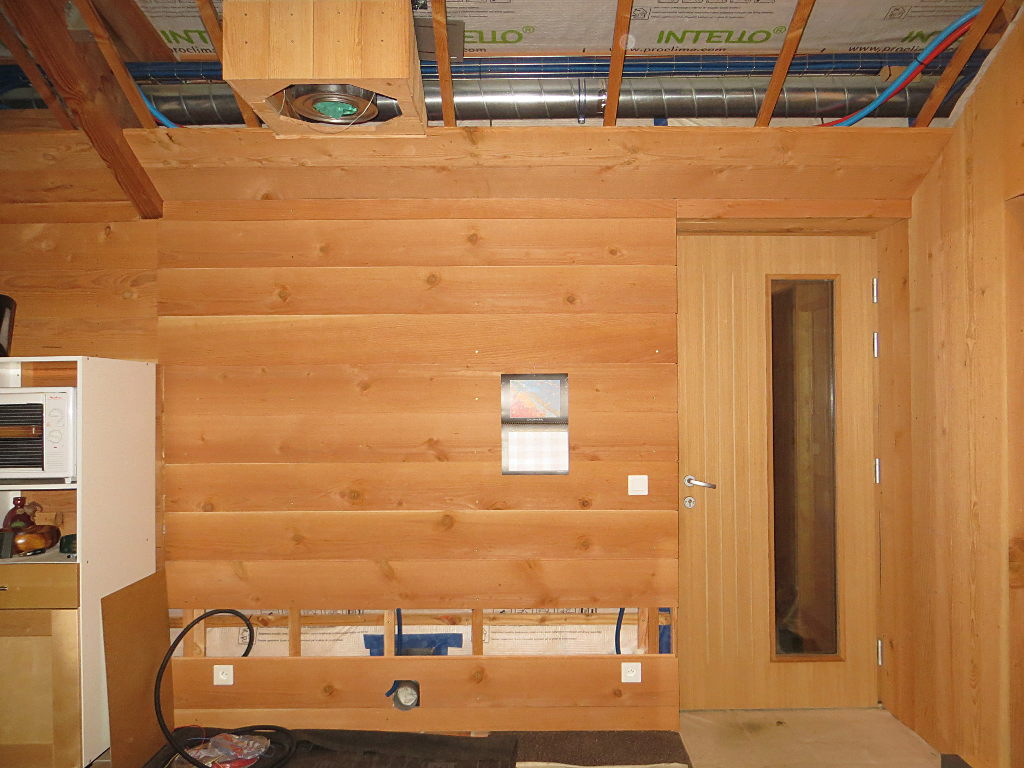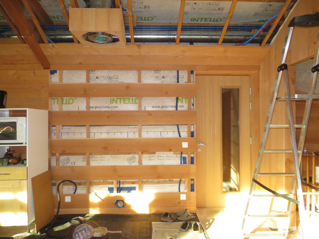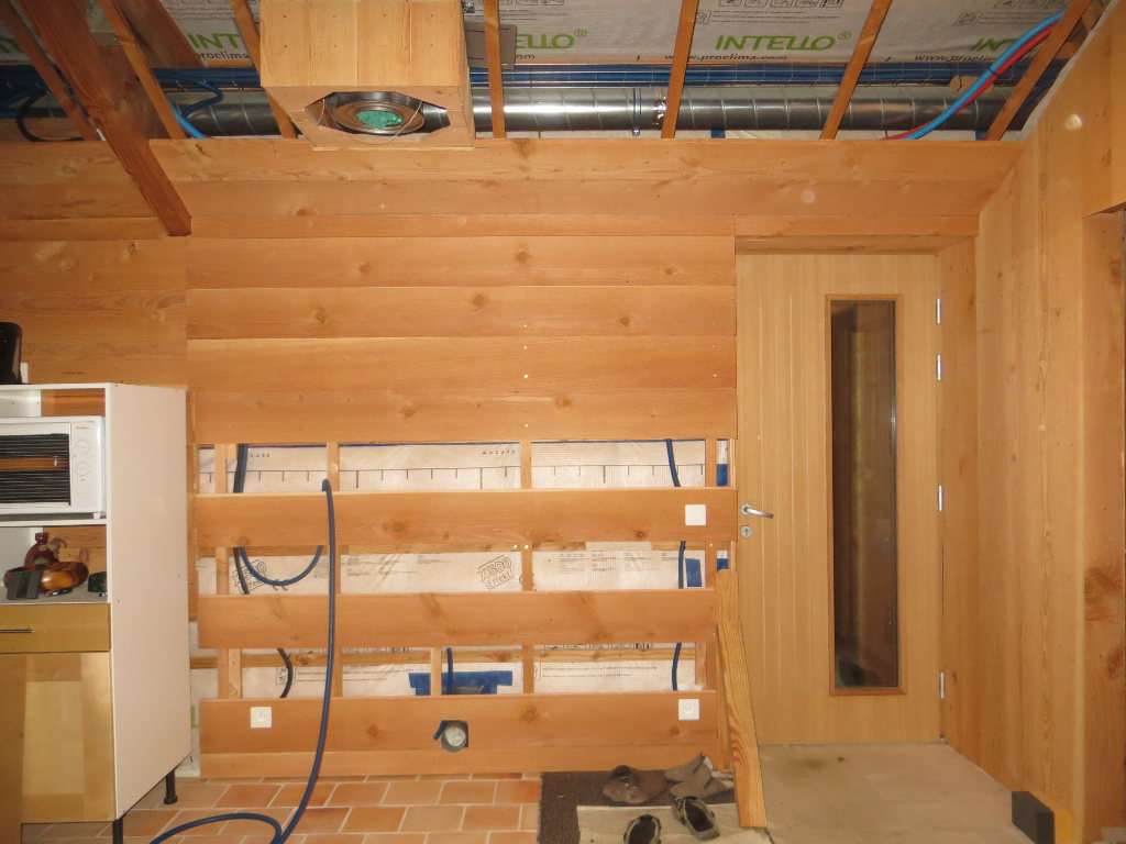 2016/12/03 : Chauffage (12) - Préparation des câblagesMis à jour : 9 décembre 2016 | Imprimer | Affichages : 1700 Préparation des câblages pour le futur poêle à bois ... Ajout d'une prise électrique, tant que j'y suis, et amenée d'une alimentation électrique dédiée au poêle : Vues d'ensemble :