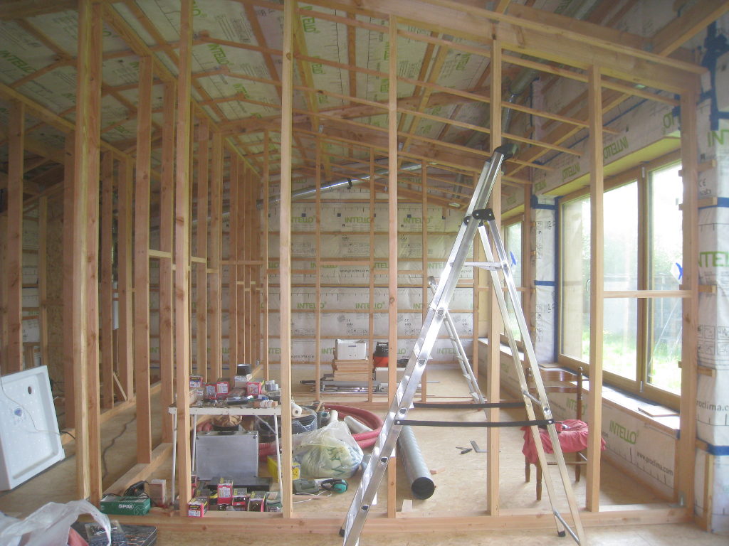 2013/08/09 : Fin des ossaturesMis à jour : 24 février 2016 | Imprimer | Affichages : 2116Cette semaine, nous terminons l'ossature des cloisons intérieures.Cela n'a l'air de rien, mais cela occupe : > > Lire la suite...