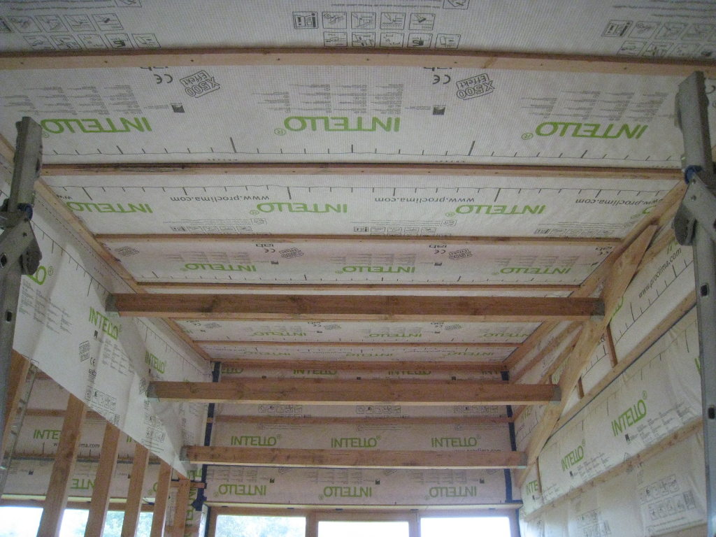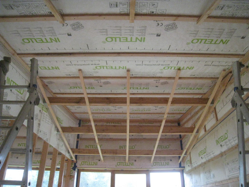 Après la mise en place les fausses pannes du plafond de l'arrière-cuisine (ci-dessus), c'est au tour des fausses pannes au plafond de la chambre n°1 :