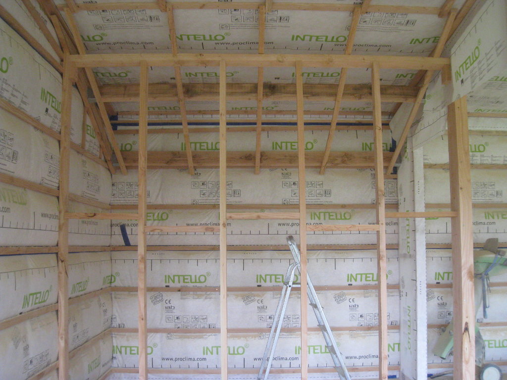 Puis, entre les fausses pannes, les tasseaux qui serviront de support à la finition :
