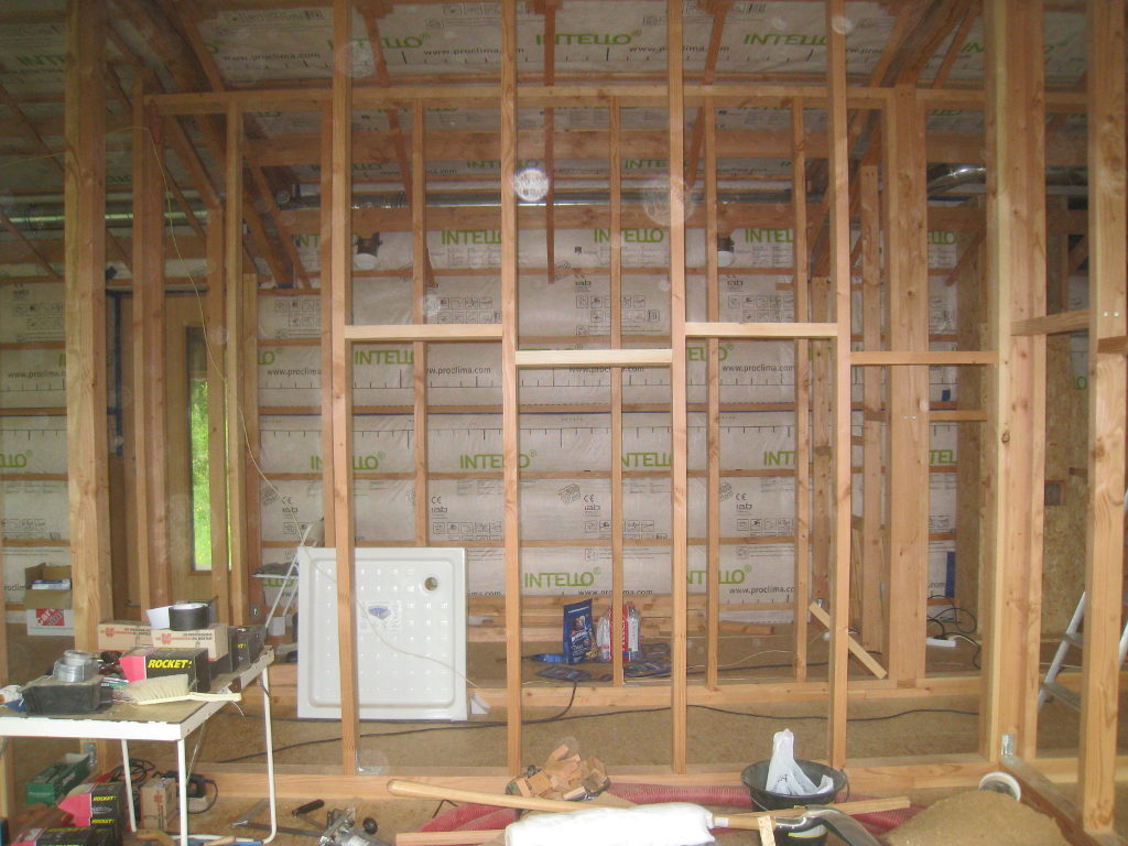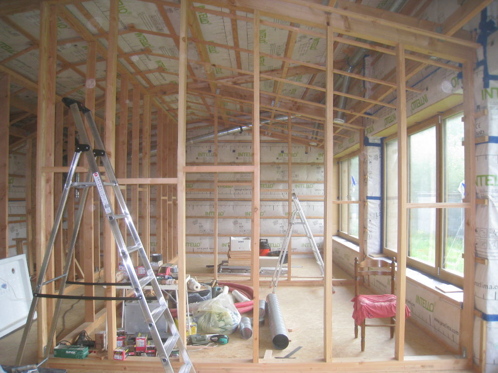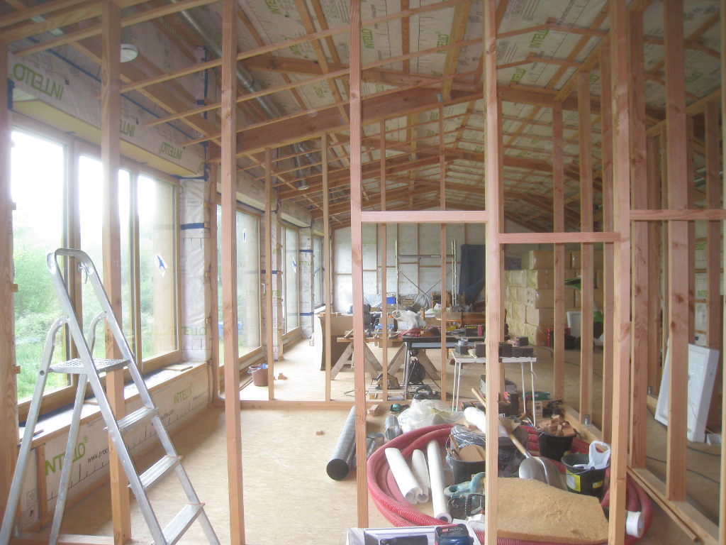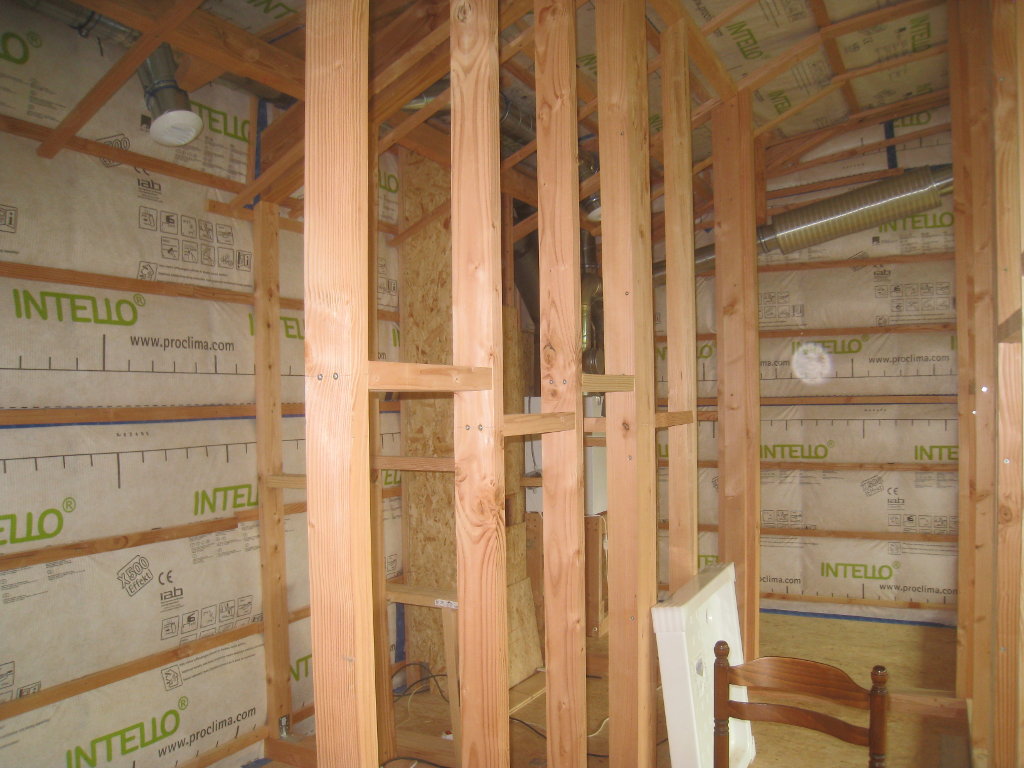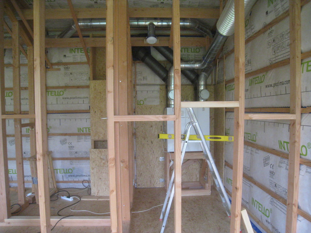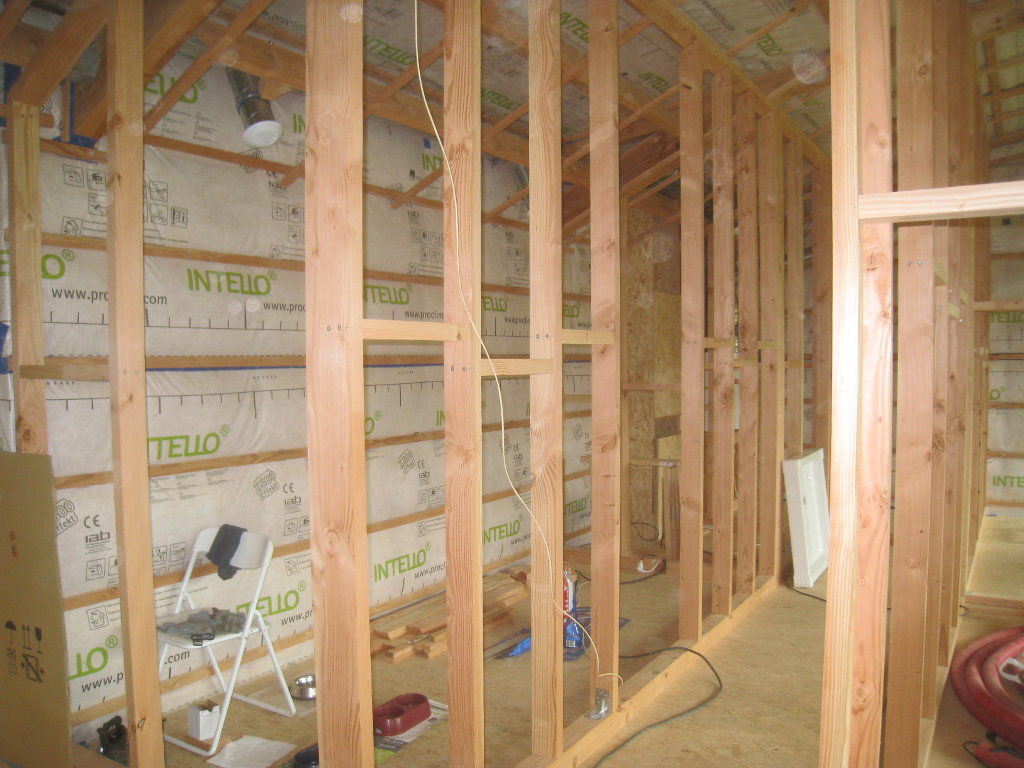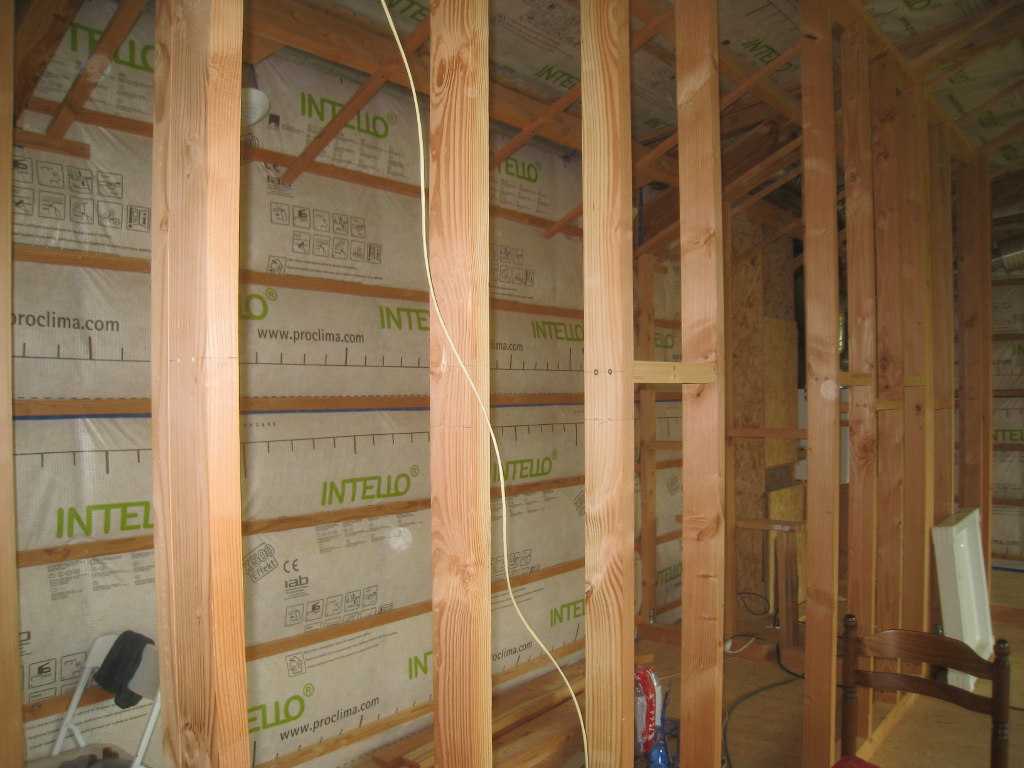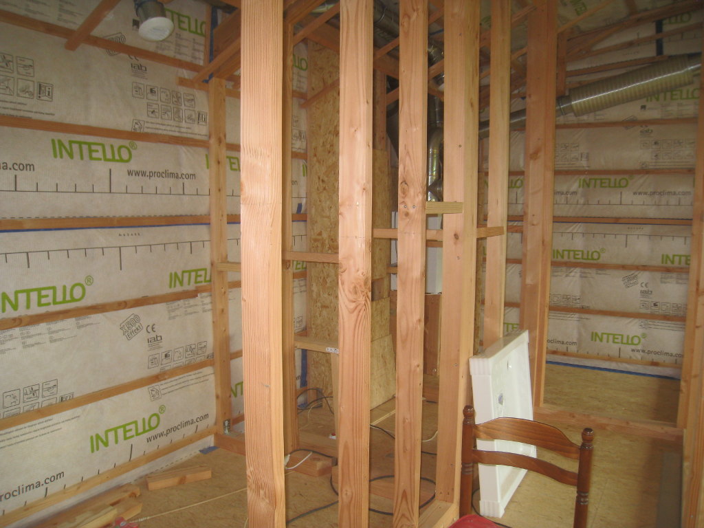 Fin de la pose des entretoises de l'ossature des cloisons intérieures :