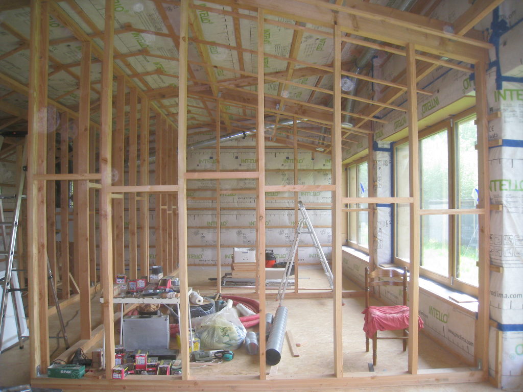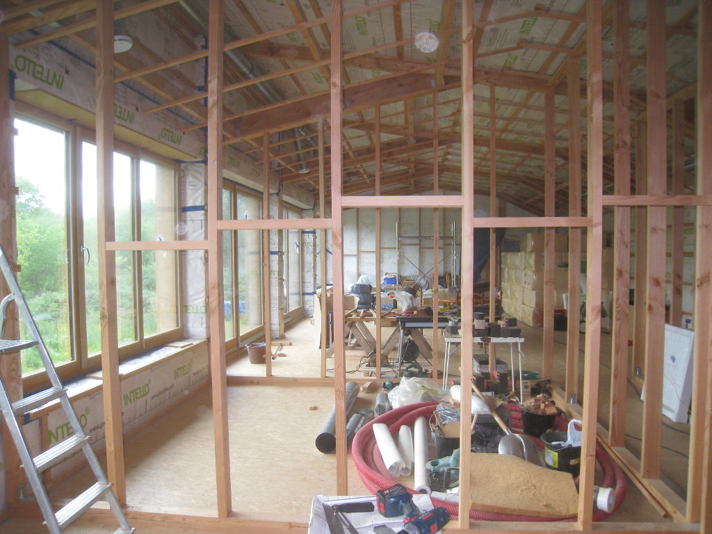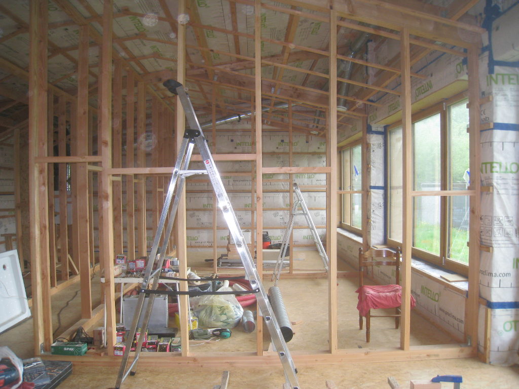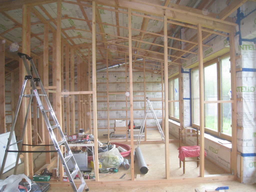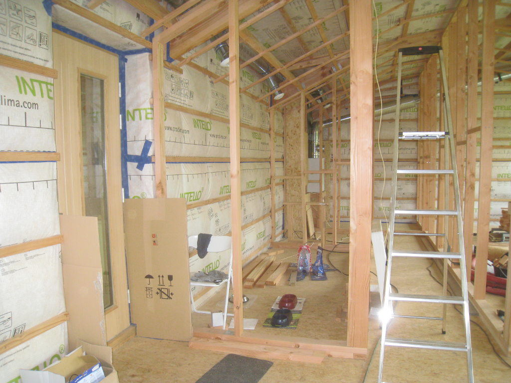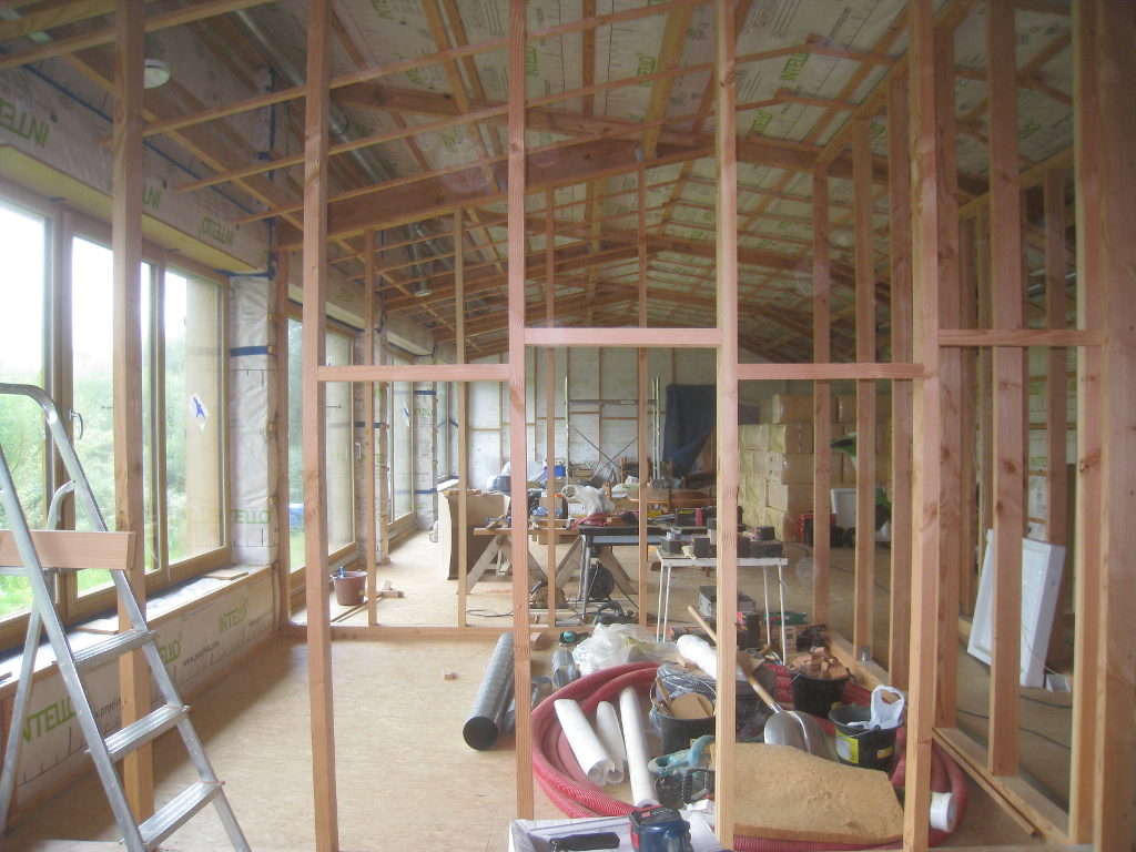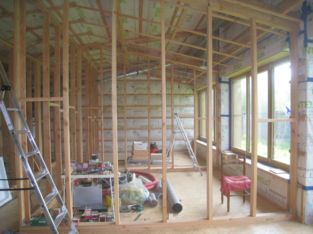 Fin de la pose des entretoises de l'ossature des cloisons intérieures :