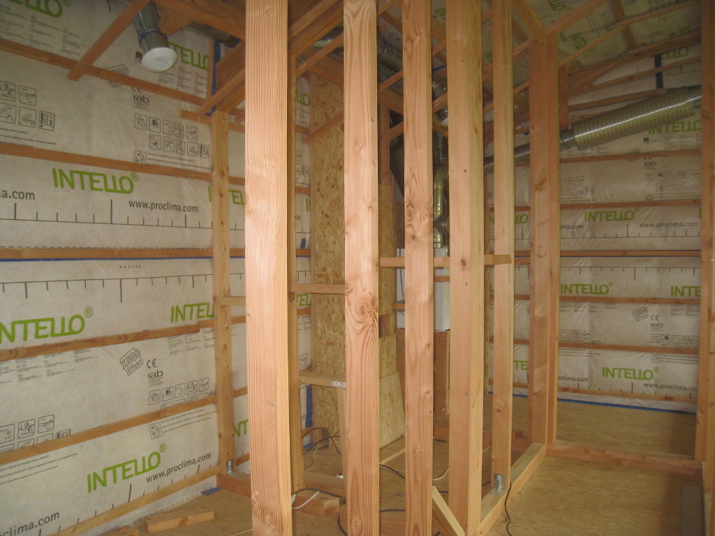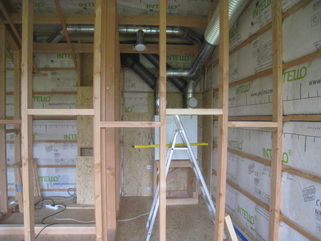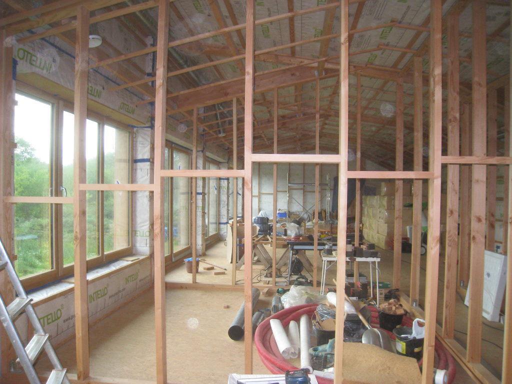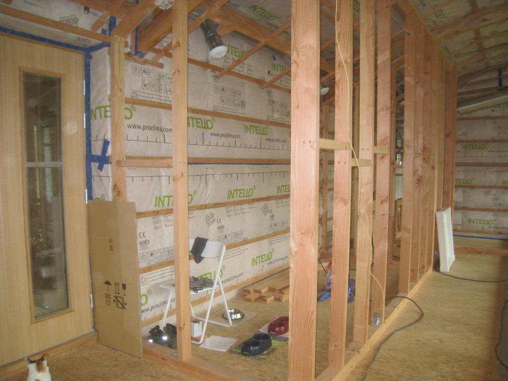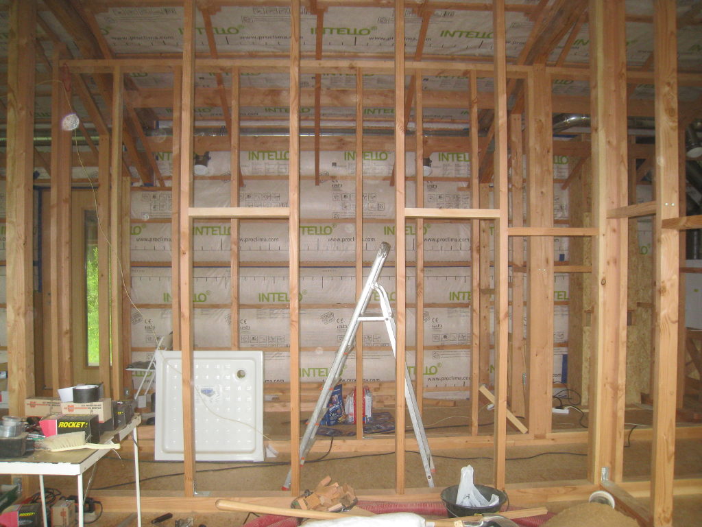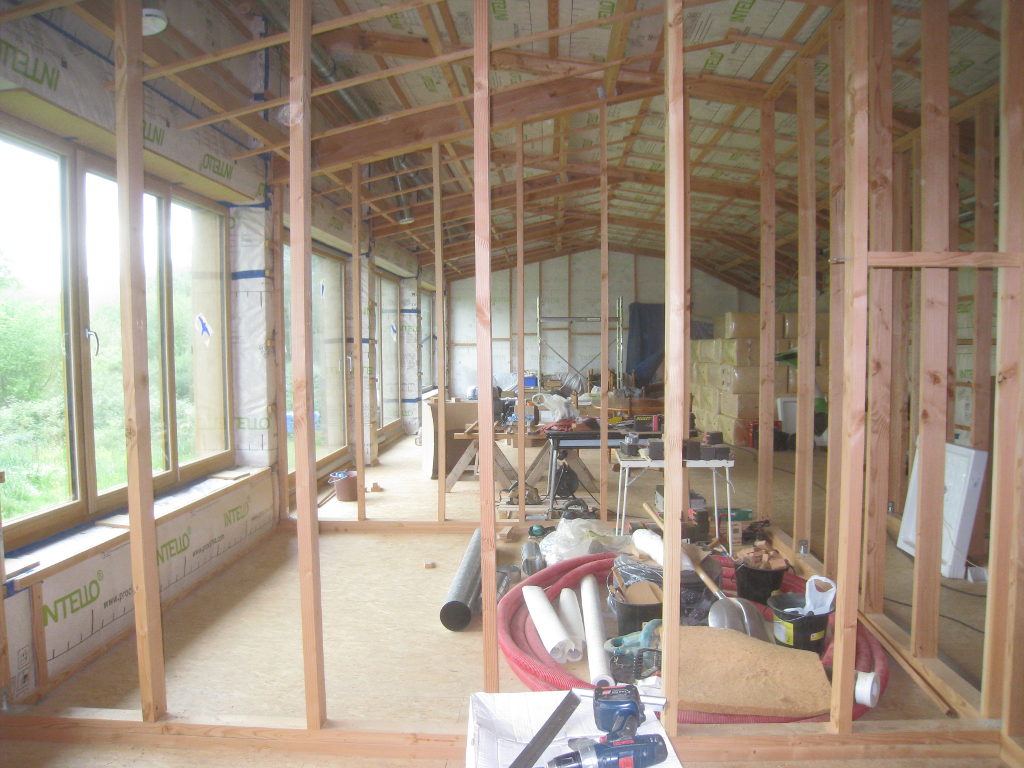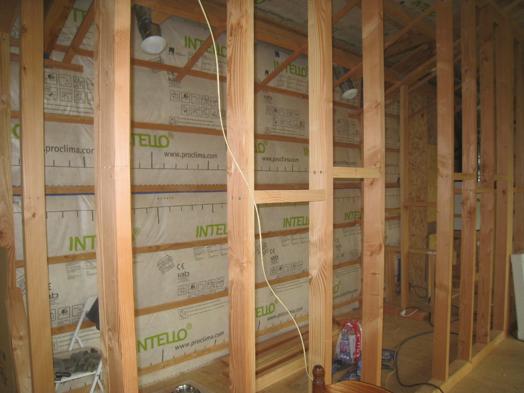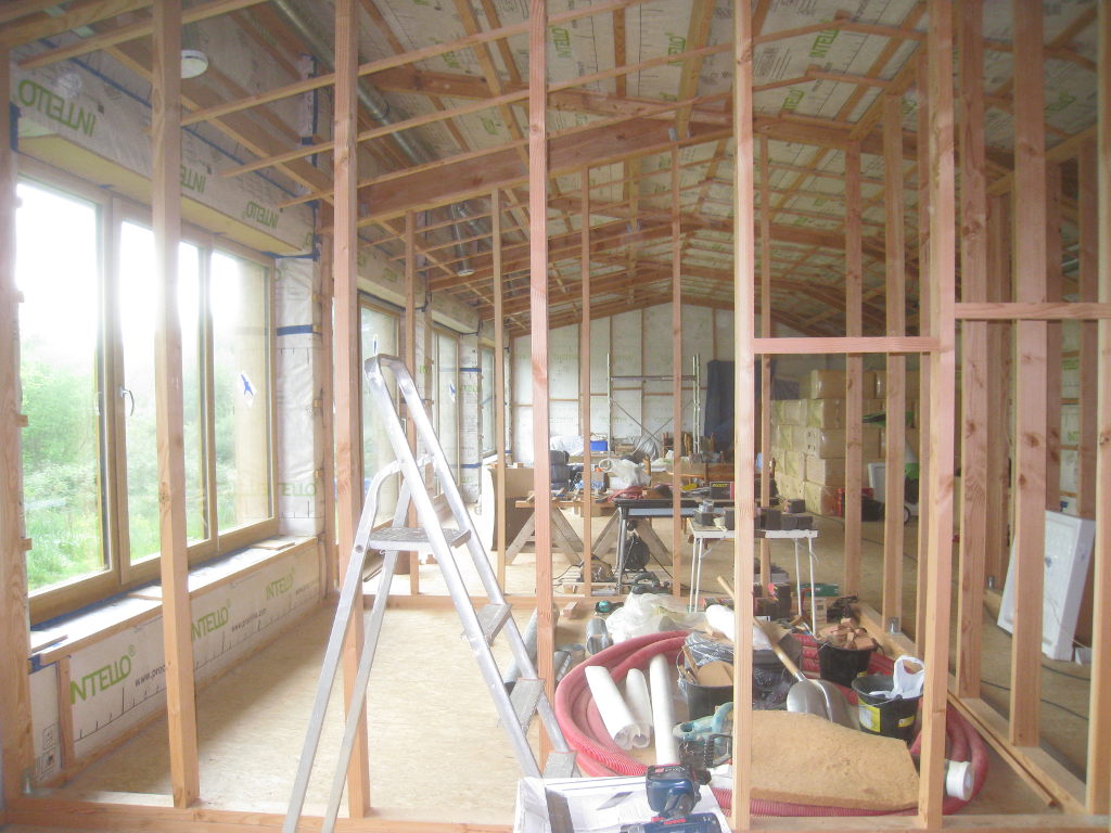 Fin de la pose des entretoises de l'ossature des cloisons intérieures :