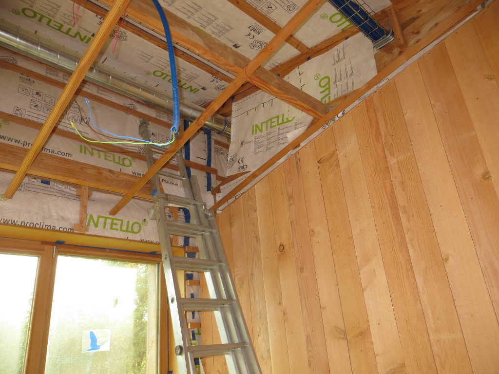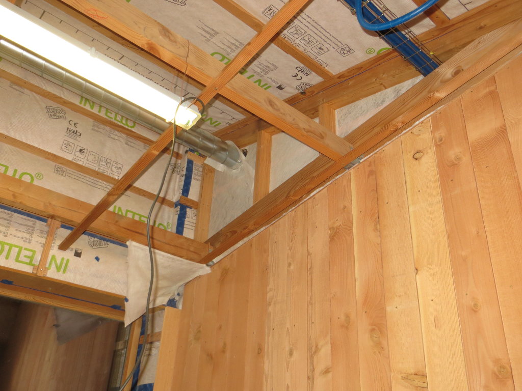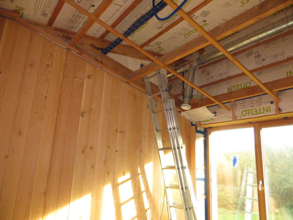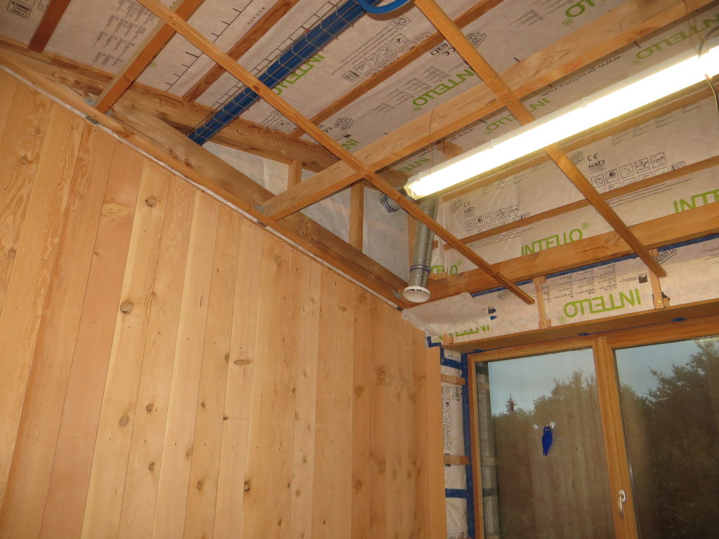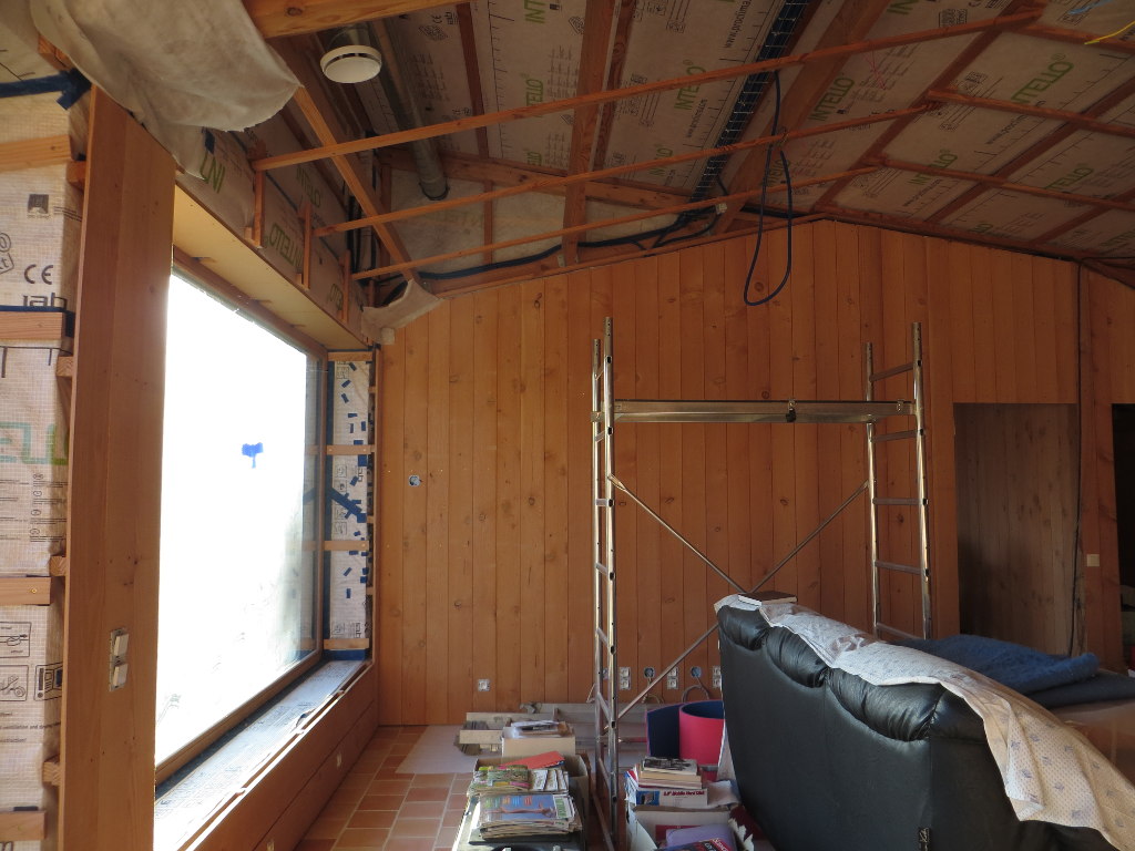 Préparation de l'ossature des séparations entre les pièces, dans le volume technique au Sud ...