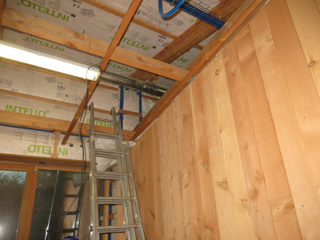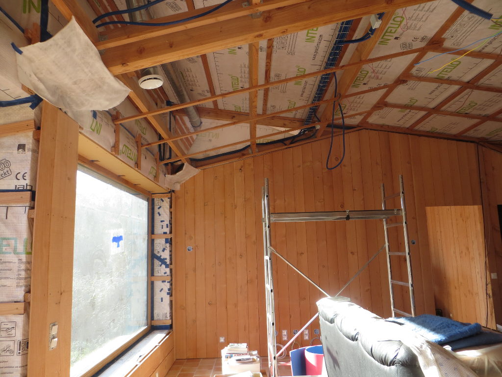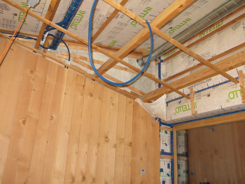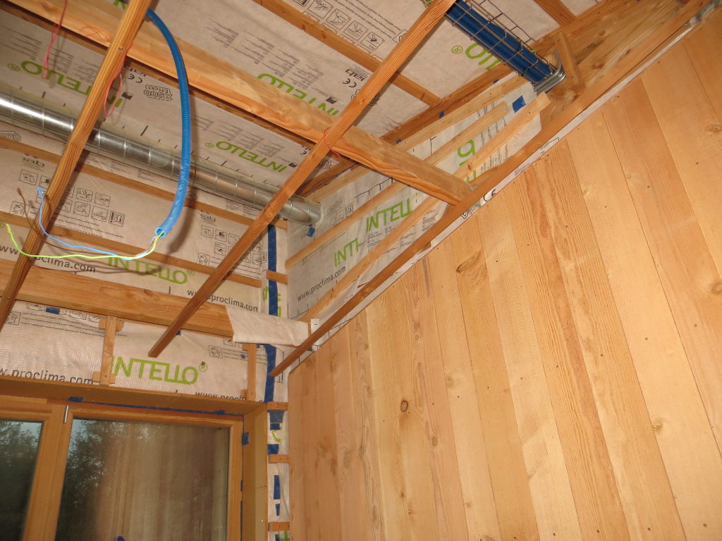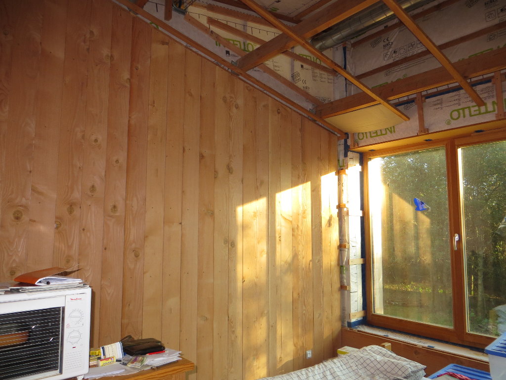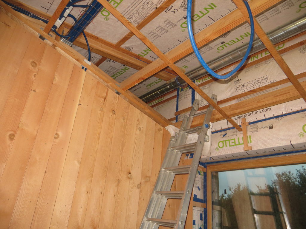 Préparation de l'ossature des séparations entre les pièces, dans le volume technique au Sud ...