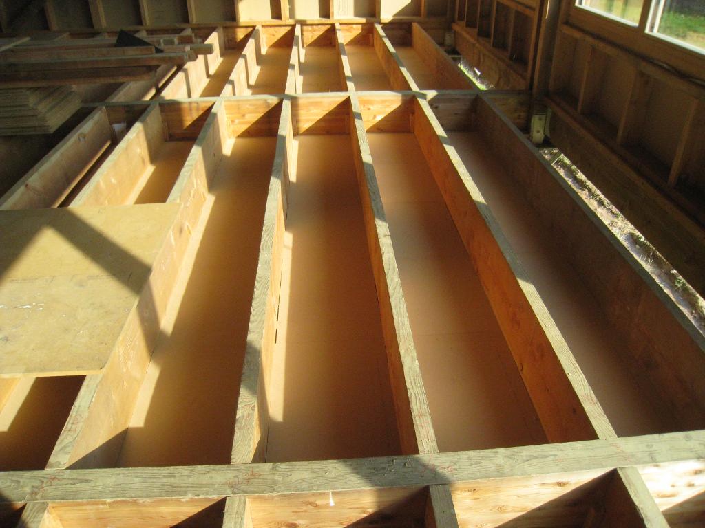 2011/03/04 : Fond de dalle (2)Mis à jour : 24 février 2016 | Imprimer | Affichages : 2252Suite de la mise en place des panneaux de DFP en fond de dalle, entre les solives ... Travée n°3 : Travée n°5 : Travée n°4 : Petite vue du dessous de la dalle : Précédent Suivant
