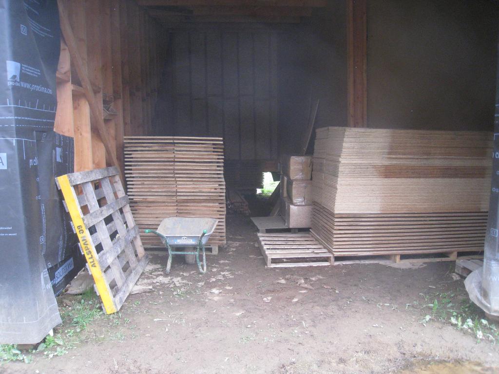 Nous rappatrions ensuite dans le garage, à portée de main, les panneaux d'OSB4.