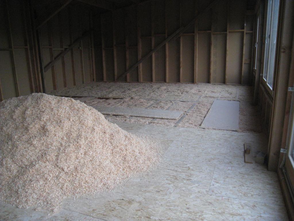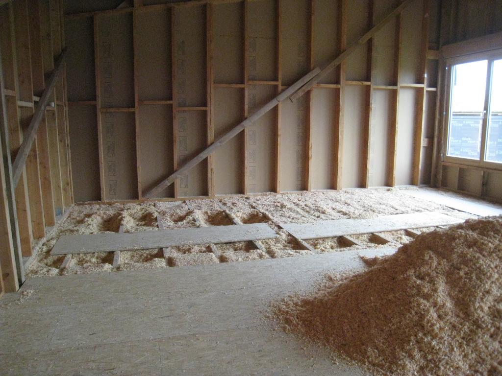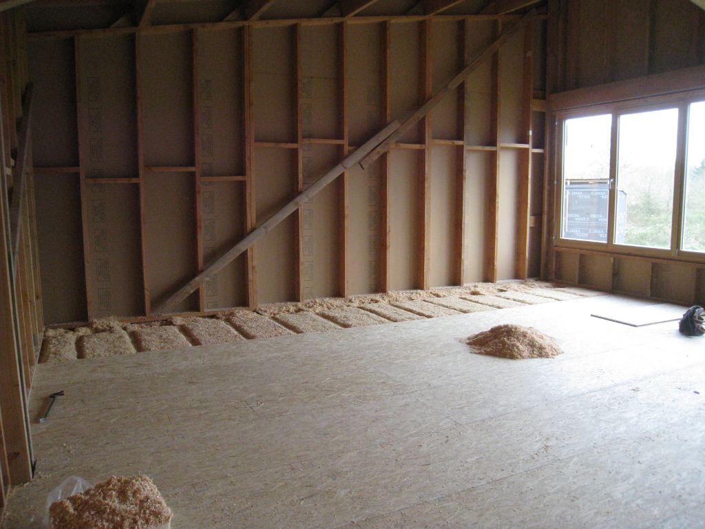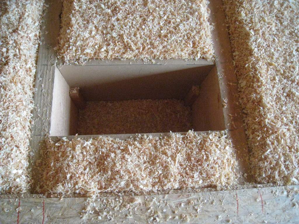 L'objectif est que les copeaux, une fois en place entre les panneaux, soient un peu comprimés de façon à ne pas se tasser ensuite.