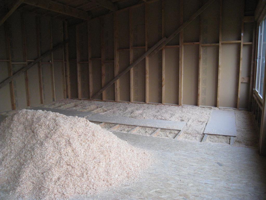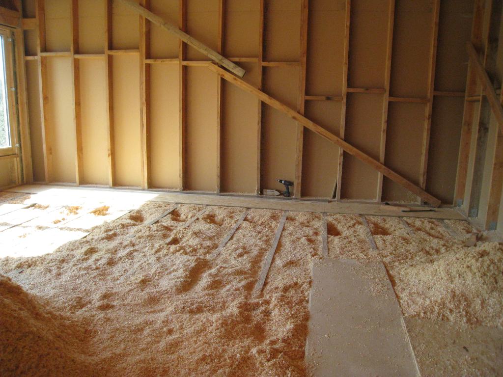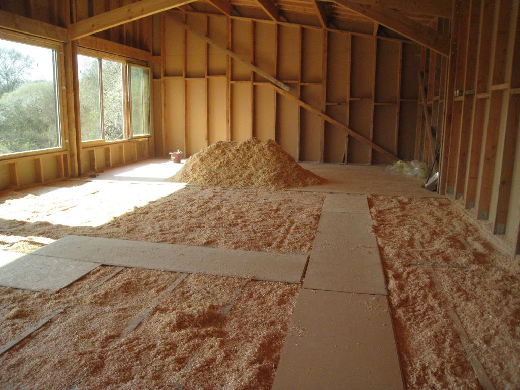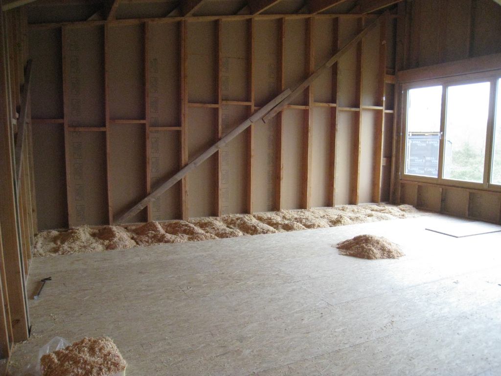 L'objectif est que les copeaux, une fois en place entre les panneaux, soient un peu comprimés de façon à ne pas se tasser ensuite.