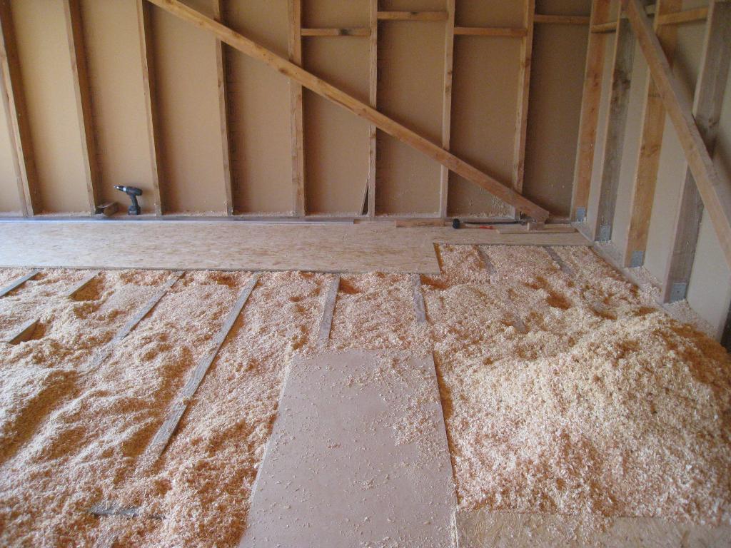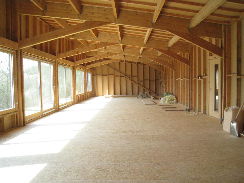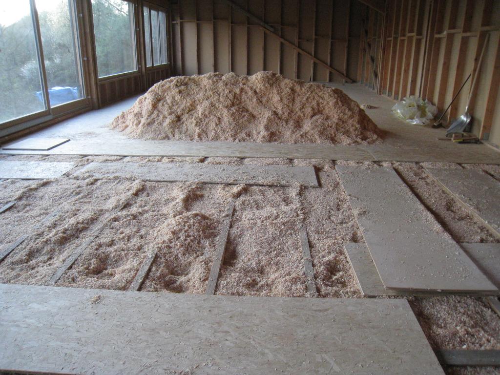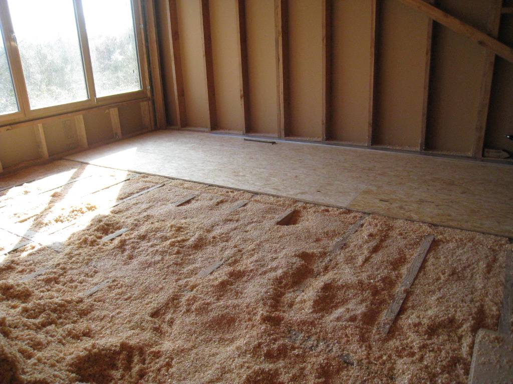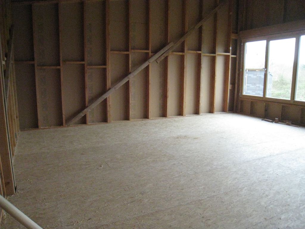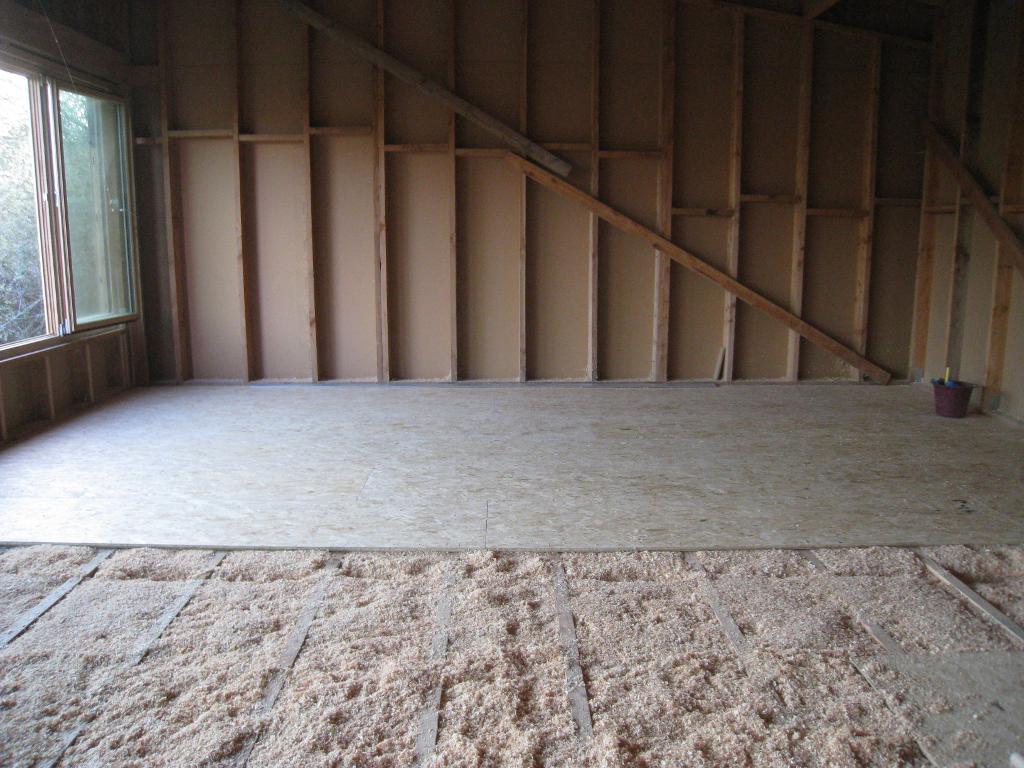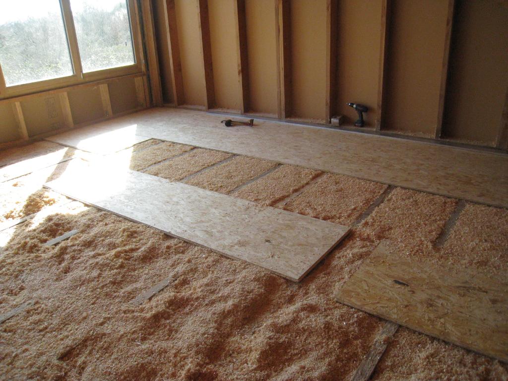 Les copeaux ayant été déversés partout, il s'agit maintenant de fermer la dalle avec des panneaux d'OSB4.