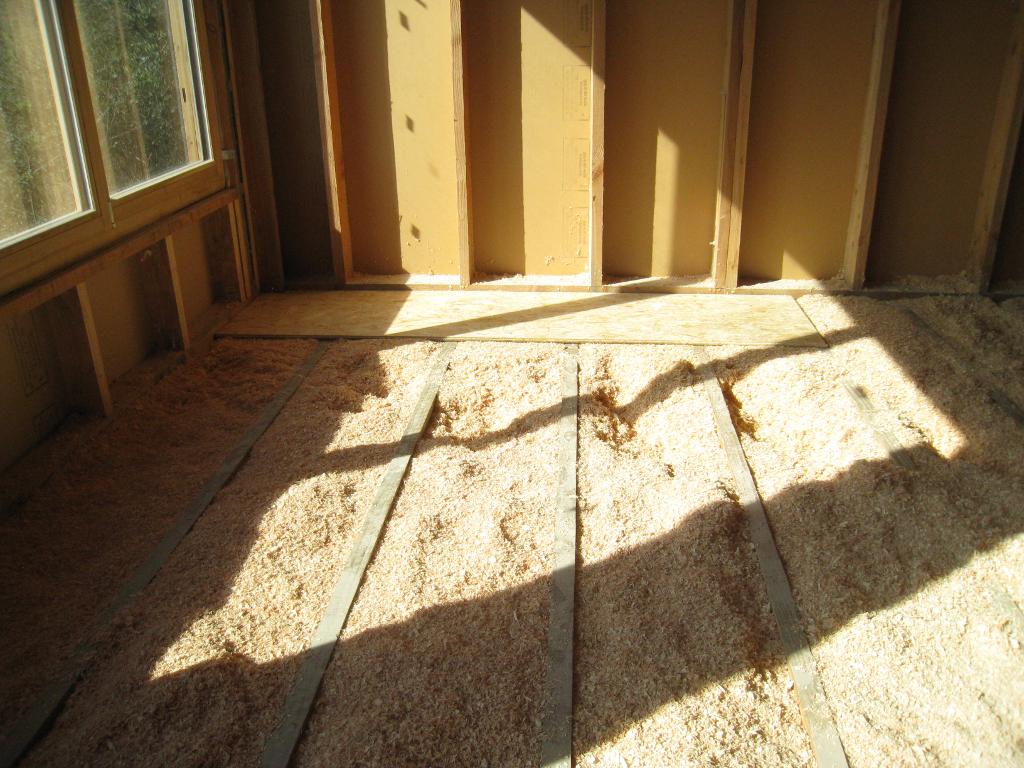 Pour finir la dalle, je place des vis (presque 3000) pour maintenir ensemble les panneaux et les solives :