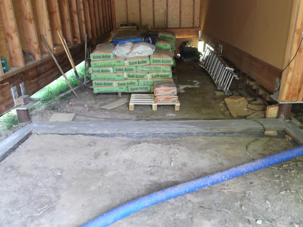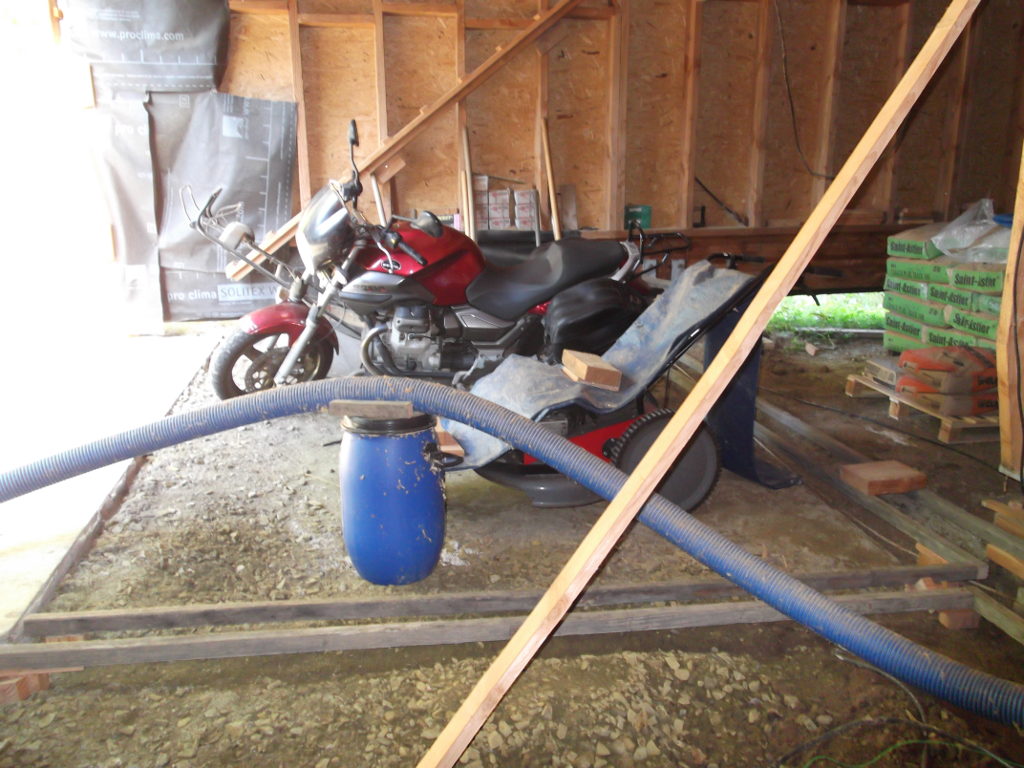 2013/09/05 : Garage - BorduresMis à jour : 23 février 2016 | Imprimer | Affichages : 2108Mise en place des bordures dans la moitié du garage : Ces bordures en ciment vont délimiter et retenir le sable et les pavés que j'ajouterai plus tard :