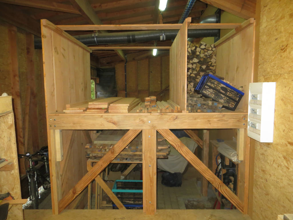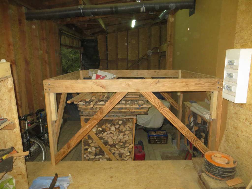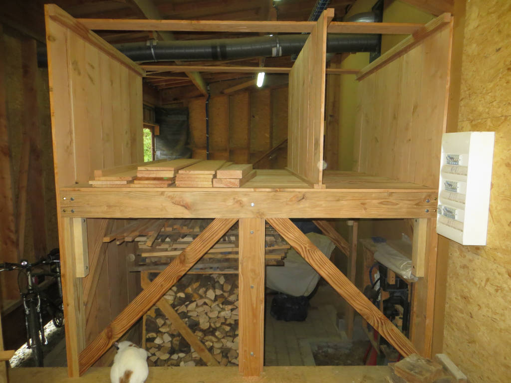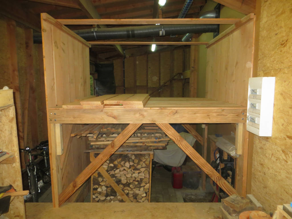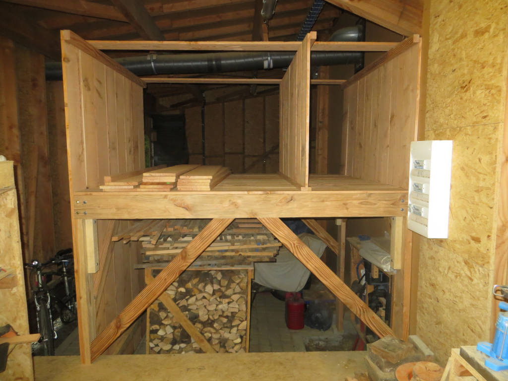 2020/10/20 : Construction d'un faux grenier à bûchesMis à jour : 1 janvier 2022 | Imprimer | Affichages : 1324 Construction d'un faux-grenier à bûches dans le garage, de façon à optimiser l'usage de l'espace. Avancée du travail : Dans la foulée, réception de trois stères de bois, découpage, fendage et rangement. L'hiver peut maintenant arriver... Précédent Suivant