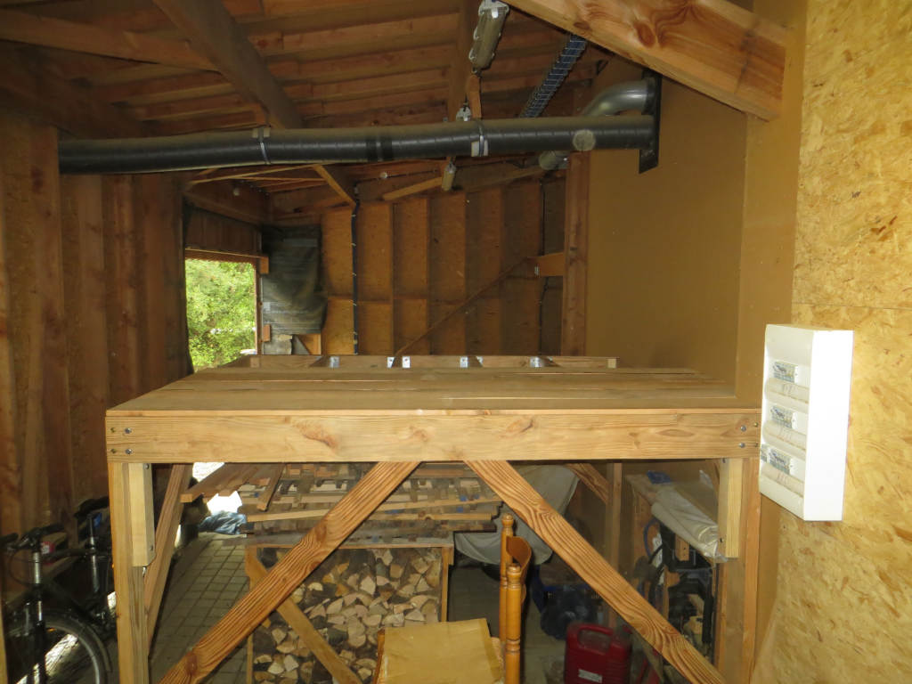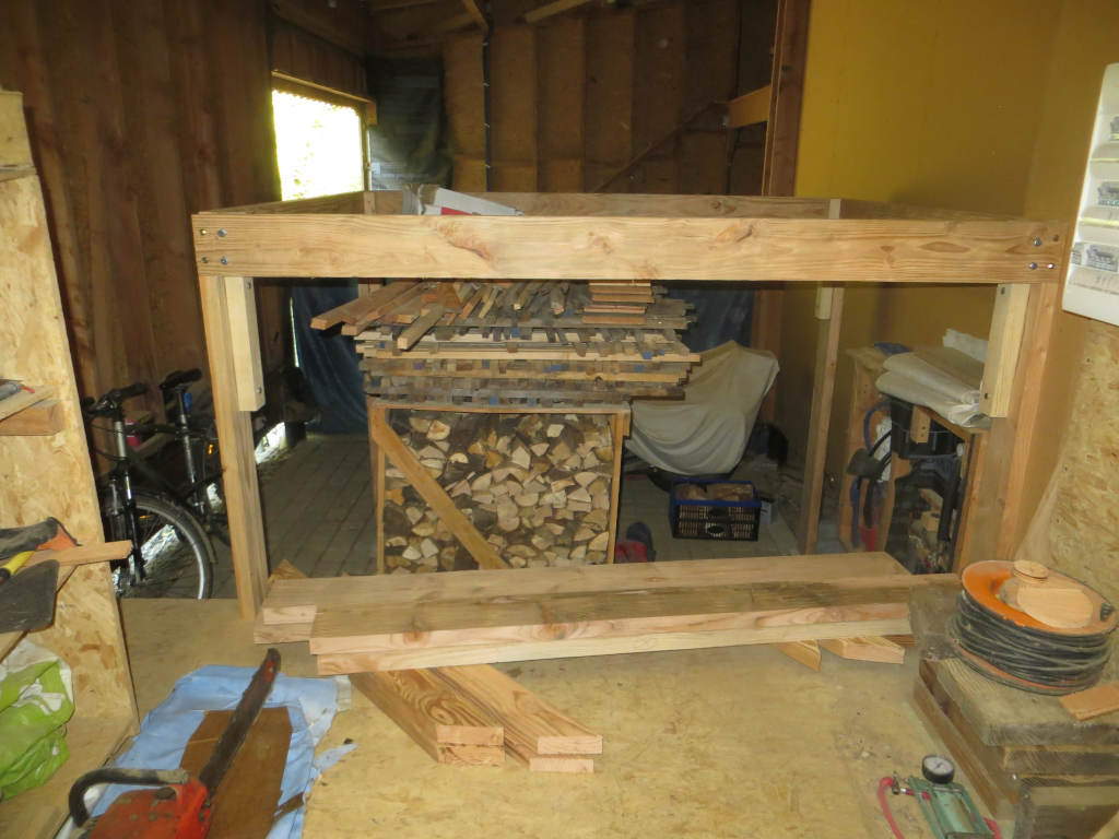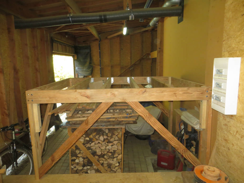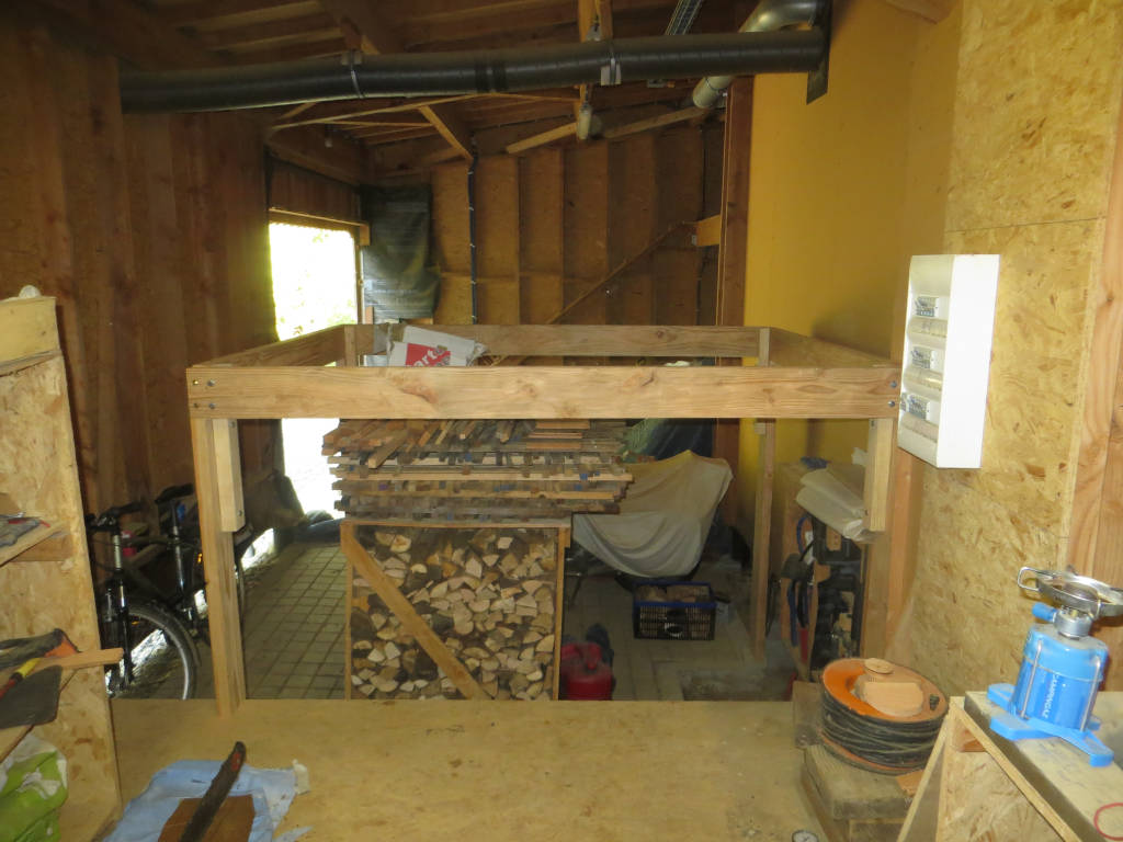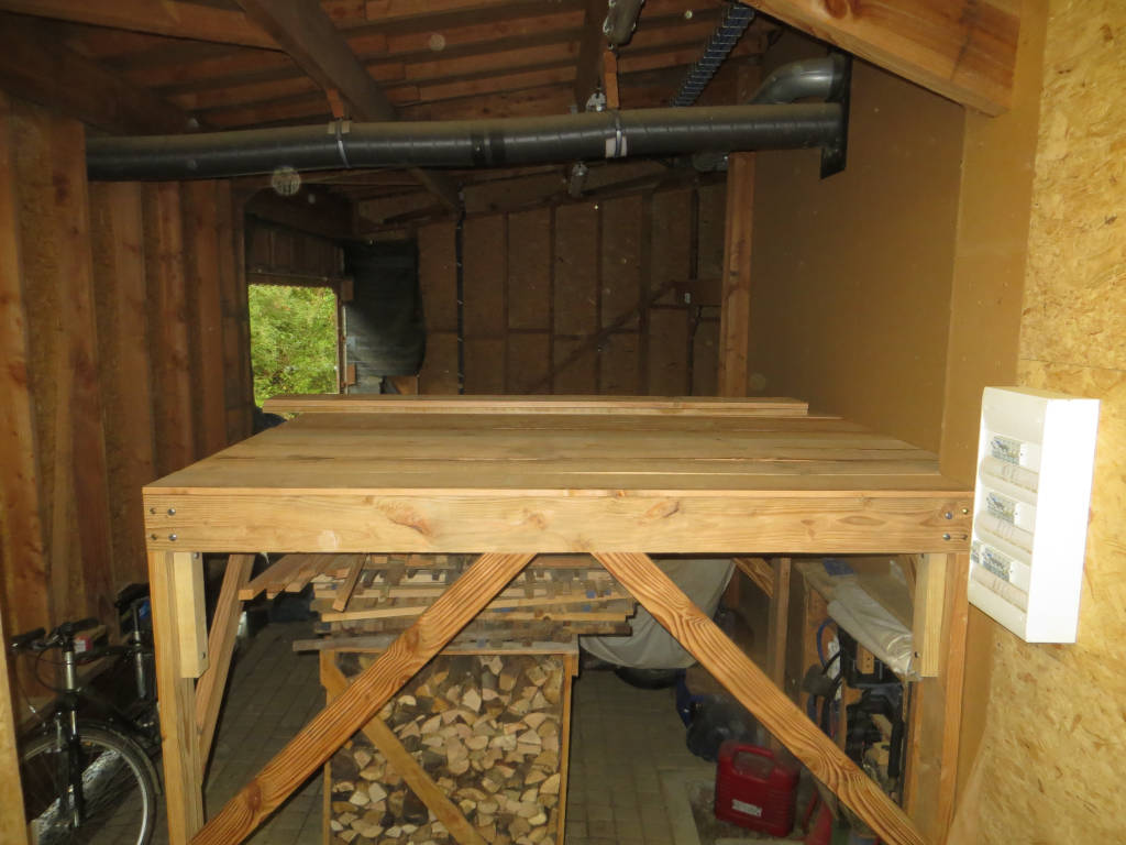 2020/10/20 : Construction d'un faux grenier à bûchesMis à jour : 1 janvier 2022 | Imprimer | Affichages : 1324 Construction d'un faux-grenier à bûches dans le garage, de façon à optimiser l'usage de l'espace. Avancée du travail : Dans la foulée, réception de trois stères de bois, découpage, fendage et rangement. L'hiver peut maintenant arriver... Précédent Suivant