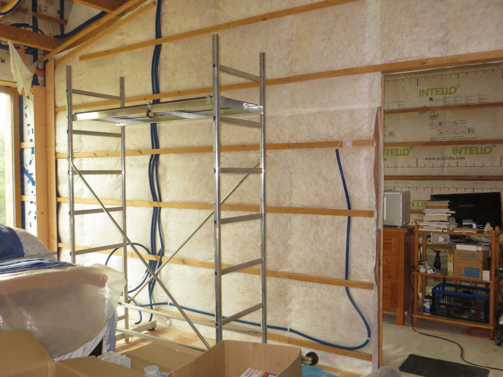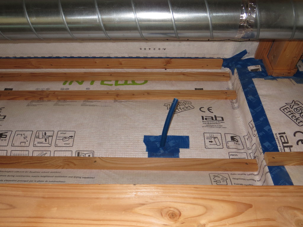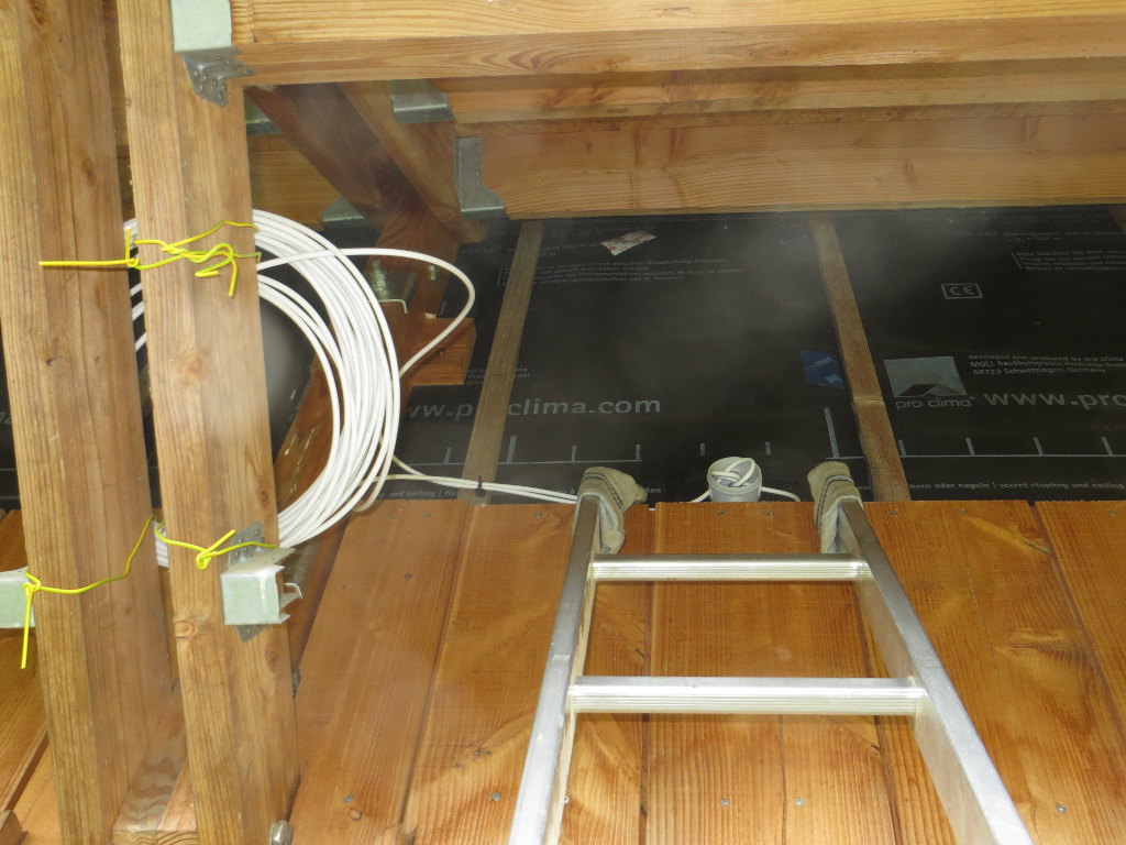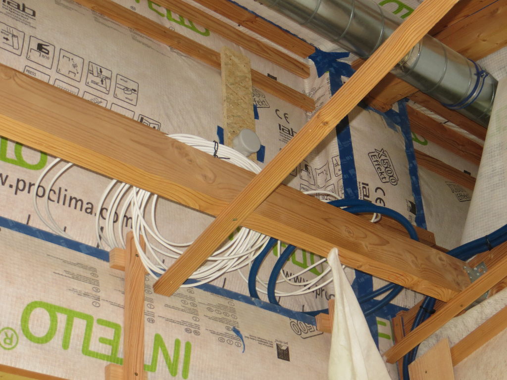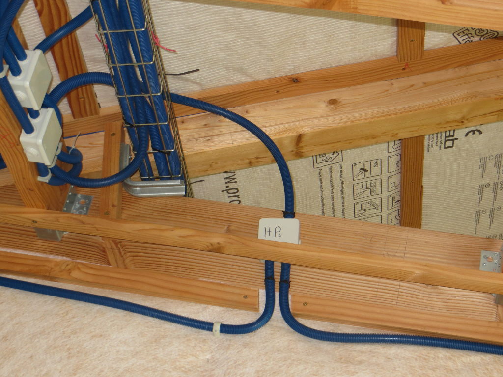 Je prévois trois câbles réseau. Un premier pour le coin salon (audio/vidéo), un second pour la chambre n°1 (la plus éloignée du local technique qui héberge la box), et un troisième au plafond de la grande salle (futur répéteur wifi si besoin) :