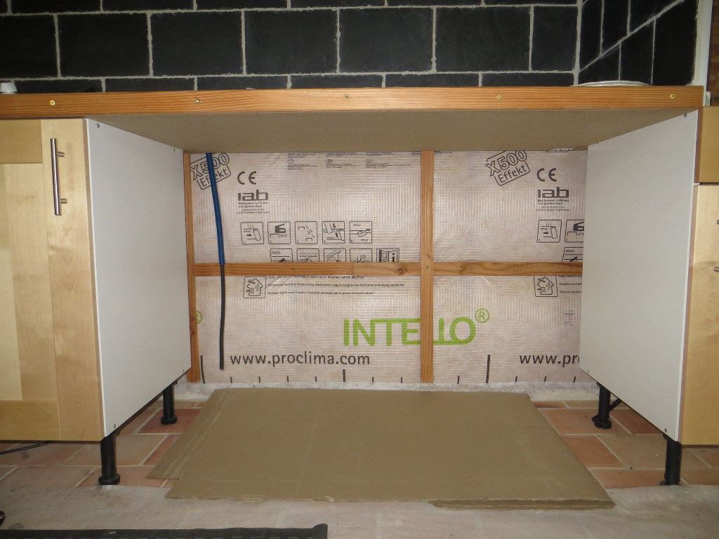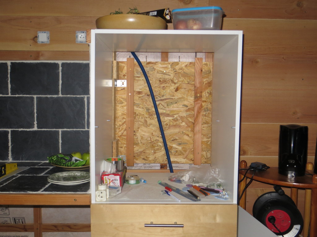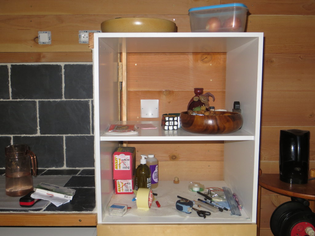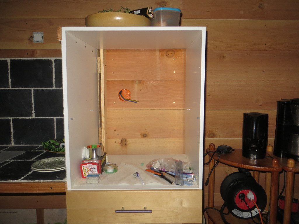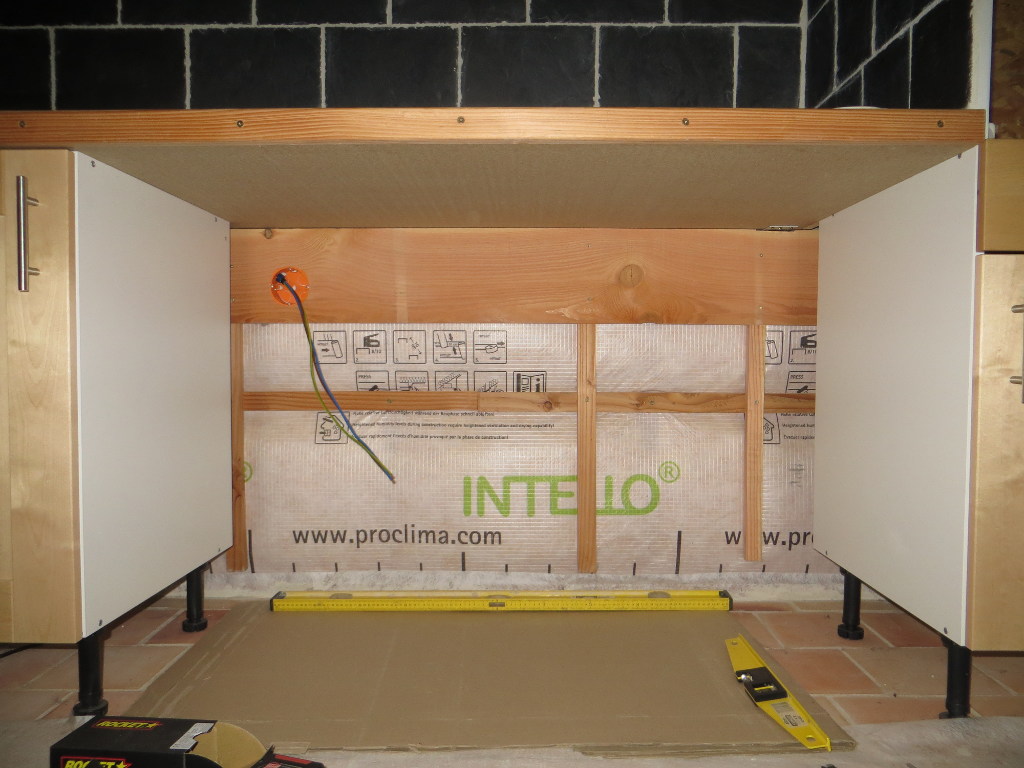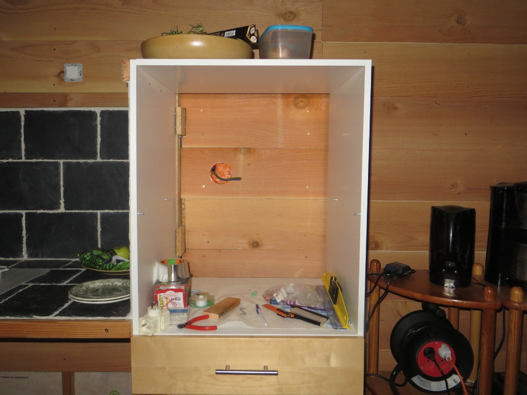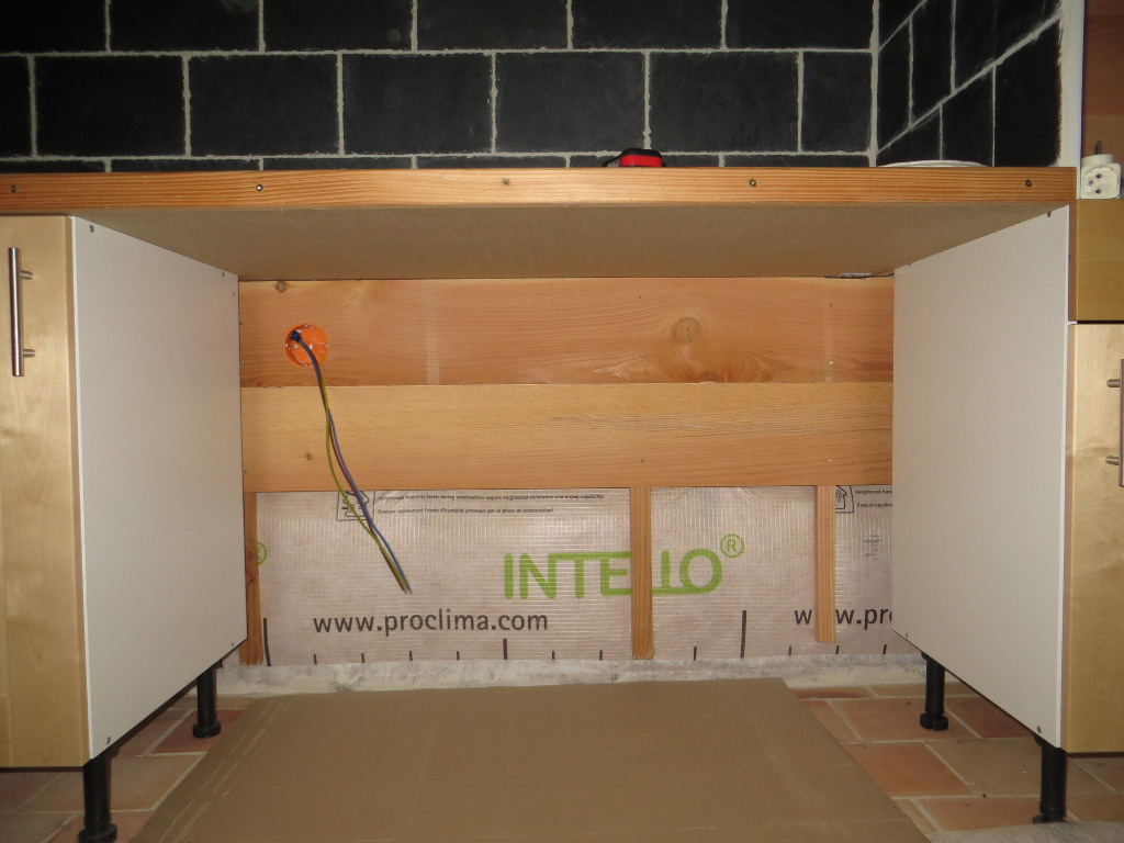 2015/10/24 : Électricité (16) - CuissonMis à jour : 23 novembre 2016 | Imprimer | Affichages : 1761 Pose du lambris à l'emplacement des prises de cuisson (four et plaque) ... Emplacement de la prise de la table de cuisson (deriière le meuble mobile) : Emplacement de la prise du four : Précédent Suivant