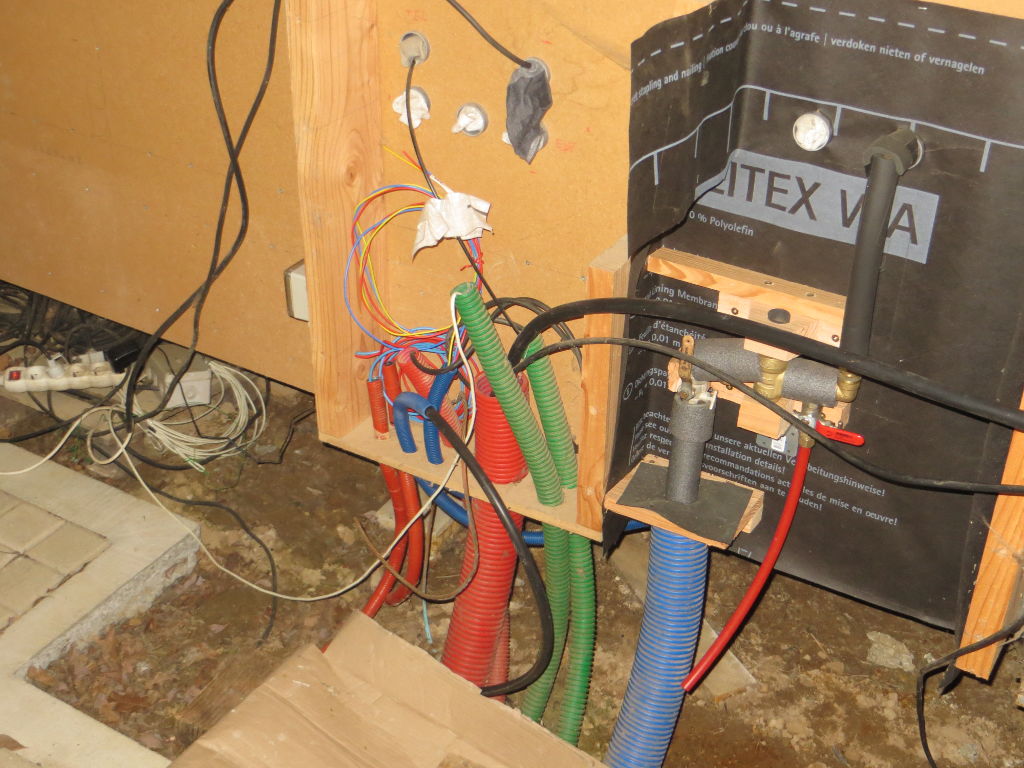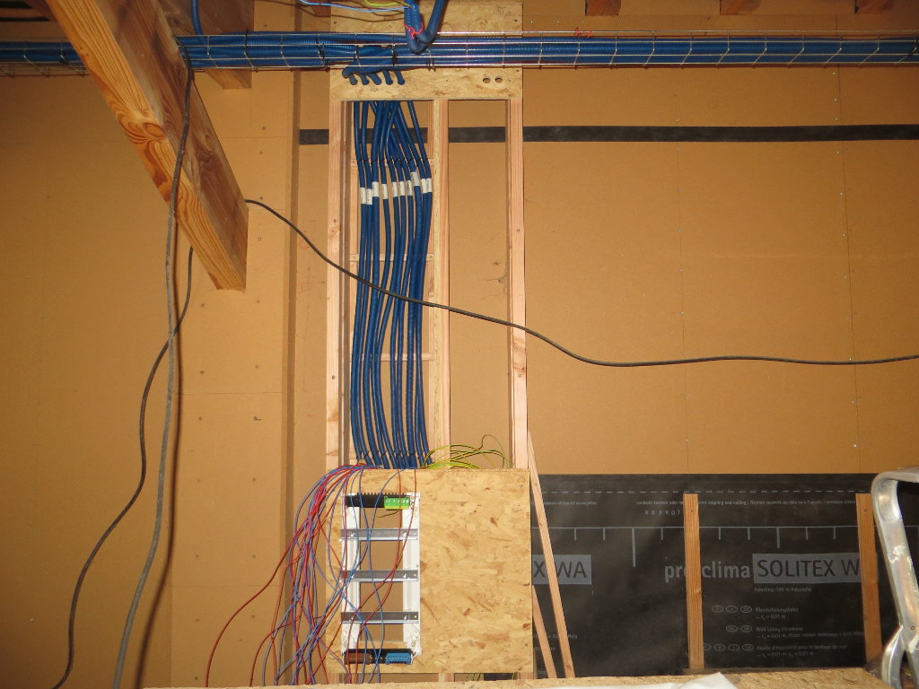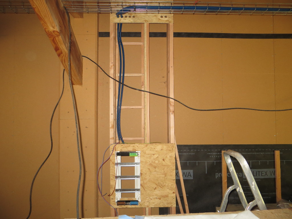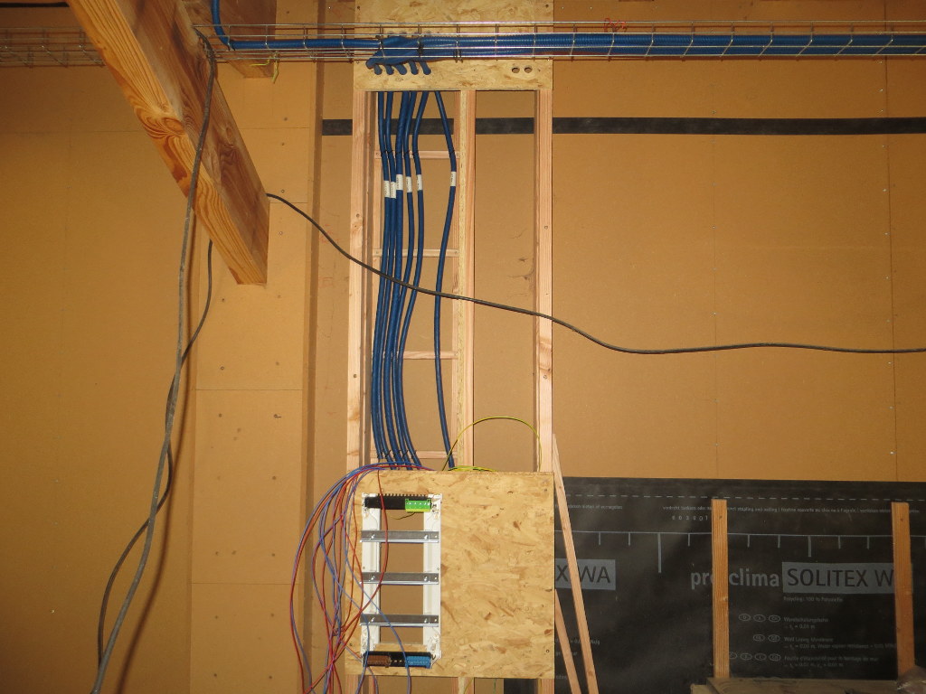 2015/07/04 : Électricité (7) - CâblesMis à jour : 23 novembre 2016 | Imprimer | Affichages : 1833 Passage des gaines et des câbles dans la partie extérieure ... Avancée du travail : Quelques détails :