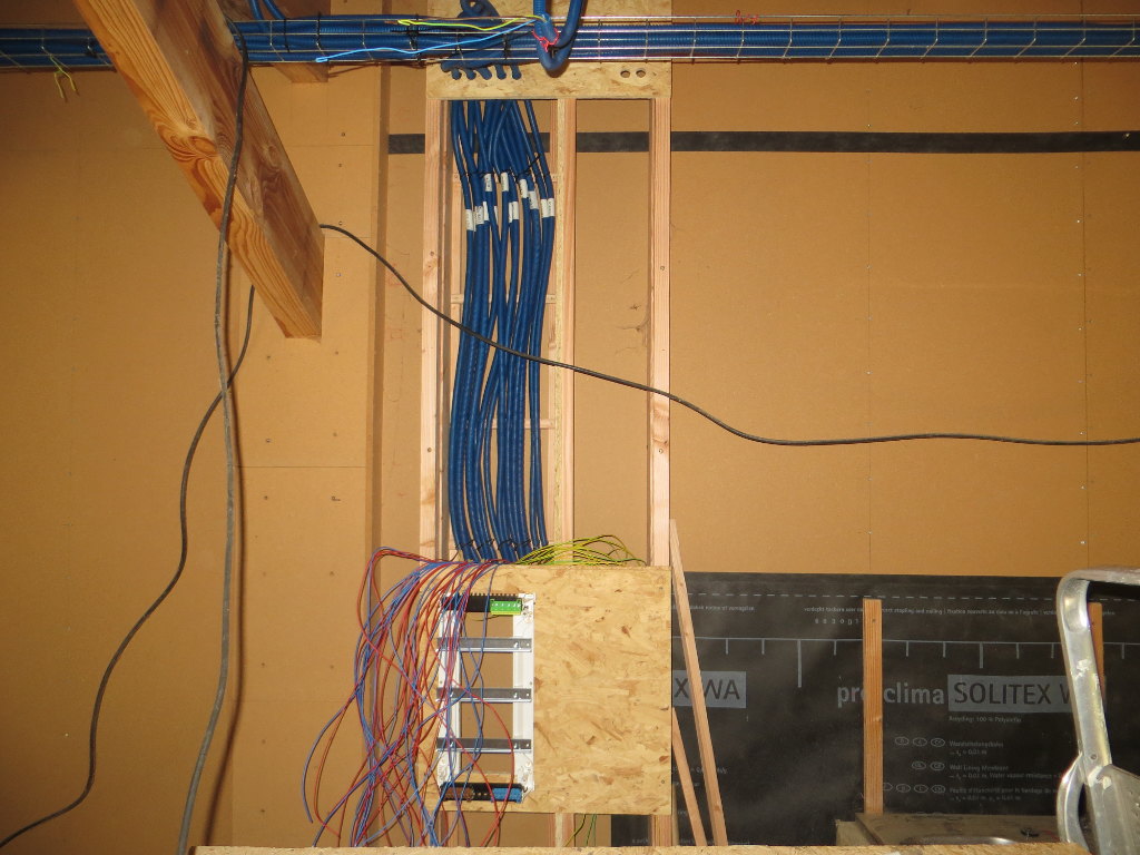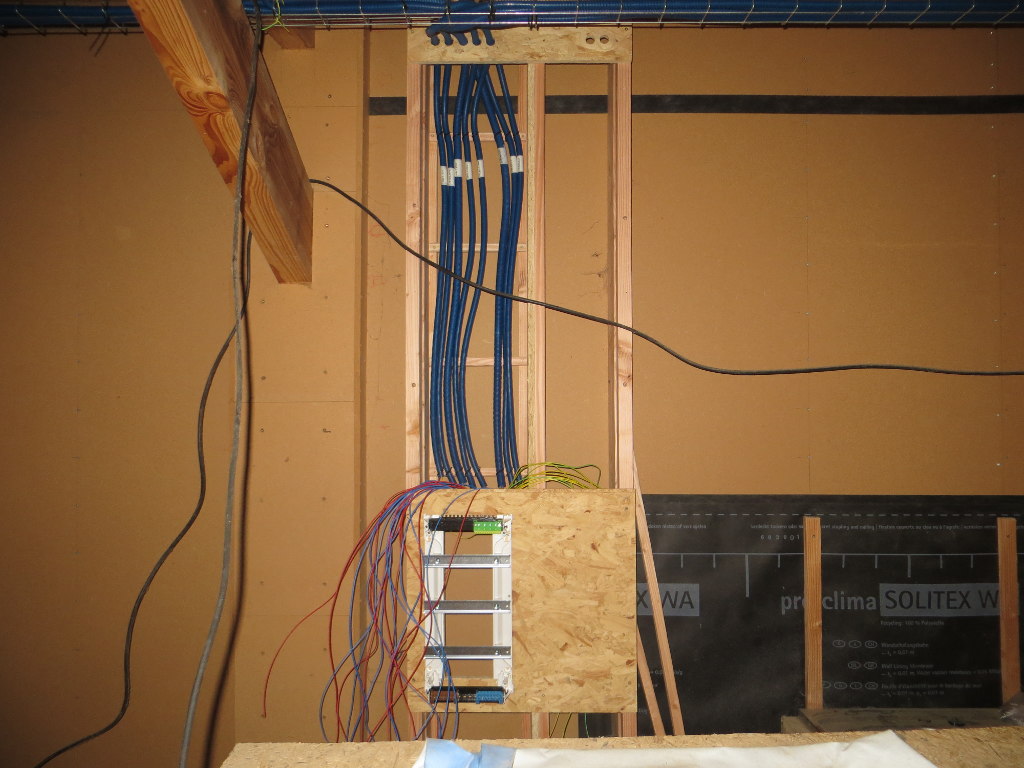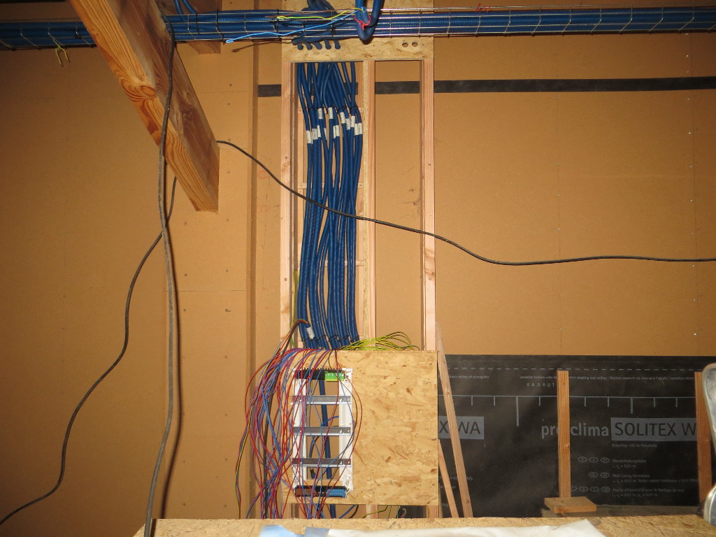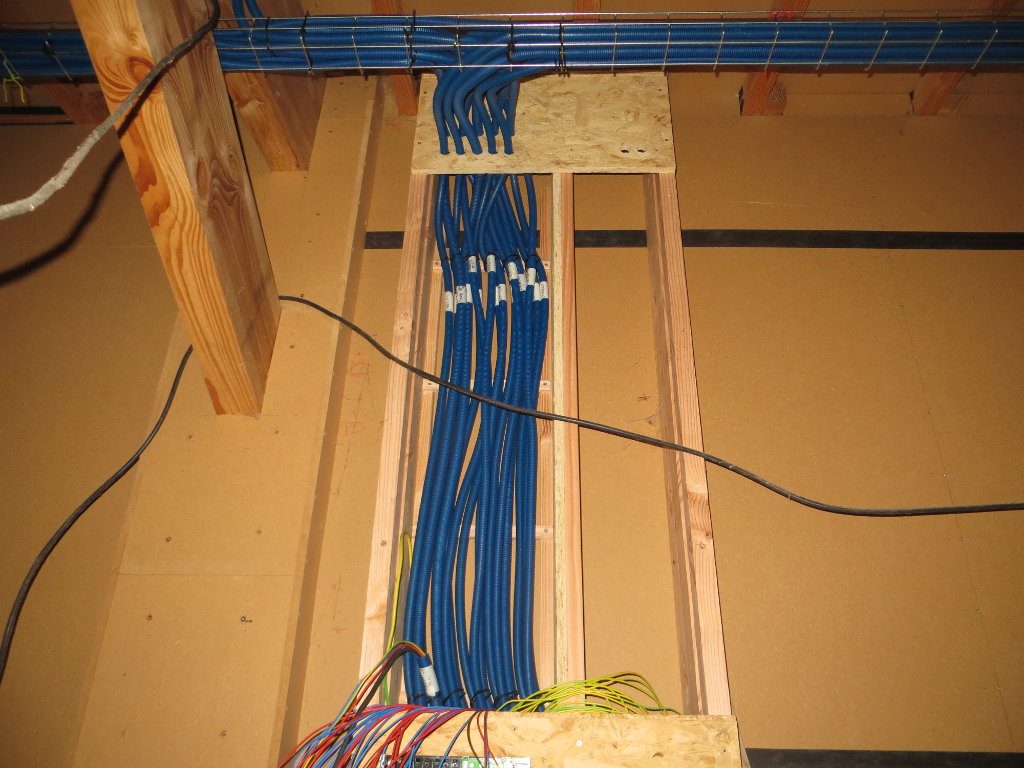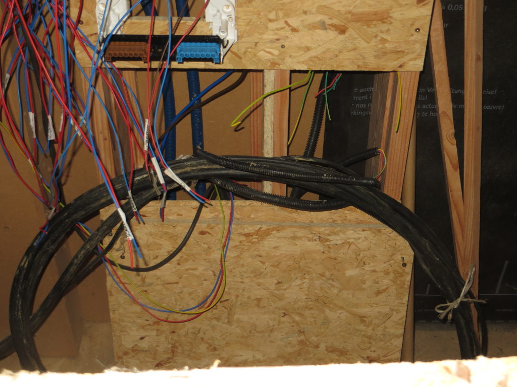 2015/07/04 : Électricité (7) - CâblesMis à jour : 23 novembre 2016 | Imprimer | Affichages : 1833 Passage des gaines et des câbles dans la partie extérieure ... Avancée du travail : Quelques détails :