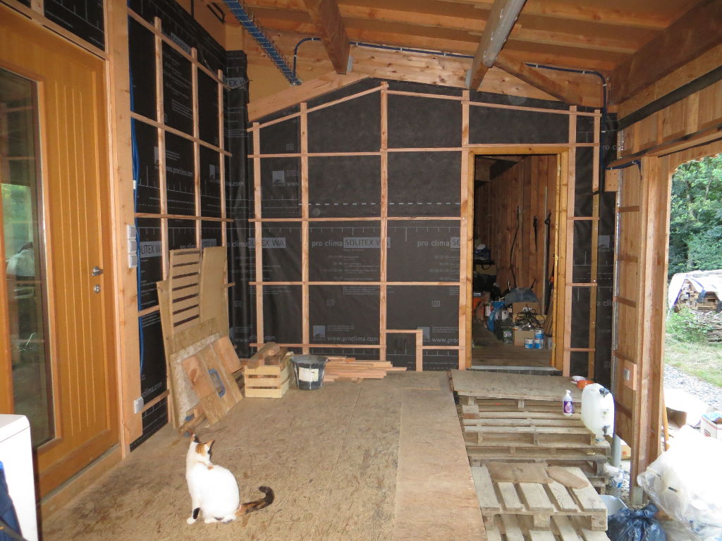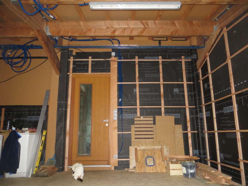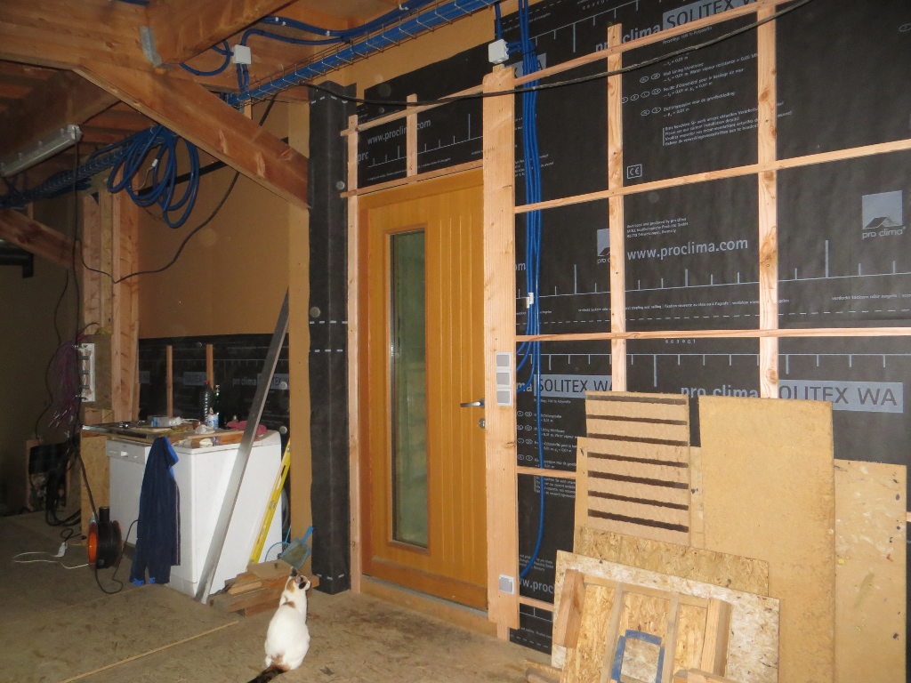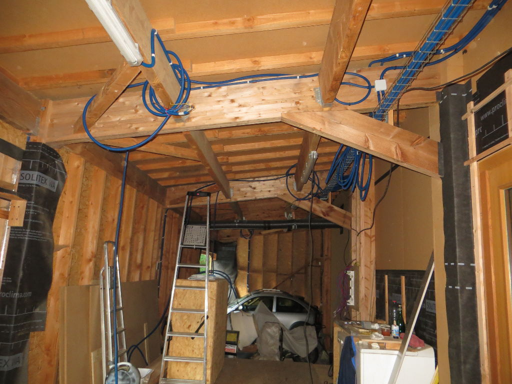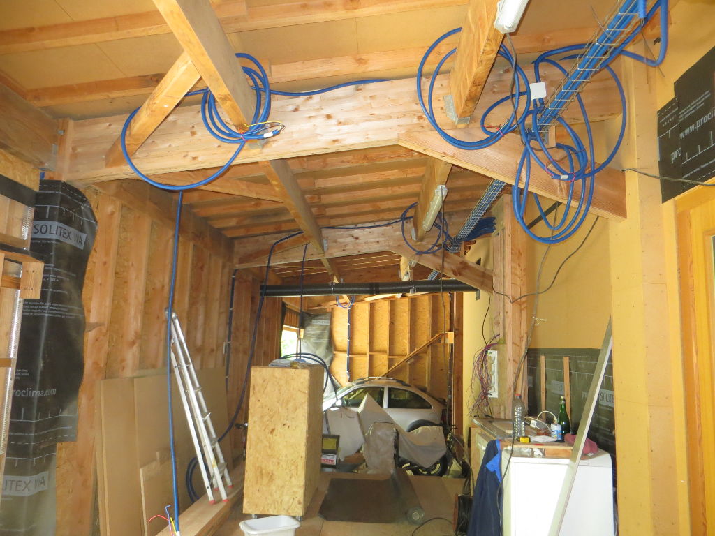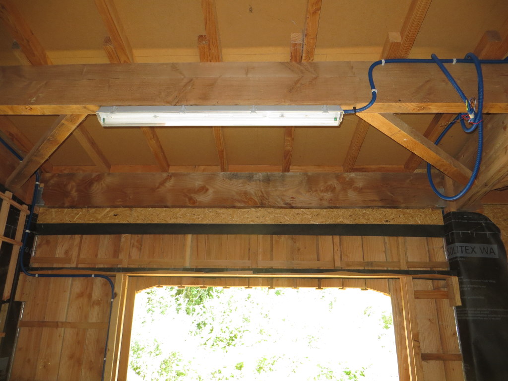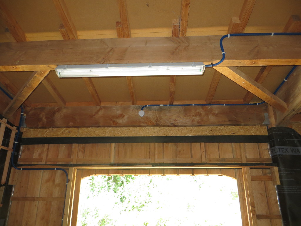 2015/07/11 : Électricité (9) - EntréeMis à jour : 23 novembre 2016 | Imprimer | Affichages : 1770 Pose et raccordement des prises et interrupteurs dans le porche d'entrée ... Avancée du travail : Les gaines : L'éclairage extérieur (13/07/2015) :