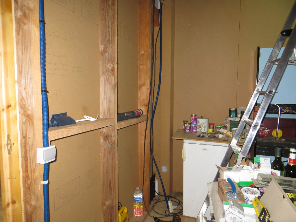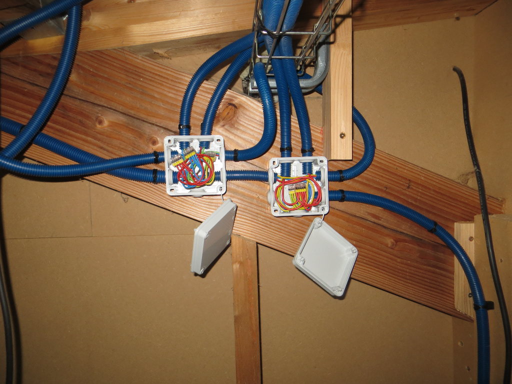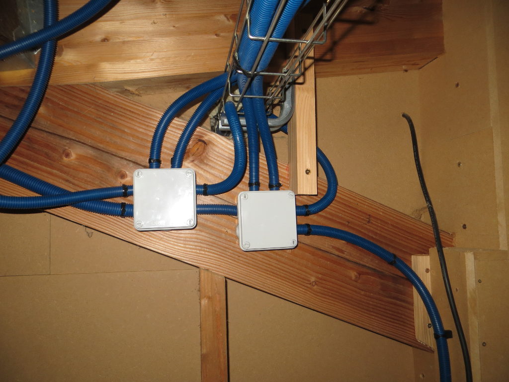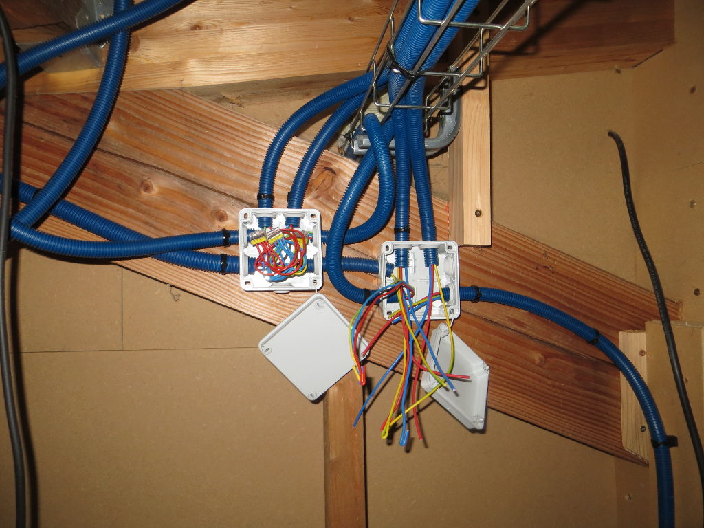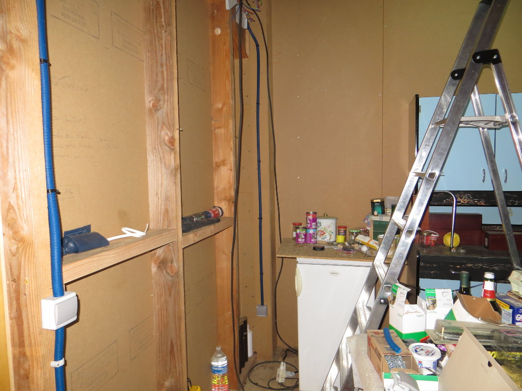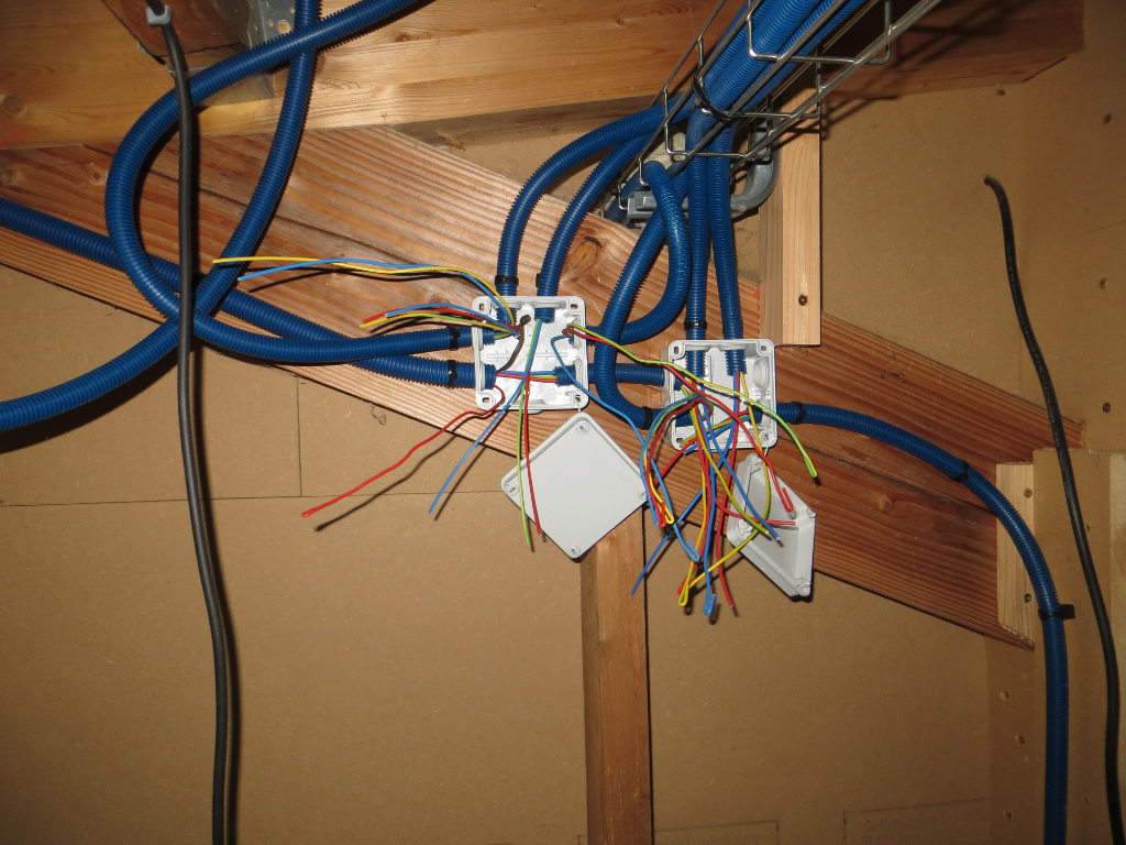 2015/07/21 : Électricité (11) - AtelierMis à jour : 23 novembre 2016 | Imprimer | Affichages : 1848 Dans l'atelier, pose des prises et interrupteurs, raccordement des éclairages ... Avancée du travail : Distribution des prises et des éclairages :