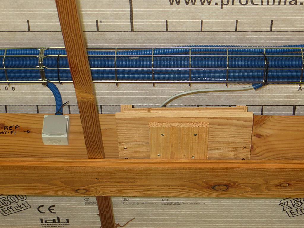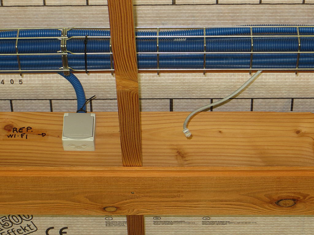 Par contre, j'ai prévu un emplacement (étagère, prise électrique, et prise réseau) dans le faux plafond de la grande salle pour recevoir un futur répéteur WIFI, bien centré dans la maison ...