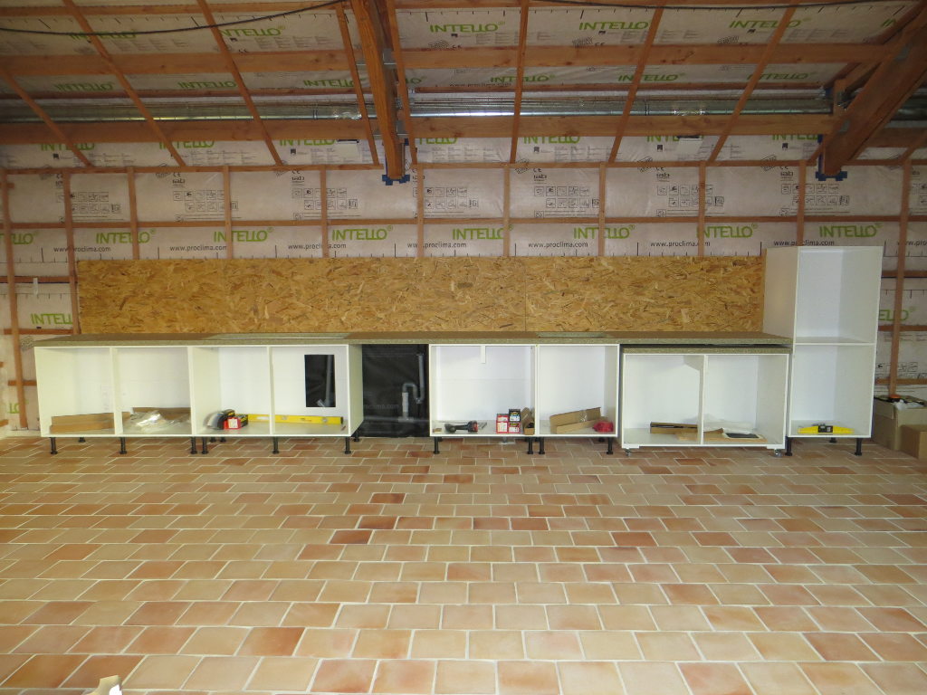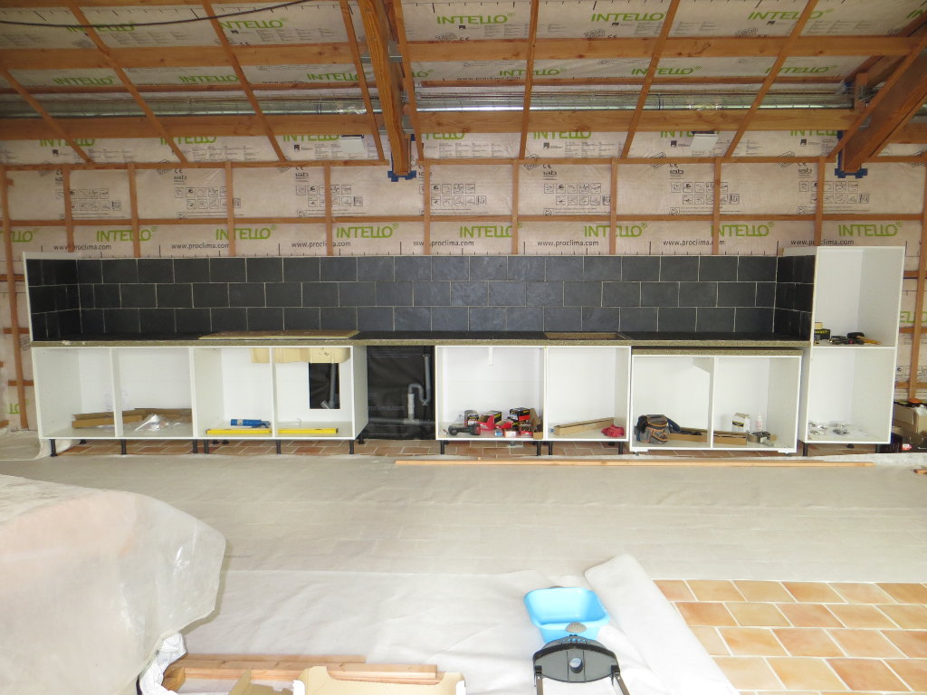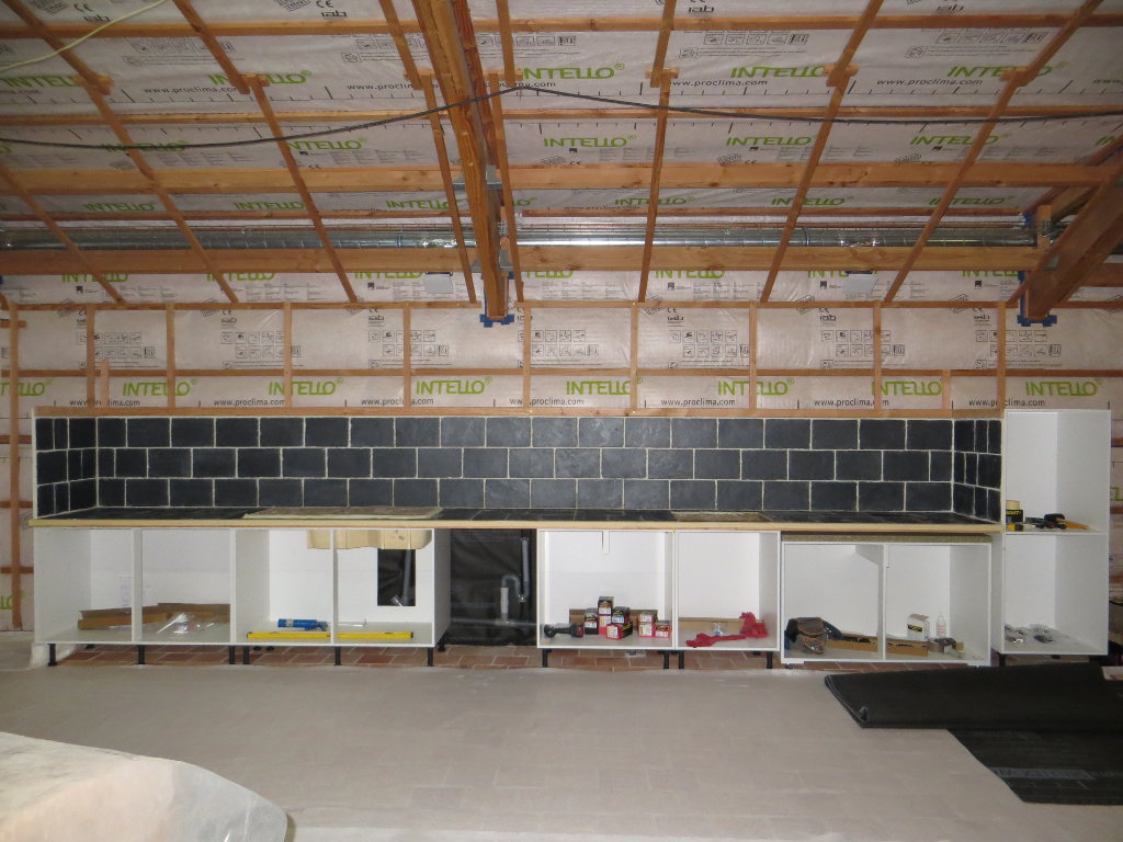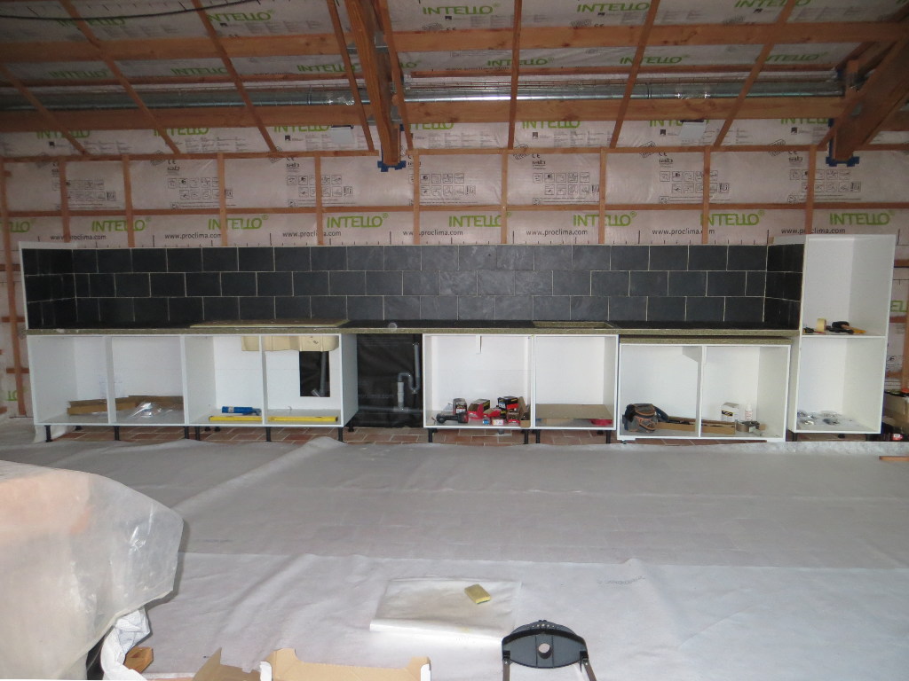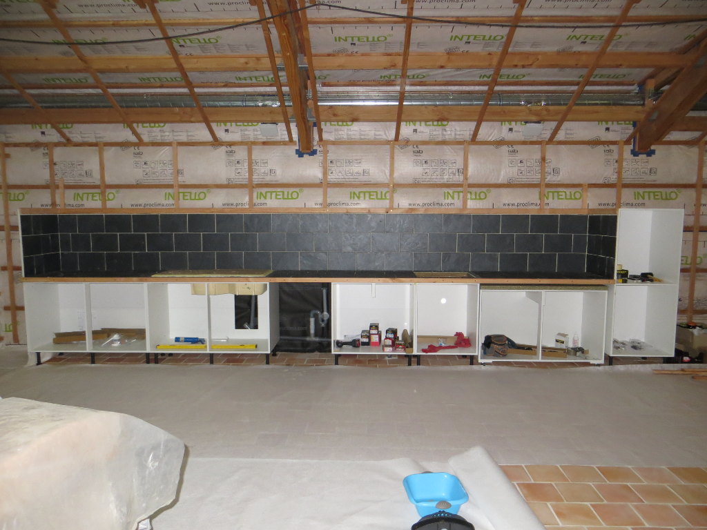J'ai décidé de carreler mon plan de travail avec des ardoises épaisses, obtenues à bon prix, car c'est un reste de chantier.