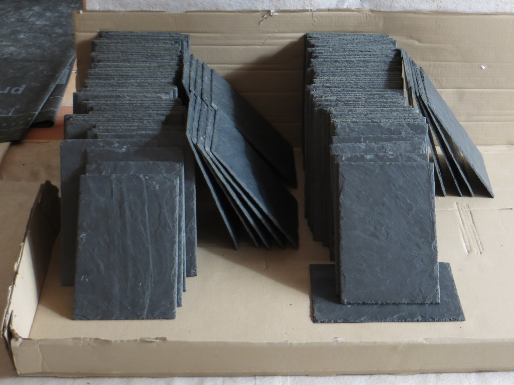Je passe maintenant à la mise en place définitive des ardoises, à la colle à carrelage.