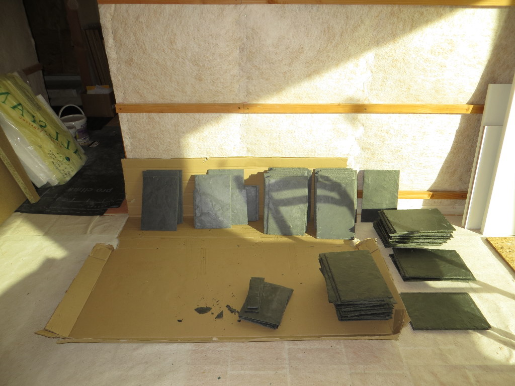 Dans un premier temps, je pense gagner du temps en utilisant du joint à carrelage, mais cela s'avère une catastrophe. Le joint sèche à grande vitesse, que ce soit sur les ardoises ou l'outillage, et le nettoyage est très laborieux.