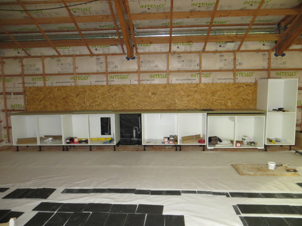 Mise en place de bordures, sur le champ du plan de travail, et en haut de crédence.