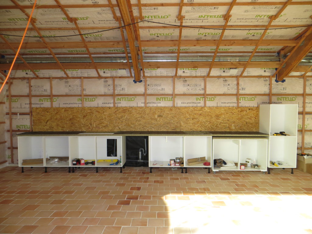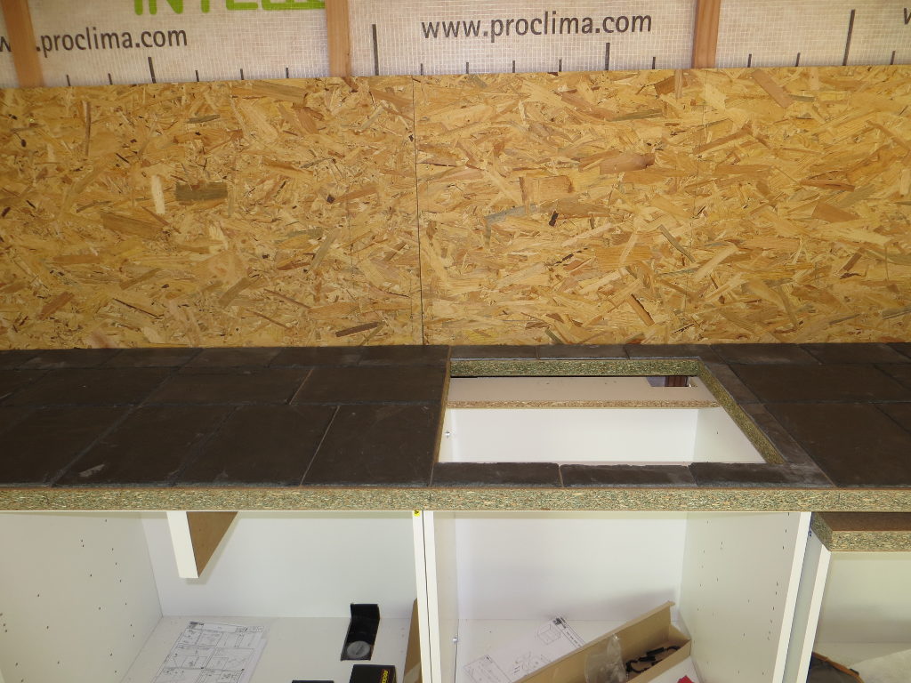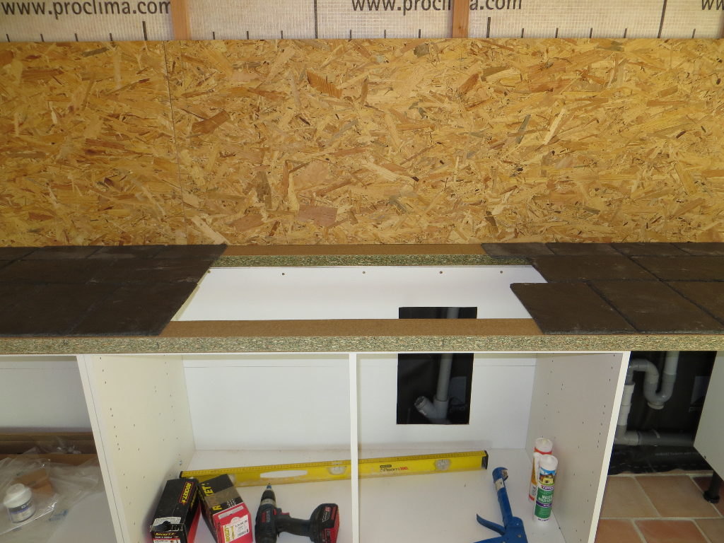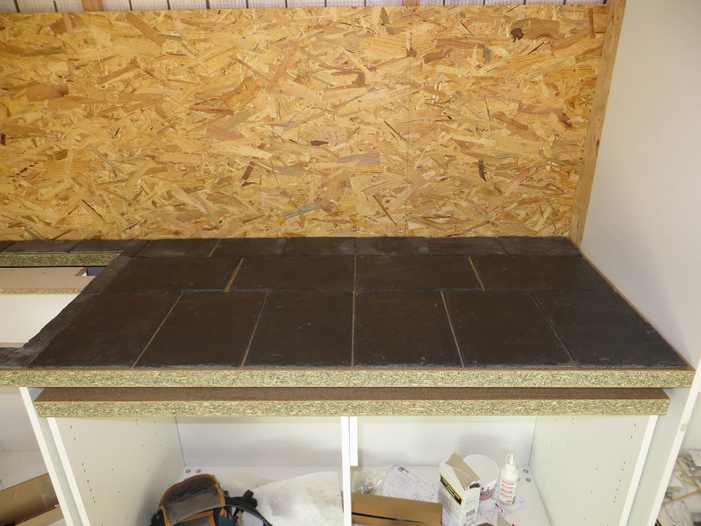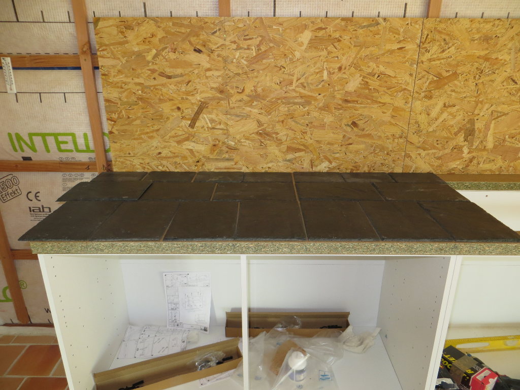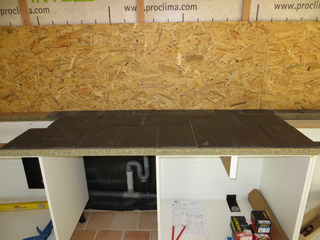 J'ai décidé de carreler mon plan de travail avec des ardoises épaisses, obtenues à bon prix, car c'est un reste de chantier.