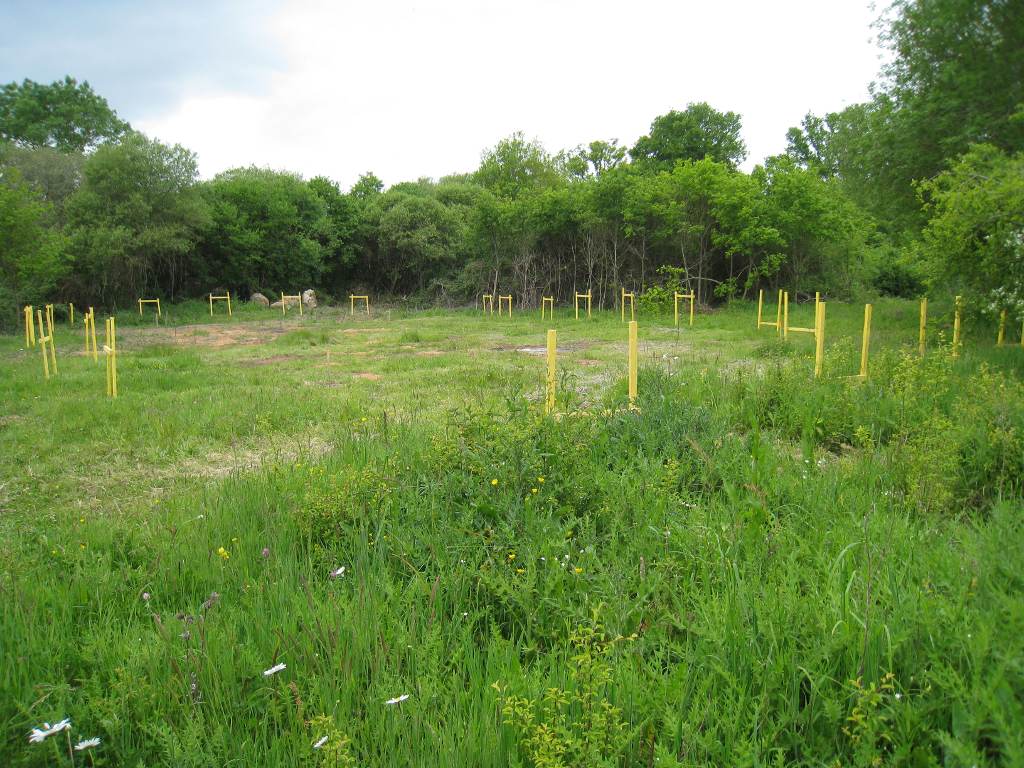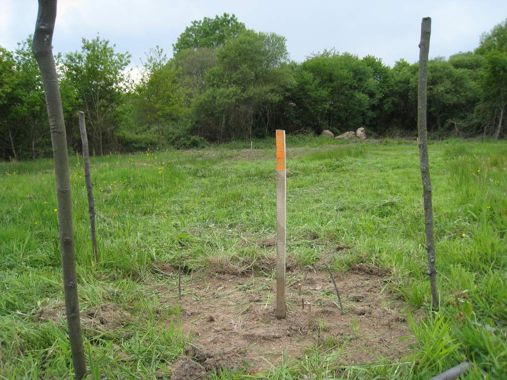 Deux bornes, l'une sur le terrain, l'autre en limite de propriété, vont servir de références.