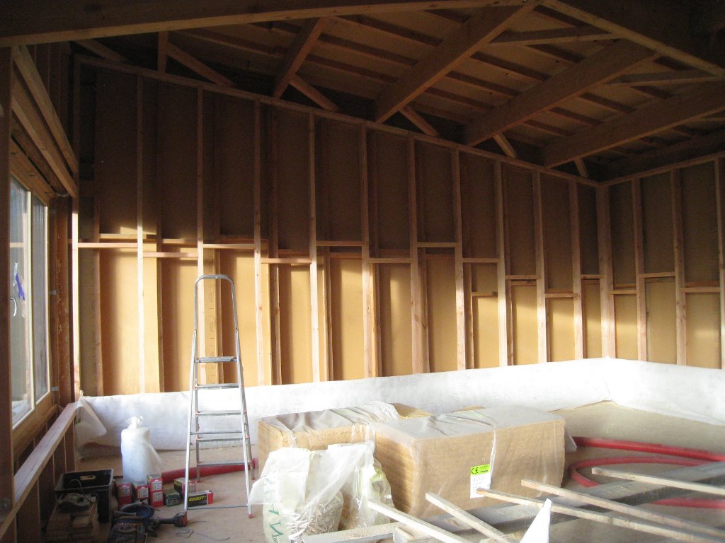 Nous commençons l'isolation par les murs Est, et Nord jusqu'à la porte d'entrée.
