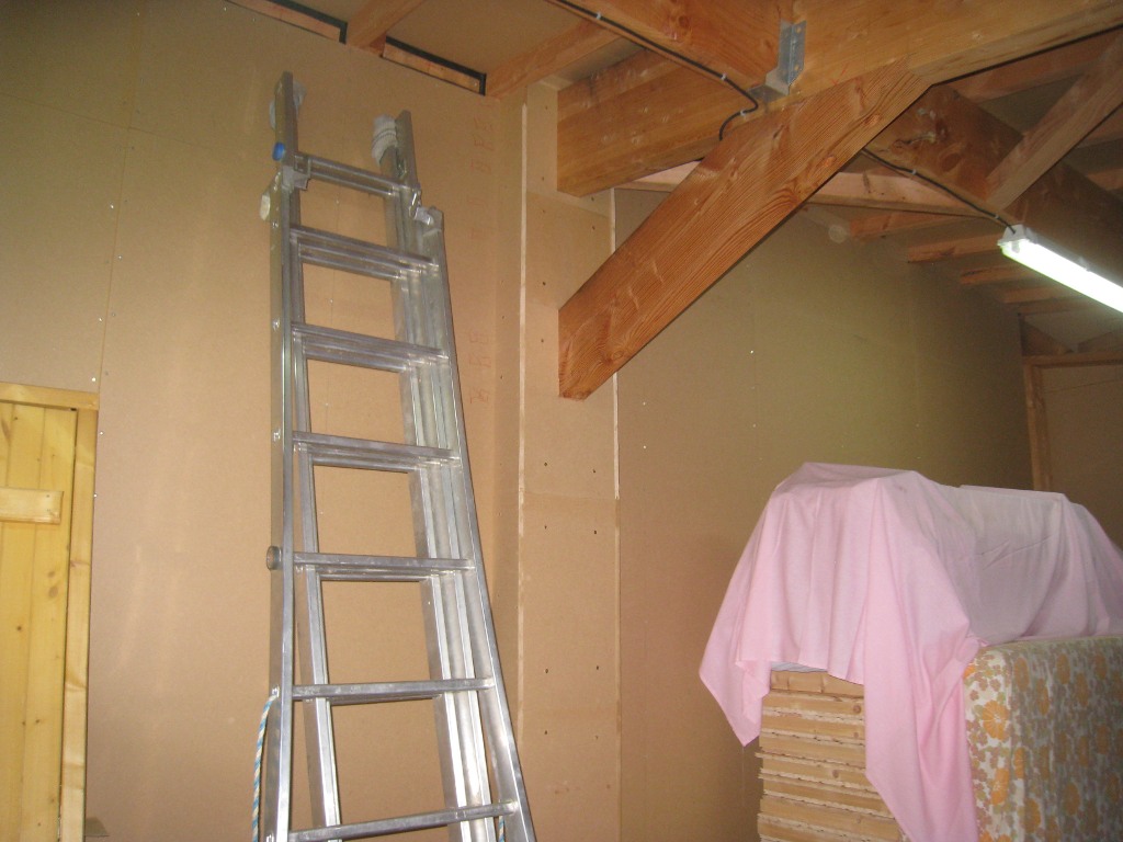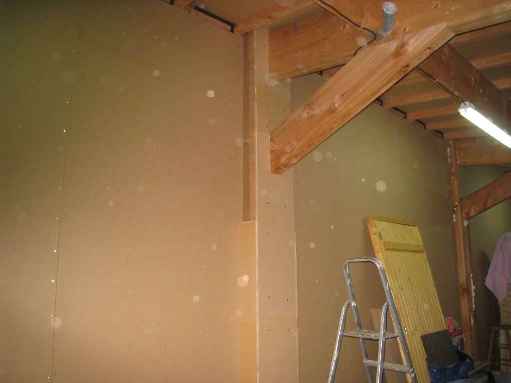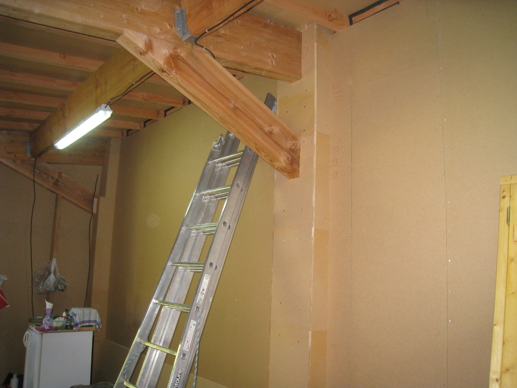 2012/06/19 : Isolation (13)Mis à jour : 24 février 2016 | Imprimer | Affichages : 1926Il me restait en fait un peu d'isolation à faire. Dans l'atelier, les poteaux moisés des fermes recoivent une isolation complémentaire par l'extérieur. Le poteau côté entrée : Les deux autres poteaux : Précédent Suivant