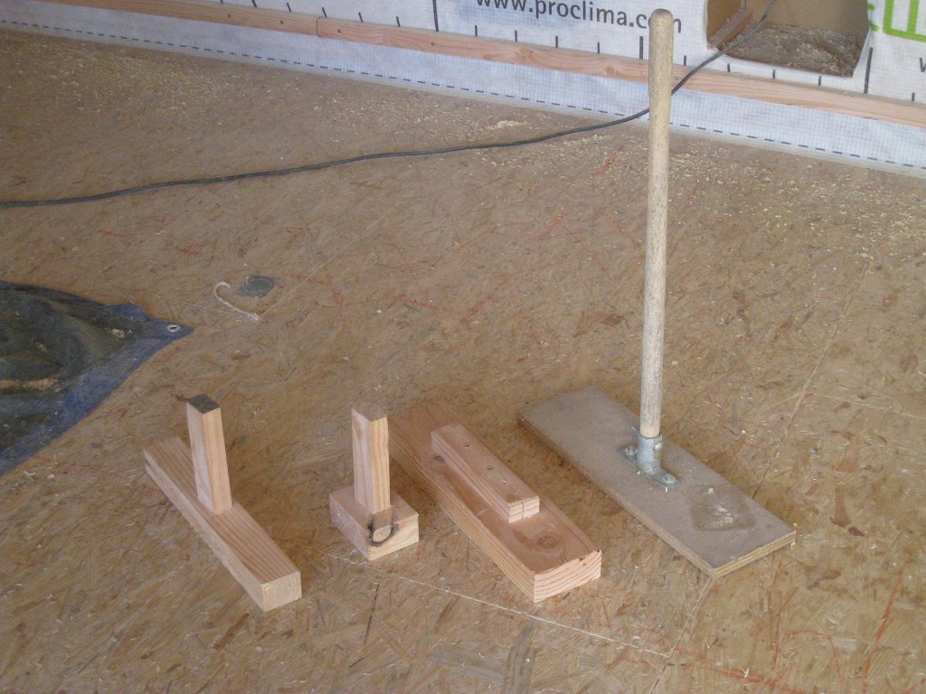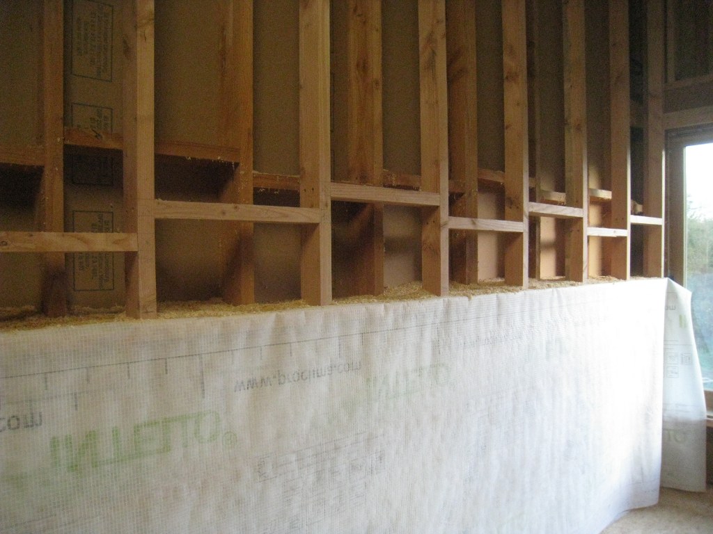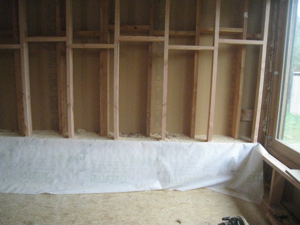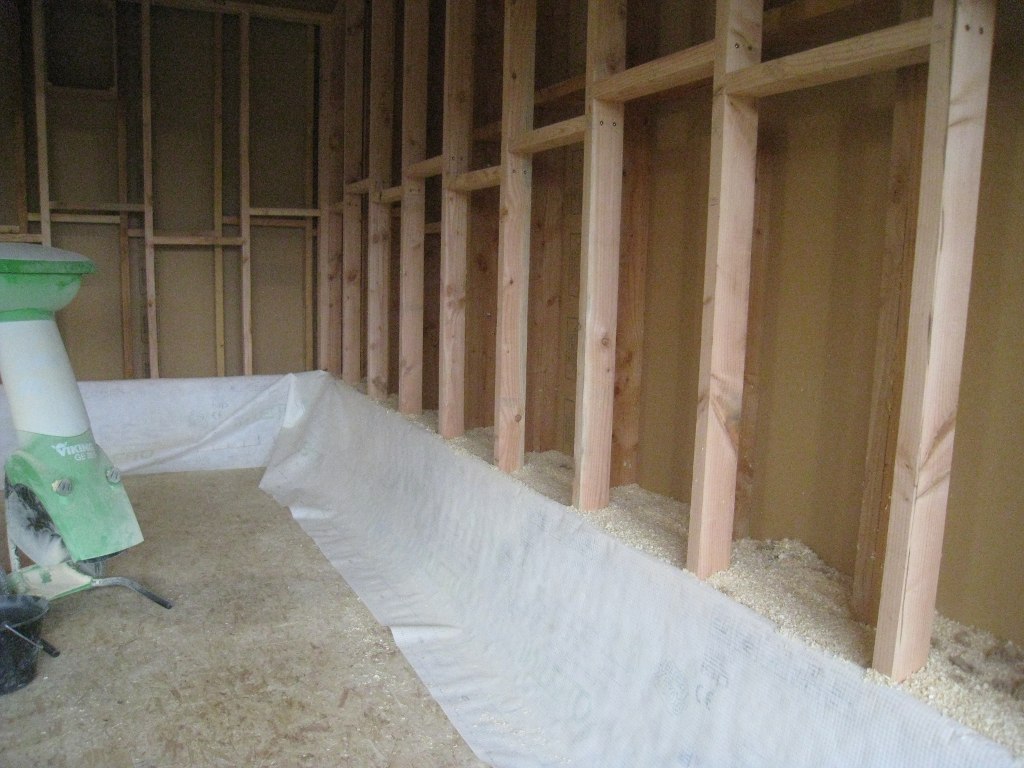 D'abord le pied de mur, entre les lisses basses des ossatures principale et intérieure :