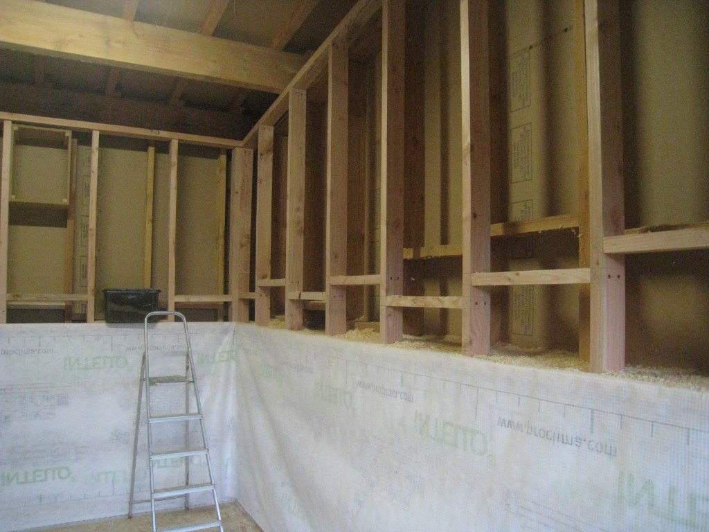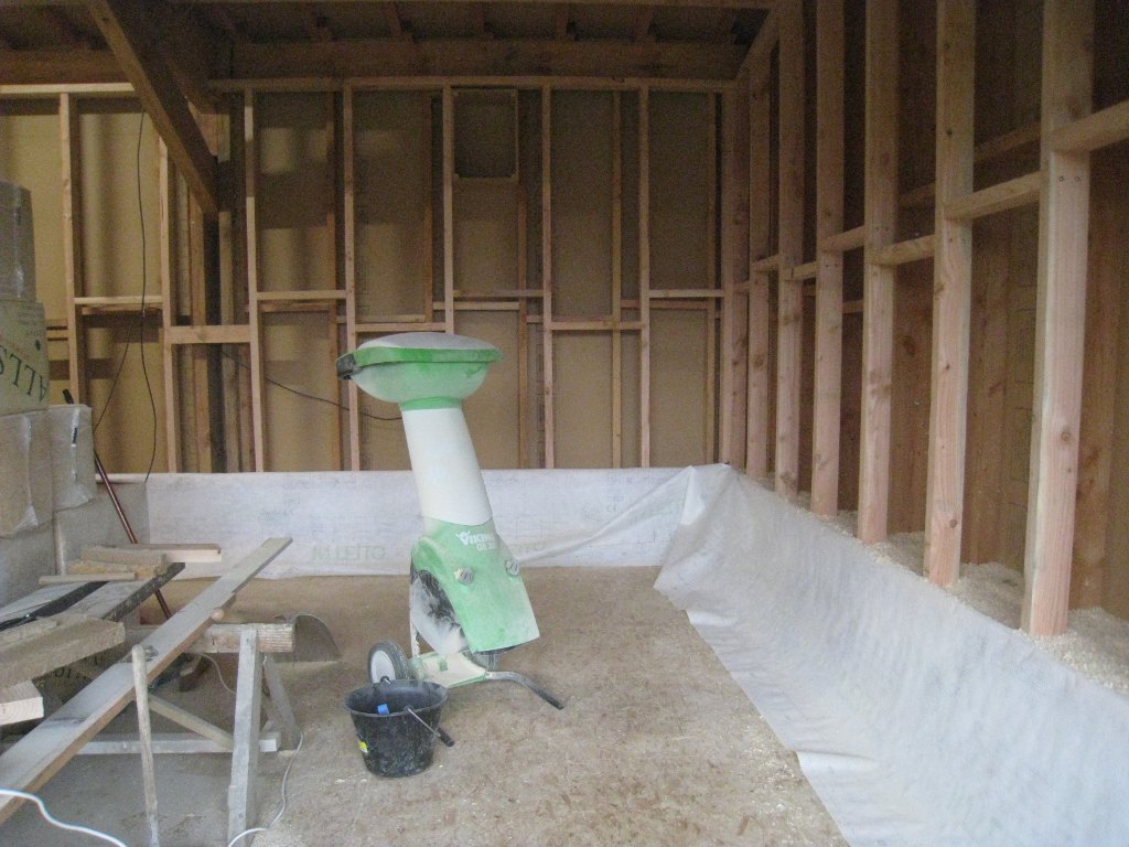 Nous commençons l'isolation par les murs Est, et Nord jusqu'à la porte d'entrée.
