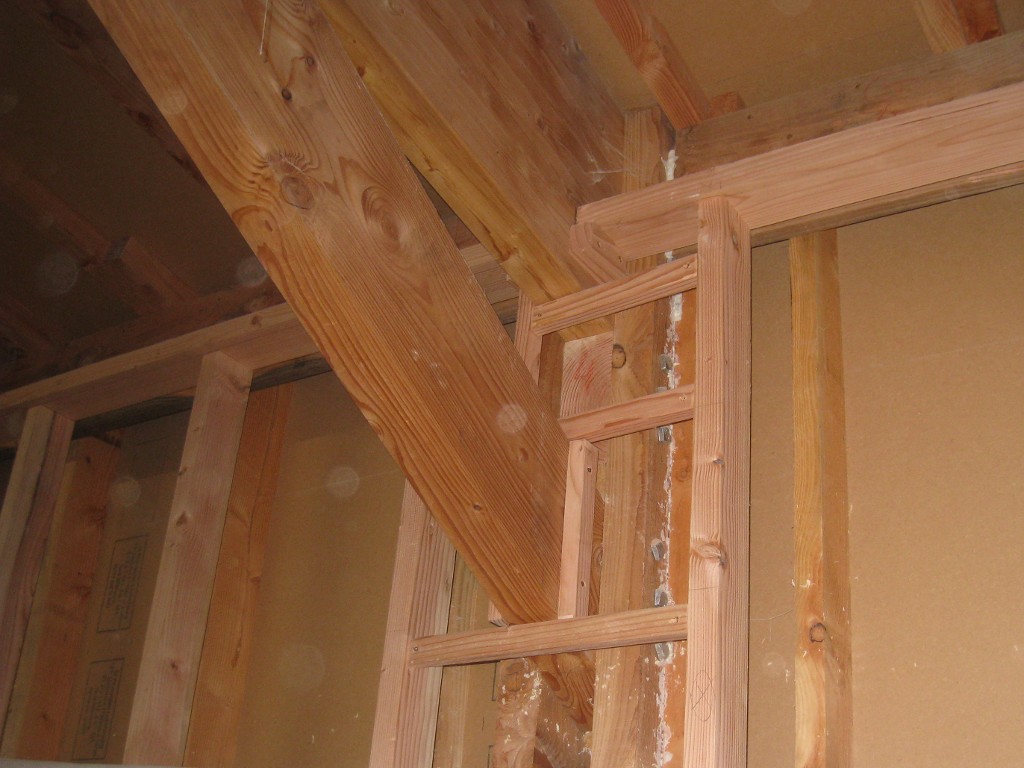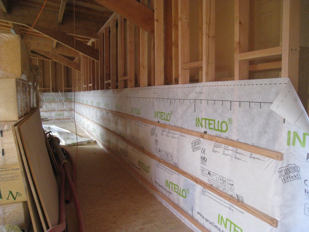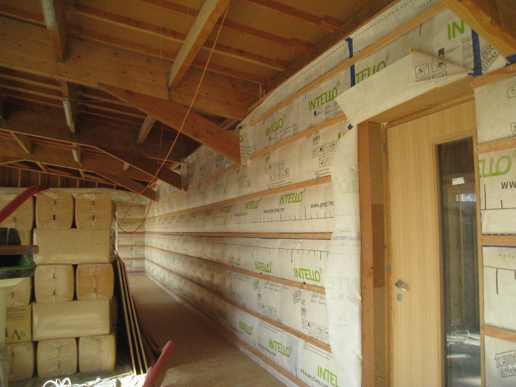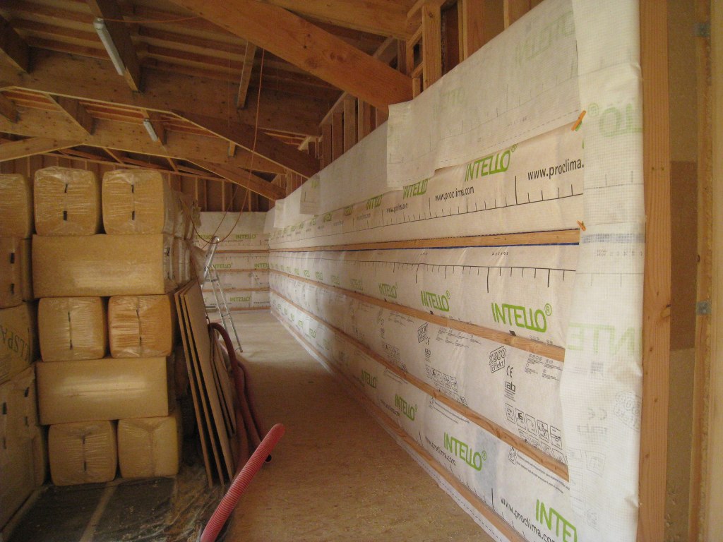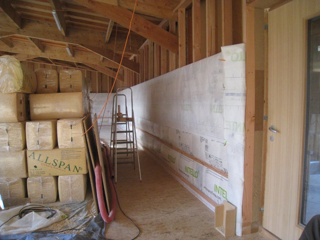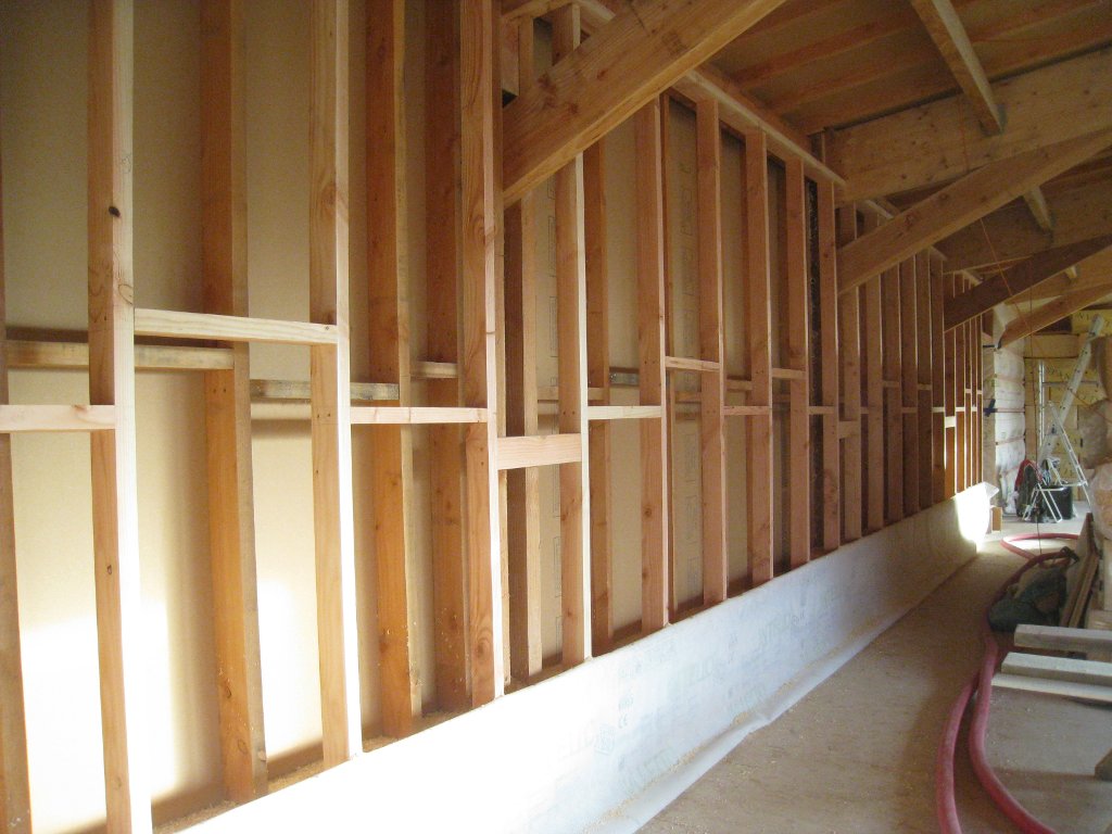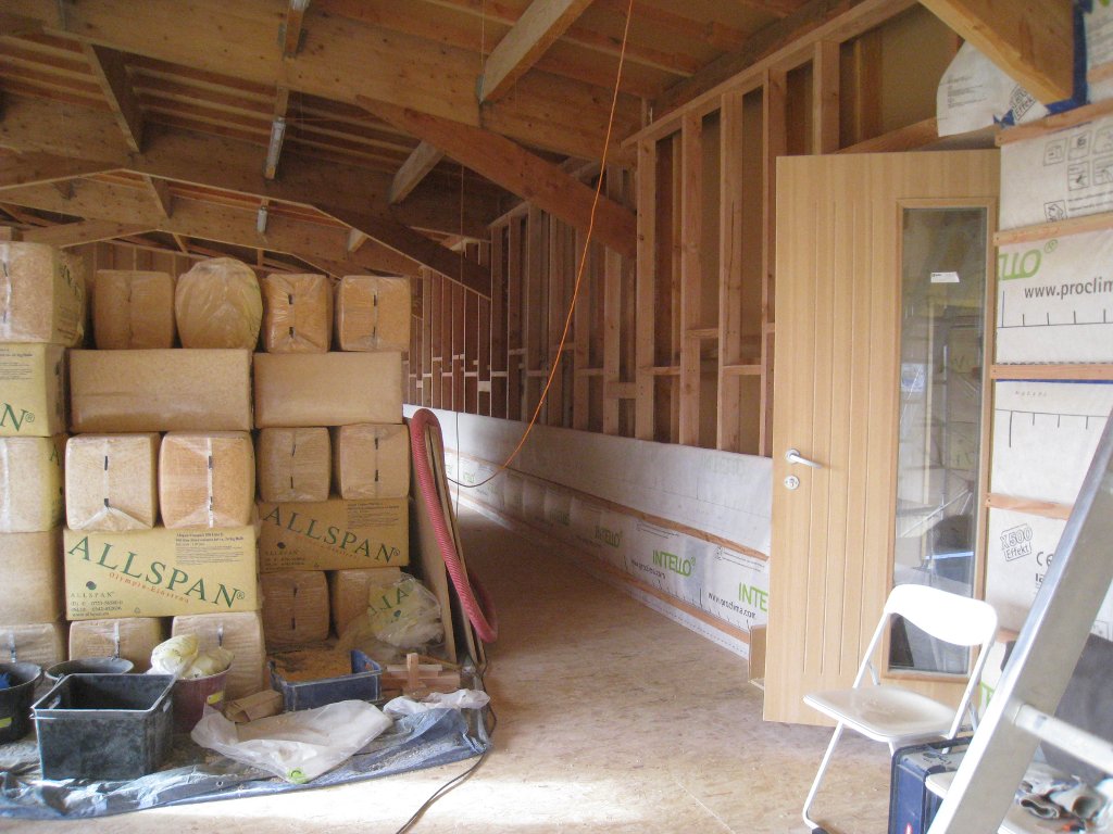 2012/02/04 : Isolation (8)Mis à jour : 24 février 2016 | Imprimer | Affichages : 2434Isolation des murs Nord et Ouest : Après deux petites semaines de repos, nous reprenons l'isolation des murs : Le travail sur les murs progresse plus vite que le plafond : Détail du traitement d'une jambe de force :
