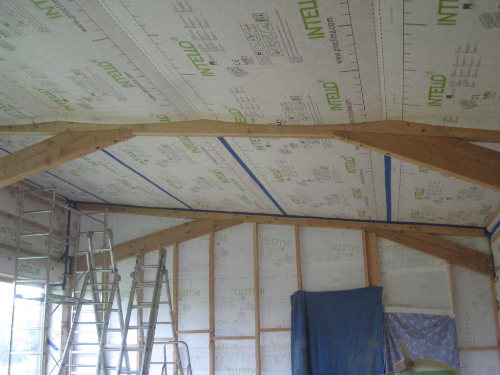 Finition de l'étanchéité à l'air du plafond en travée n°T2.