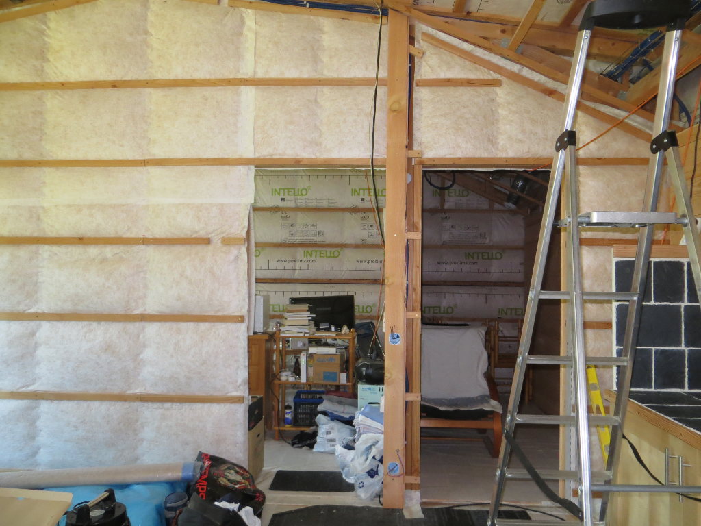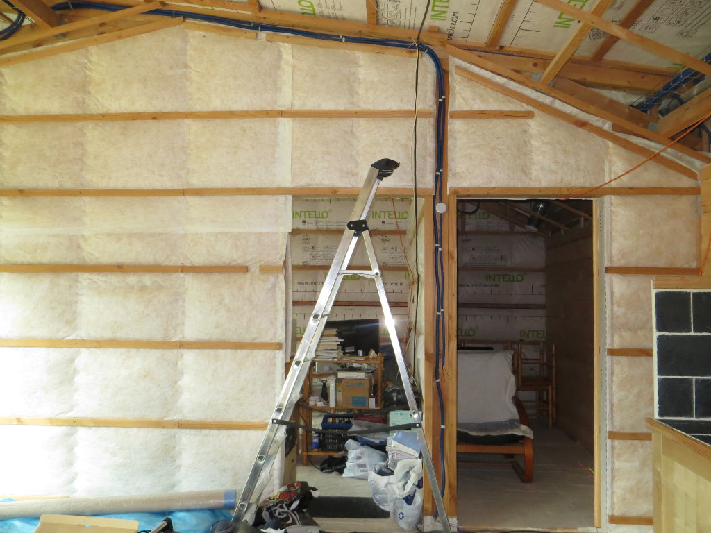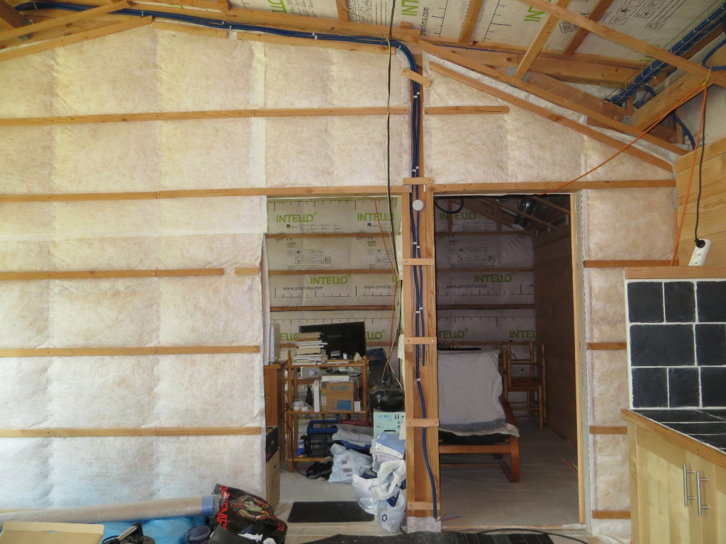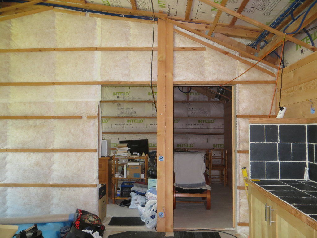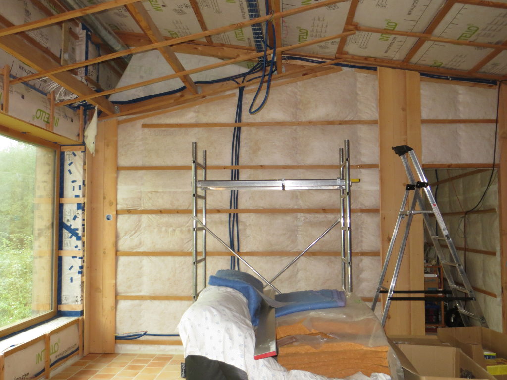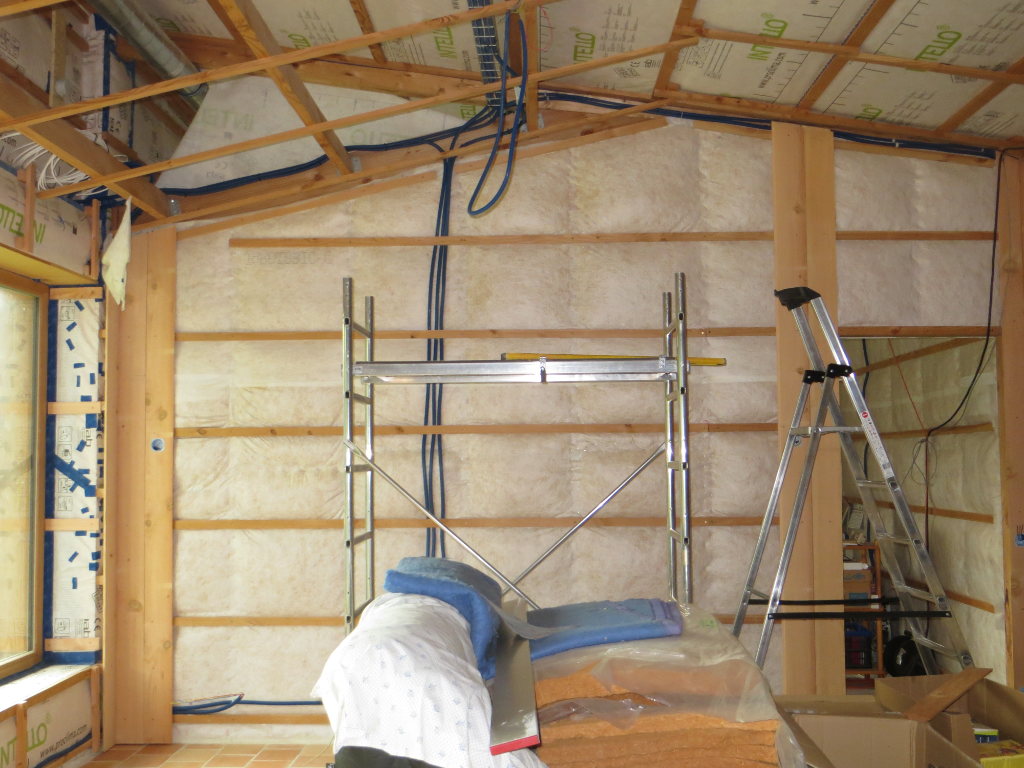 2015/08/17 : Lambris (12) - Grande salle (e-)Mis à jour : 27 novembre 2016 | Imprimer | Affichages : 1814 Dans la grande salle (mur Ouest), pose du lambris aux emplacements des prises et interrupteurs ... En détail : Espace entre l'arrière-cuisine et la chambre n°1 : Sous la baie fixe : Précédent Suivant