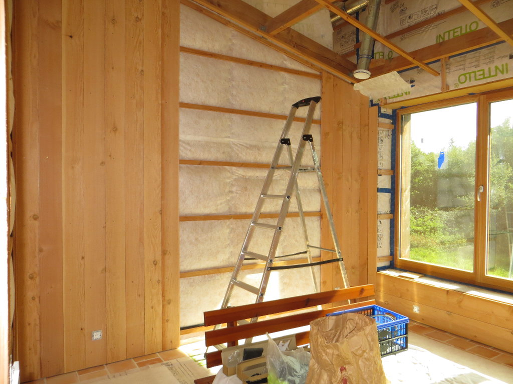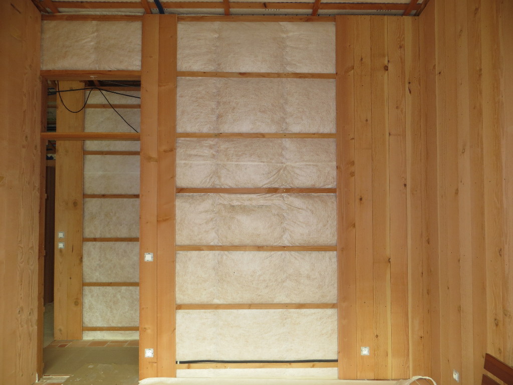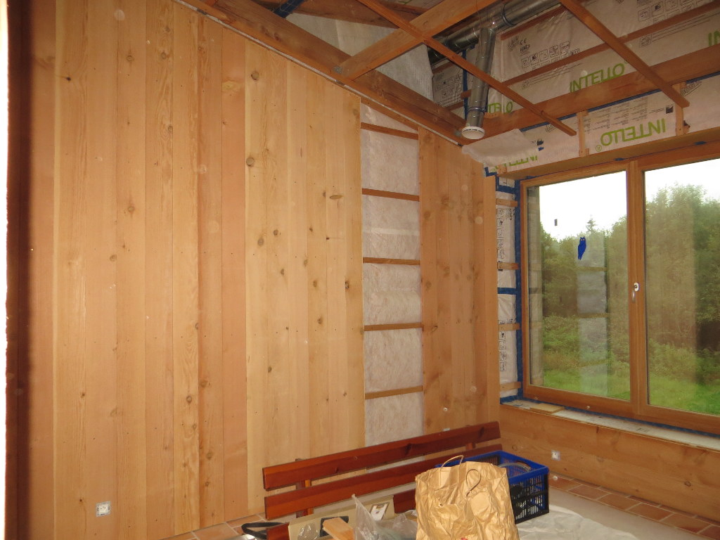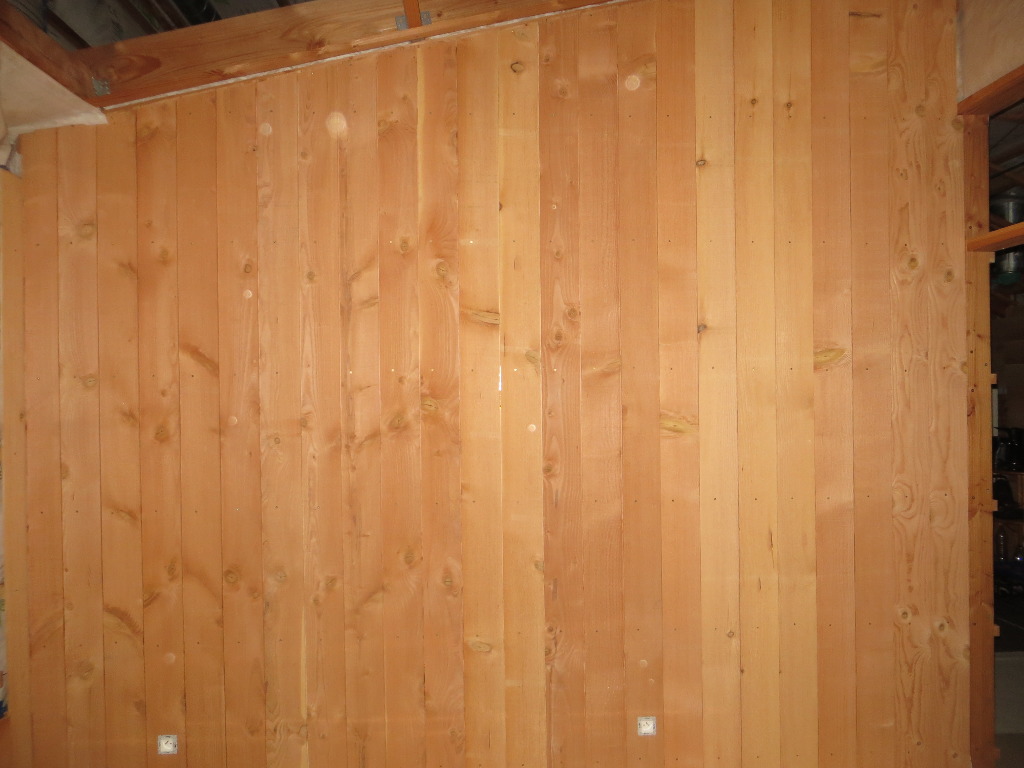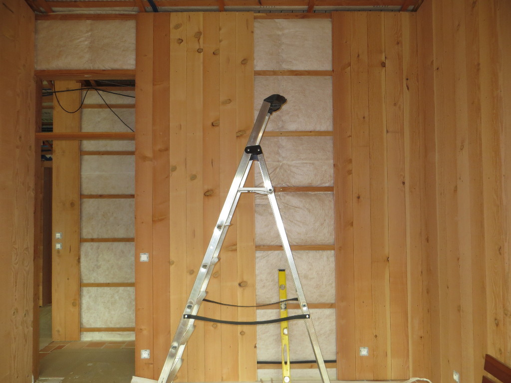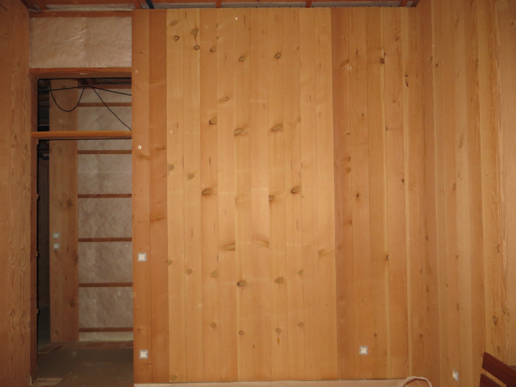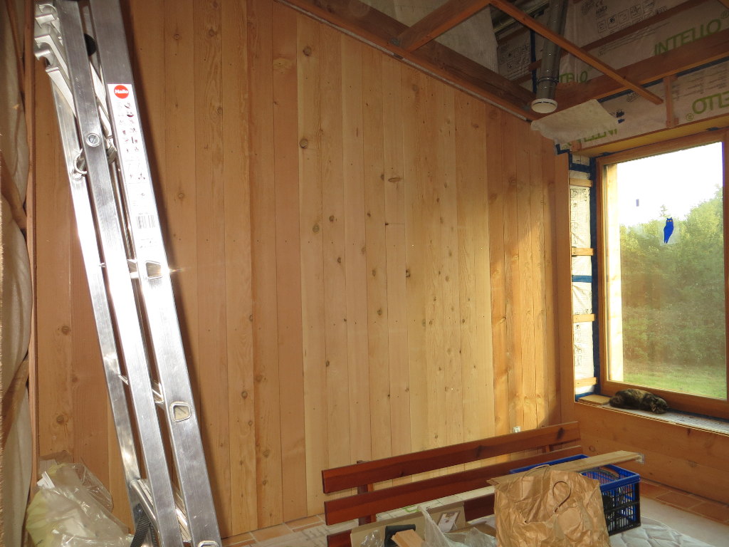 2015/10/17 : Lambris (18) - Chambre n°2 (murs)Mis à jour : 27 novembre 2016 | Imprimer | Affichages : 2057 Dans la chambre n°2, fin de la pose du lambris sur les murs : Sur le mur Est : Sur le mur Ouest : Sur le mur Nord : Il reste l'encadrement de la fenêtre, et le plafond ... Précédent Suivant