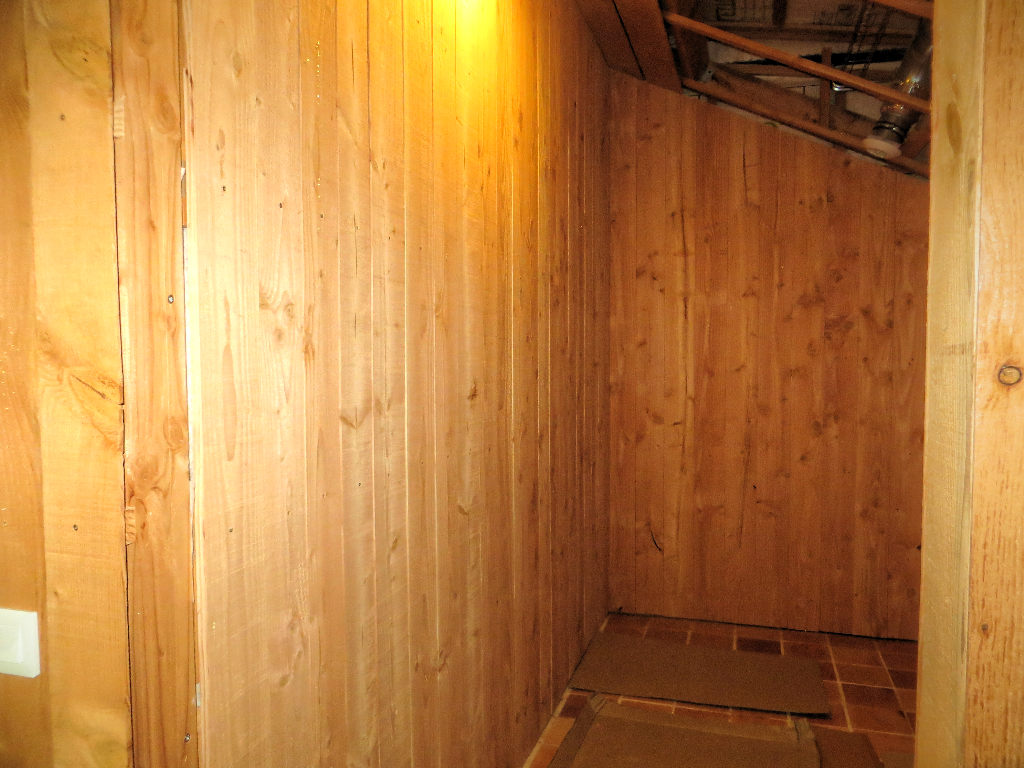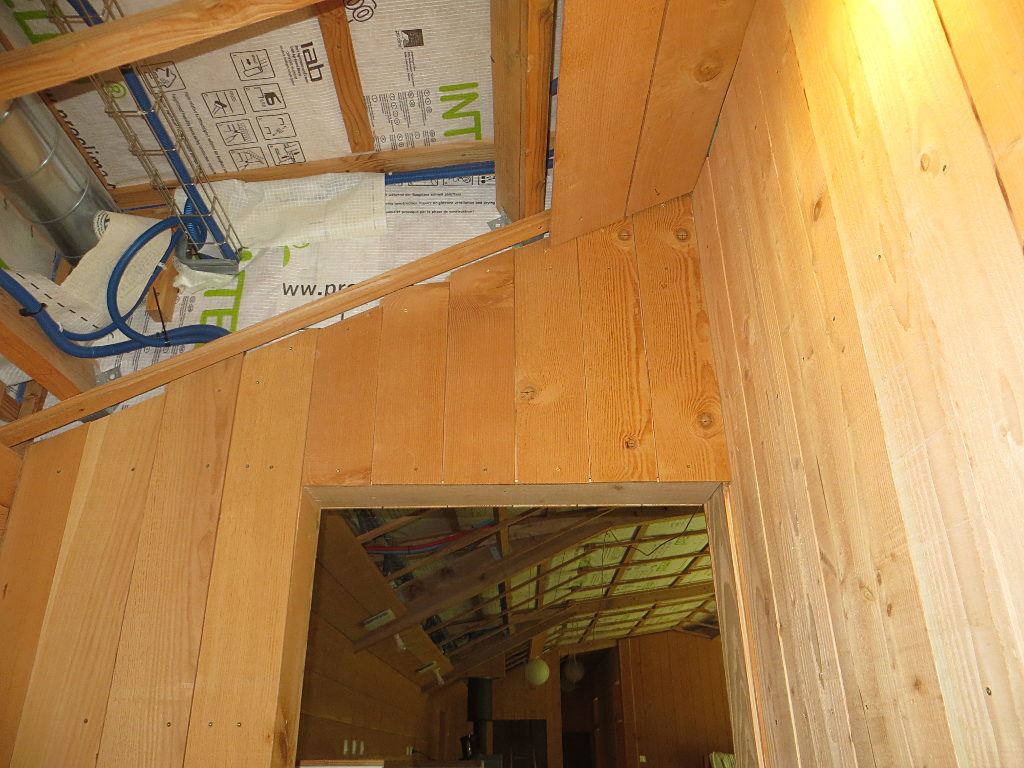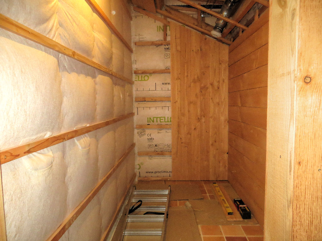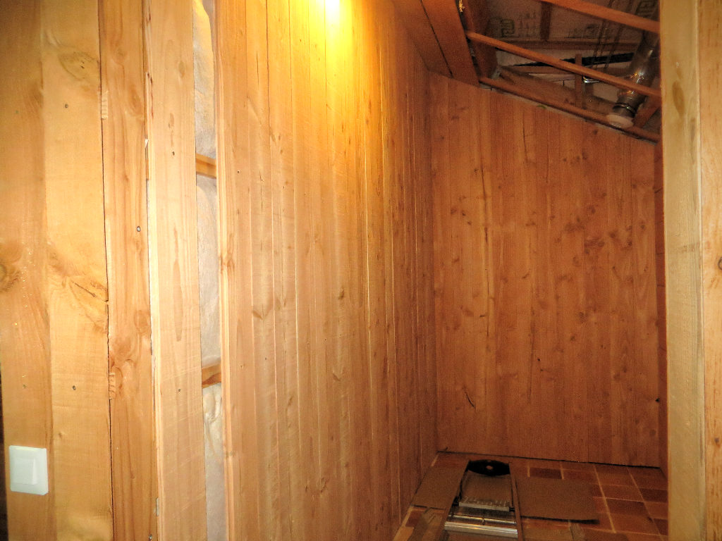 2018/07/27 : Lambris (22) - Arrière-cuisine (murs)Mis à jour : 9 septembre 2018 | Imprimer | Affichages : 1272 Dans l'arrière-cuisine, fin de la pose du lambris sur les murs ... Sur le mur Ouest : Sur le mur Sud : L'encadrement de la porte : Le reste de mur au dessus de la porte : Précédent Suivant
