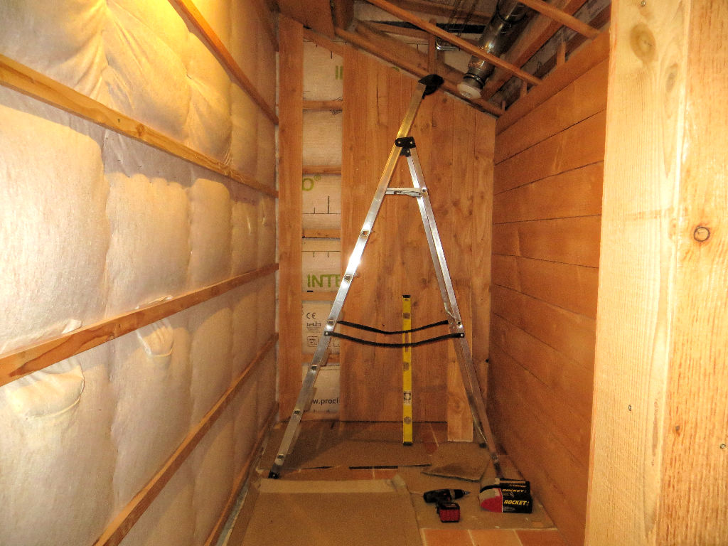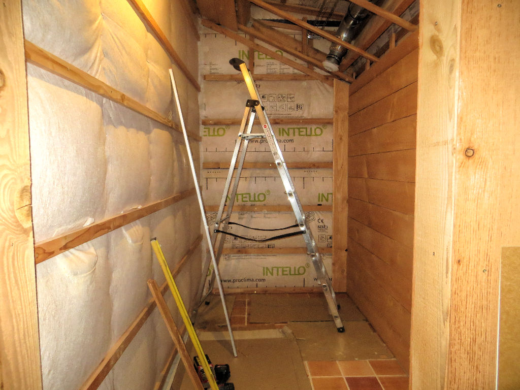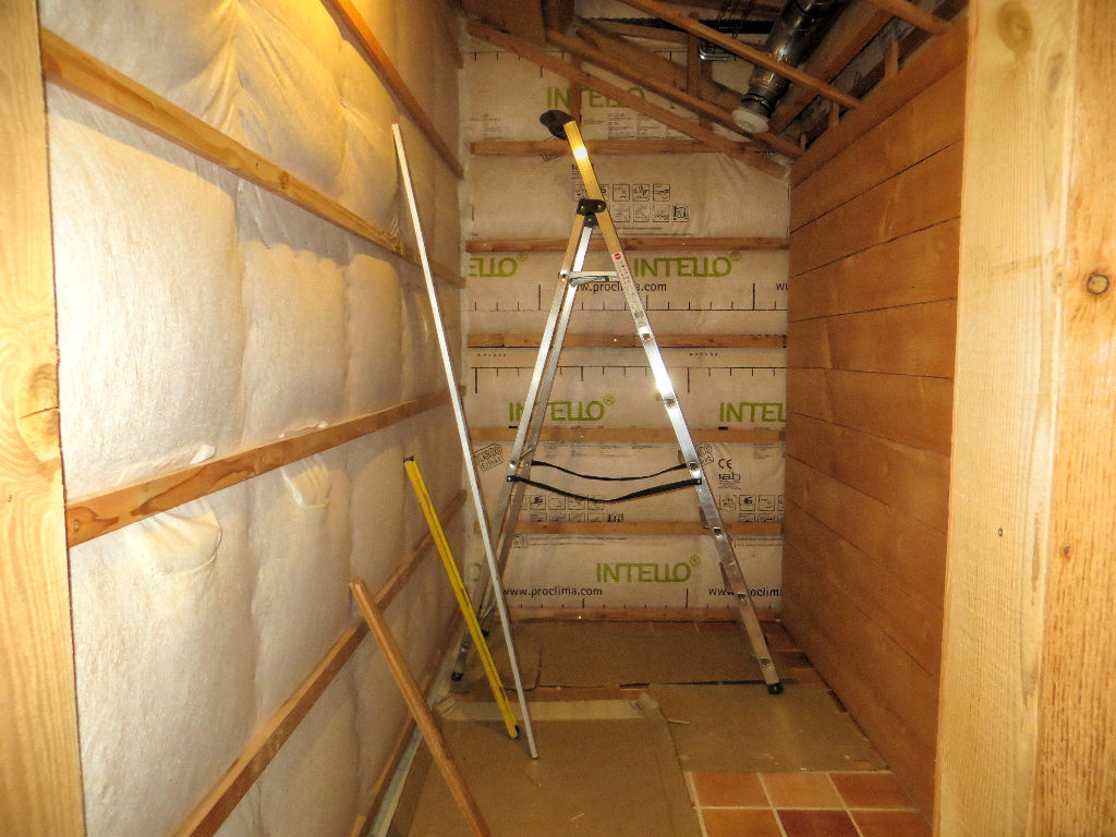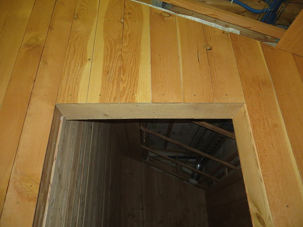 2018/07/27 : Lambris (22) - Arrière-cuisine (murs)Mis à jour : 9 septembre 2018 | Imprimer | Affichages : 1272 Dans l'arrière-cuisine, fin de la pose du lambris sur les murs ... Sur le mur Ouest : Sur le mur Sud : L'encadrement de la porte : Le reste de mur au dessus de la porte : Précédent Suivant