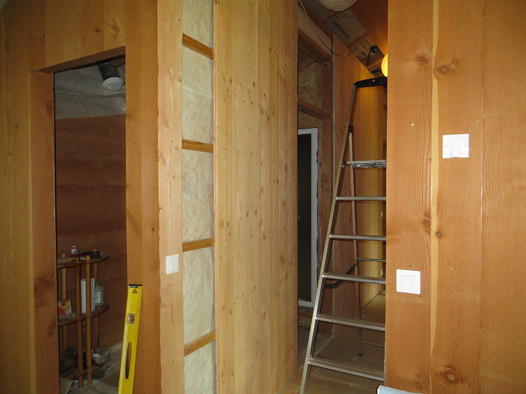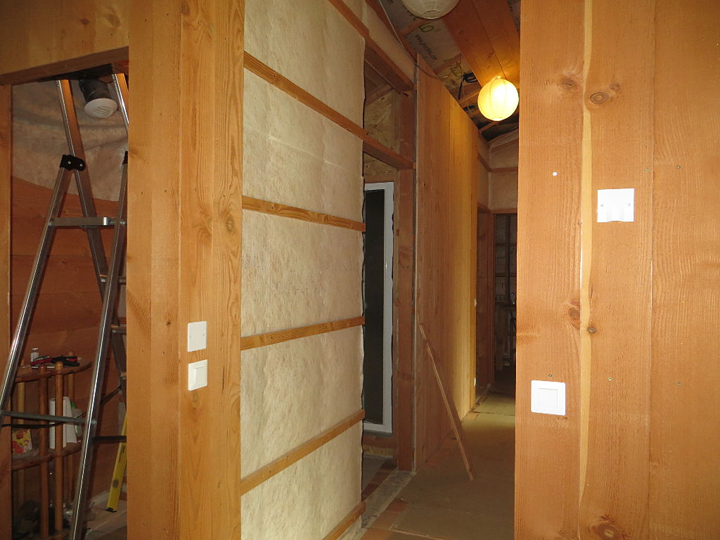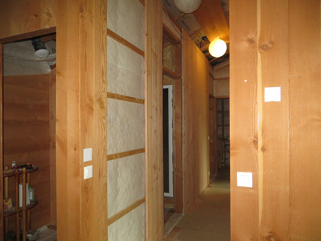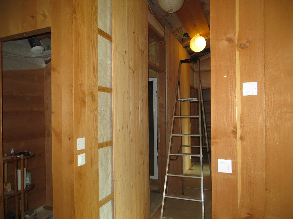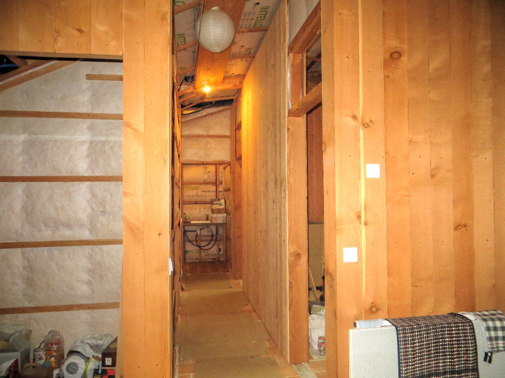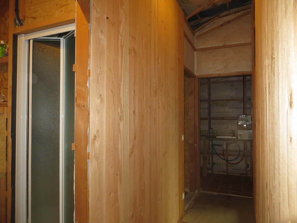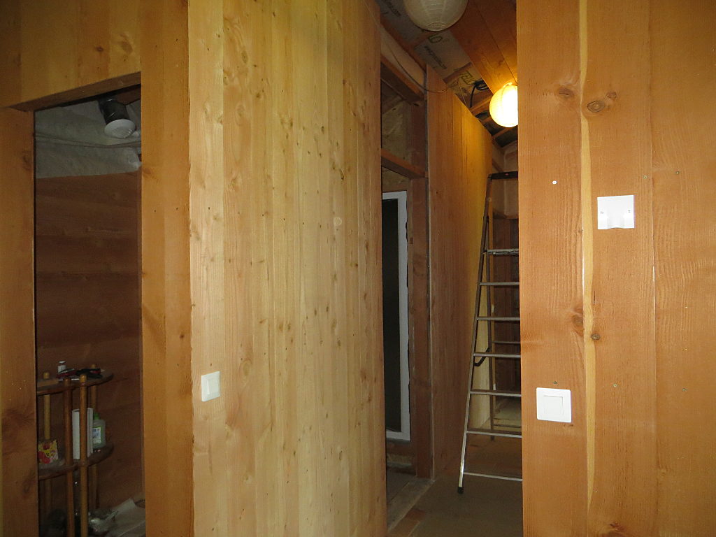 2018/08/01 : Lambris (24) - Couloir (murs)Mis à jour : 9 septembre 2018 | Imprimer | Affichages : 1505 Dans le couloir, fin de la pose du lambris sur les murs ... Sur le mur Sud : Sur le mur Sud (au fond) : Sur le mur Nord (côté Est) : Sur le mur Nord (côté Ouest) : Précédent Suivant